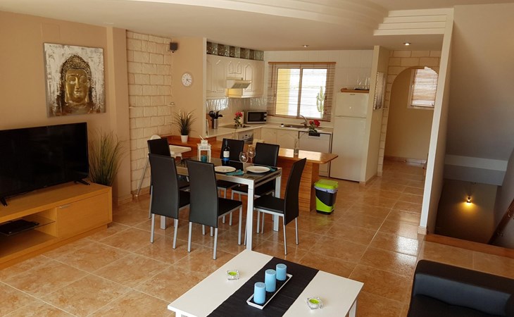 De Villa Roque del Conde 3 is één van de vakantiewoningen van de hoogste klasse van een toplocatie boven de Costa Adeje en niet in het minst door zijn exclusieve functies. Het duurt slechts 5 minuten naar het strand. Op de begane grond is er een woonkamer met open keuken en een aparte eethoek. Boven bevinden zich de twee slaapkamers, 2 badkamers met ligbad en douche. Een slaapkamer heeft een balkon en heeft een prachtig uitzicht op zee over de Atlantische Oceaan naar het naburige eiland La Gomera. De lounge heeft een flatscreen-tv met internationale satellietzenders. Wifi voor internet toegang is gratis beschikbaar (snelle glasvezel internet). De woonkamer heeft een slaapbank en biedt een comfortabele slaapgelegenheid voor 2 personen.