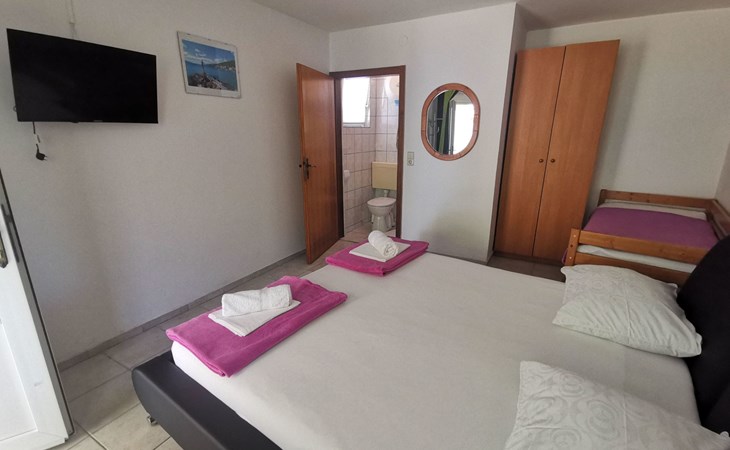 Nestled in the serene town of Dramalj in the picturesque Kvarner Bay, this cozy apartment offers a perfect retreat for couples seeking a tranquil getaway. Just a stone's throw away from the crystal-clear waters and pebble beaches, this apartment promises an unforgettable stay filled with moments of relaxation and rejuvenation. Its prime location, just 70 meters from the sea and beach, and a mere 200 meters from the nearest grocery store, ensures convenience and the essence of coastal living.Inside, this studio apartment is a haven of comfort on the 1st floor, thoughtfully equipped with a kitchenette that includes essential appliances such as a 2-plate stove, coffee machine, and electric kettle. The sleeping area, featuring a welcoming double bed, ensures a restful night's sleep. Comfort is further guaranteed with the inclusion of air conditioning in part of the apartment and the availability of WiFi and satellite TV for entertainment. The en-suite bathroom, comprising a shower and toilet, caters to your personal care requirements.The apartment's exterior is equally inviting, boasting a spacious terrace that offers a stunning sea view, setting the scene for memorable evenings under the sky or leisurely afternoons soaking in the serene ambiance. The grill area, available to all guests, presents an excellent opportunity to engage in some outdoor cooking and dining, making the most of the pleasant climate. Additionally, the convenience of having a parking space right in front of the house adds to the ease of your stay.Surrounding the apartment, the locale of Dramalj provides an array of activities and sights to explore. The beach, just 70 m away, invites you to enjoy days filled with sunbathing, swimming, and water sports, with facilities located just 1000 meters away. For those looking to immerse themselves in the vibrant life of a bigger town, Crikvenica is a short 4 km journey, offering a blend of cultural experiences, dining options, and shopping. Moreover, the proximity to a grocery store ensures that daily necessities are within easy reach.This apartment in Dramalj stands out as a charming haven for couples, blending the allure of coastal living with the comforts of home. Whether you're seeking a peaceful retreat close to nature or an active holiday filled with exploration, this property promises an experience that captures the essence of the Kvarner Bay.