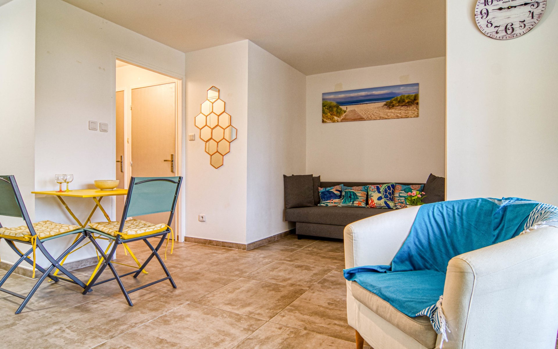 Flatgebouw "Le Clos des Pecheurs", van 3 verdiepingen. In de plaats Le Brusc, 100 m van zee. Parkeerplaats. Restaurant, bar 150 m, bakkerij 260 m, café, fietsverhuur 150 m, bushalte 200 m, treinstation "Toulon" 14 km, kiezelstrand "Le Brusc" 450 m. Jachthaven 100 m. Attracties in de buurt: Ile du Gaou, Iles des Embiez, Ile de Proquerolles. Geen lift.