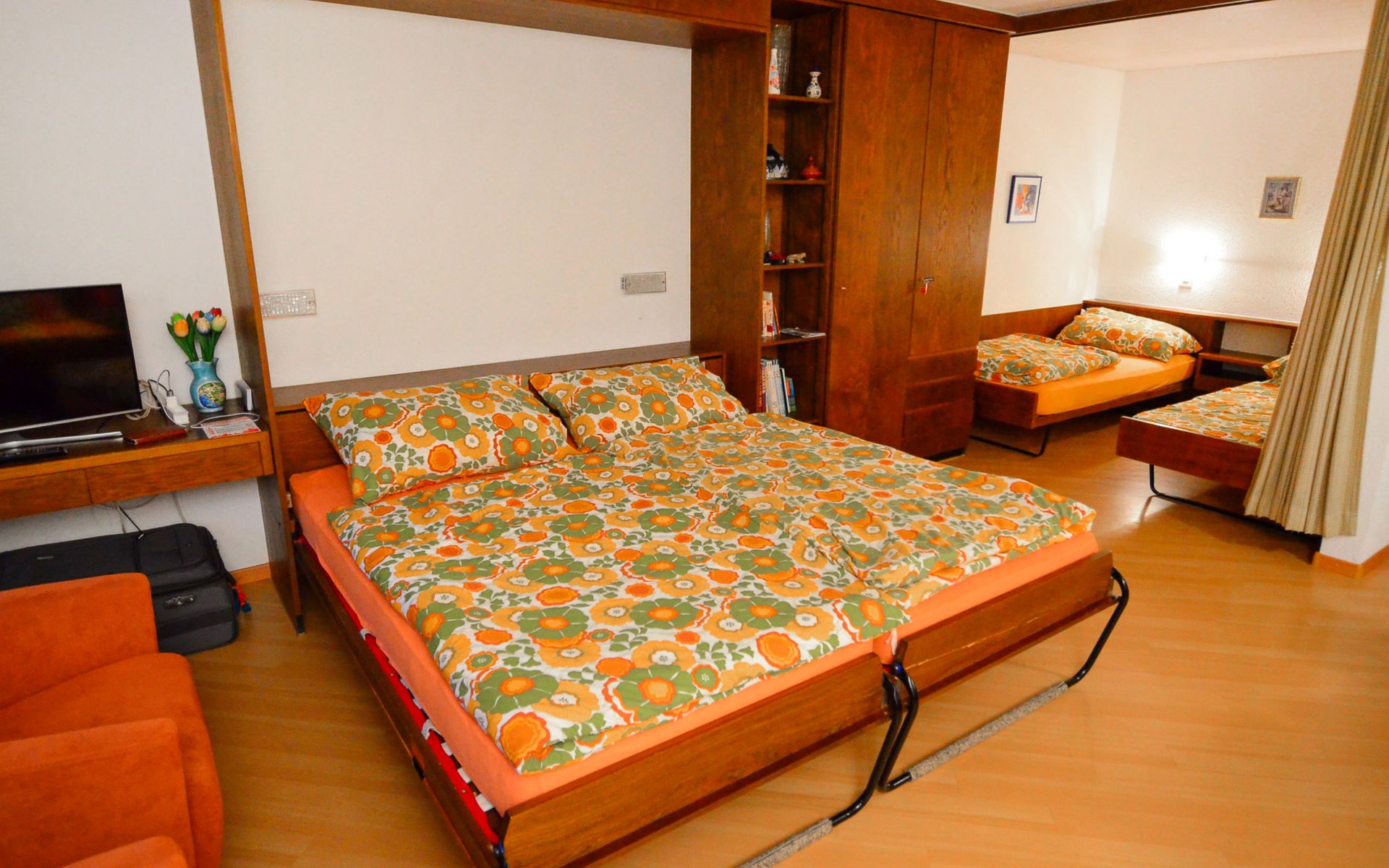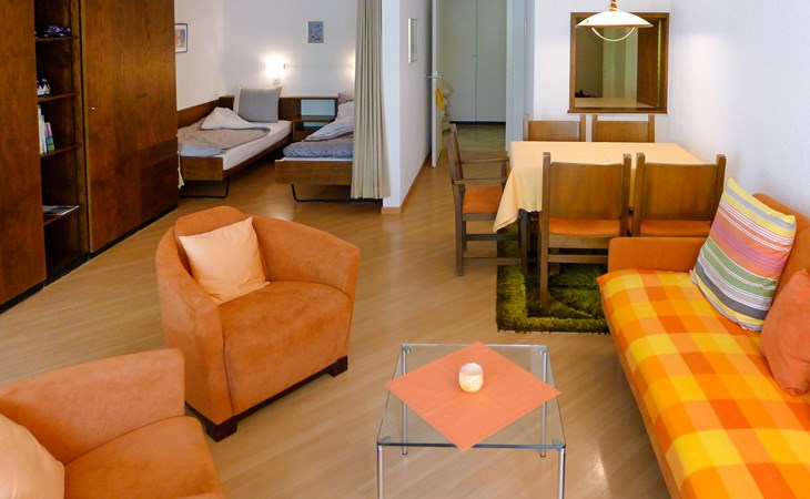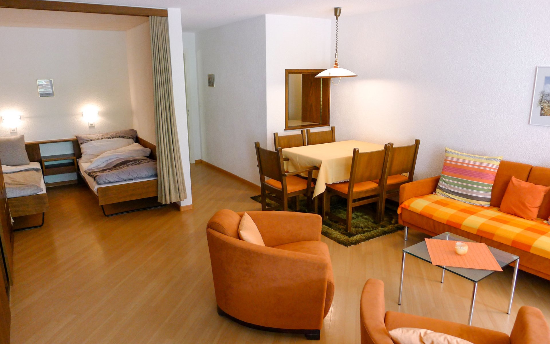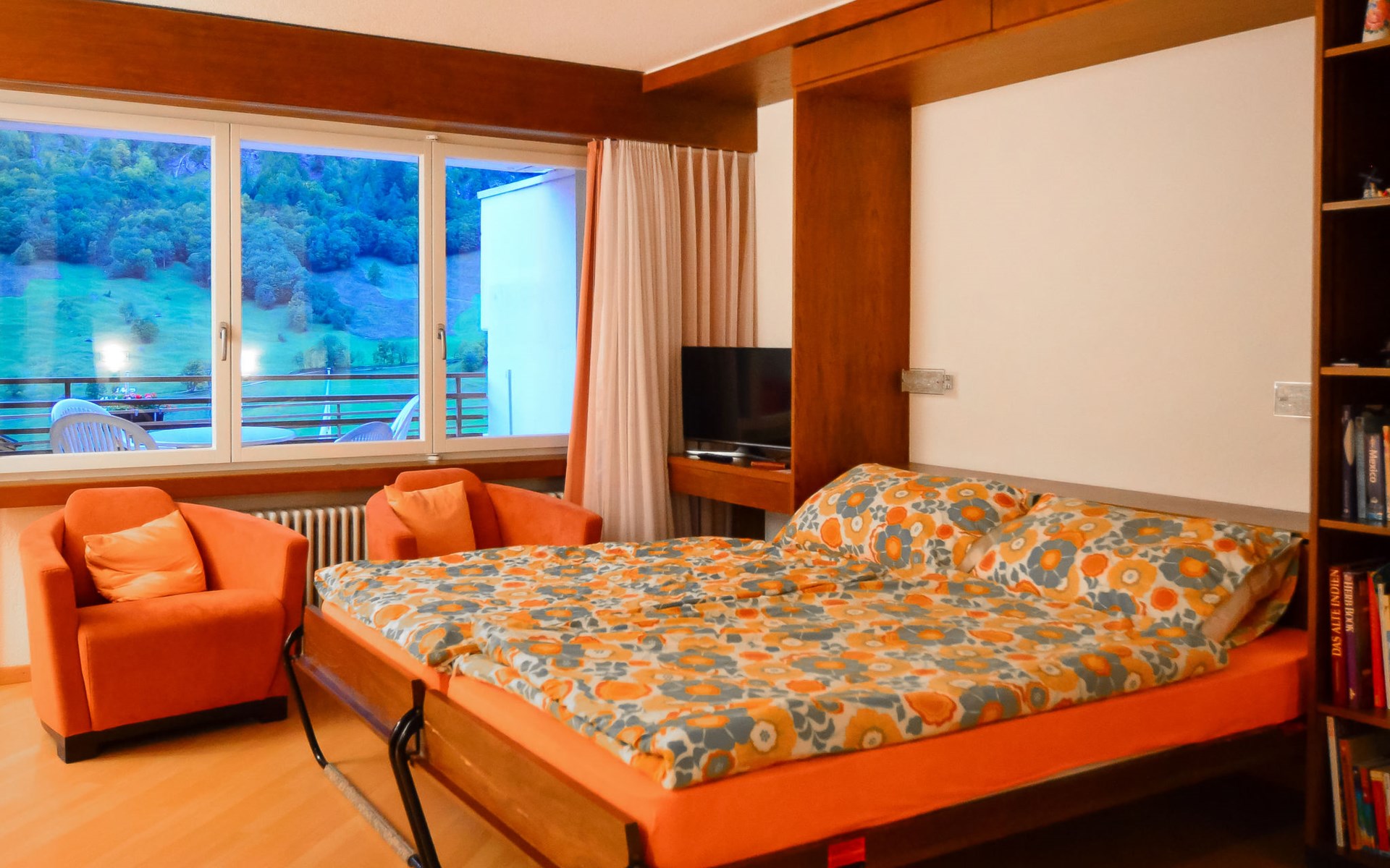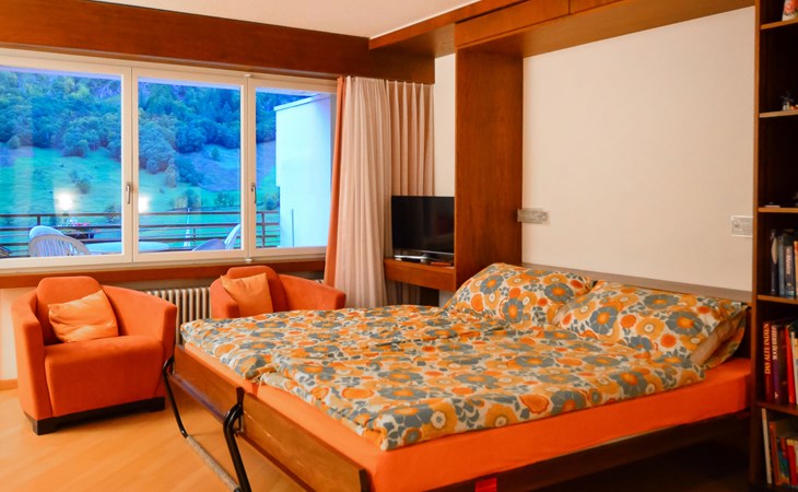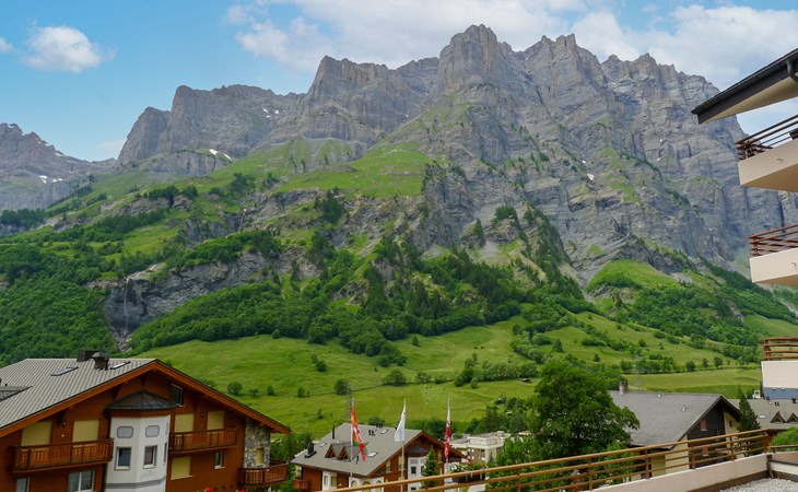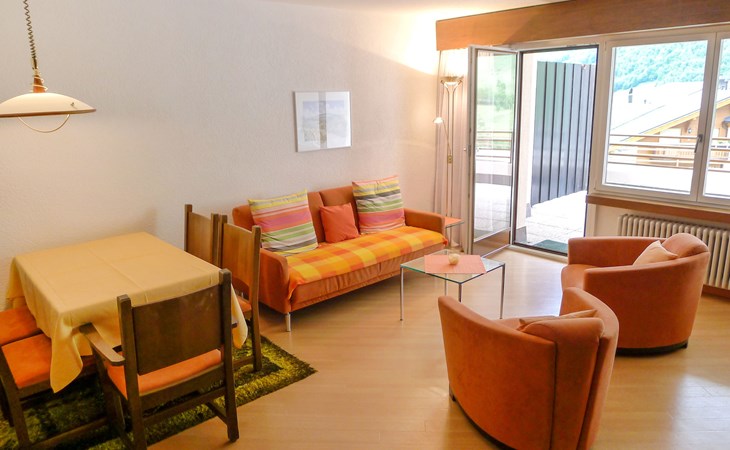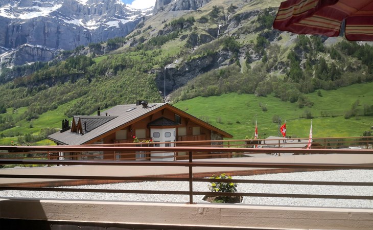Residentie "Ringstrasse (Utoring)". In de plaats, 500 m van het centrum, 20 m van het skigebied. In het huis: bar, salon, tafeltennis, speelkamer, lift, bergruimte voor fietsen, berging voor ski's, centrale verwarming, wasmachine, droger (extra). Broodjesservice en drankjesservice. Toegangsweg tot aan het huis (bergweg). In de winter sneeuwkettingen aanbevolen, 's winters 4x4 aanbevolen. Parkeerplaats bij het huis, Openbare parkeergarage op 50 m, extra. Levensmiddelenwinkel, supermarkt, restaurant 500 m, bushalte "Leukerbad, Bristol" 250 m, openluchtzwembad 500 m, thermaalbad 300 m. Tennis 500 m, kabelbaan, ski faciliteiten, skipisten 20 m, rodelbaan, langlaufloipe 500 m, ijsbaan 1 km. Bekende skigebieden kunnen gemakkelijk worden bereikt: Leukerbad Torrent. Wandelgebied Gemmi 1 km. Het huis staat op een beboste helling op het zuidwesten, direct naast de Torrent-kabelbanen. Slechts een korte trappenweg scheidt het huis van het dalstation. Parkeermogelijkheid: in de winter parkeerplaats CHF35.00/week, garage CHF 70.00/week, in de zomer parkeerplaats gratis, garage CHF 35.00/week.
