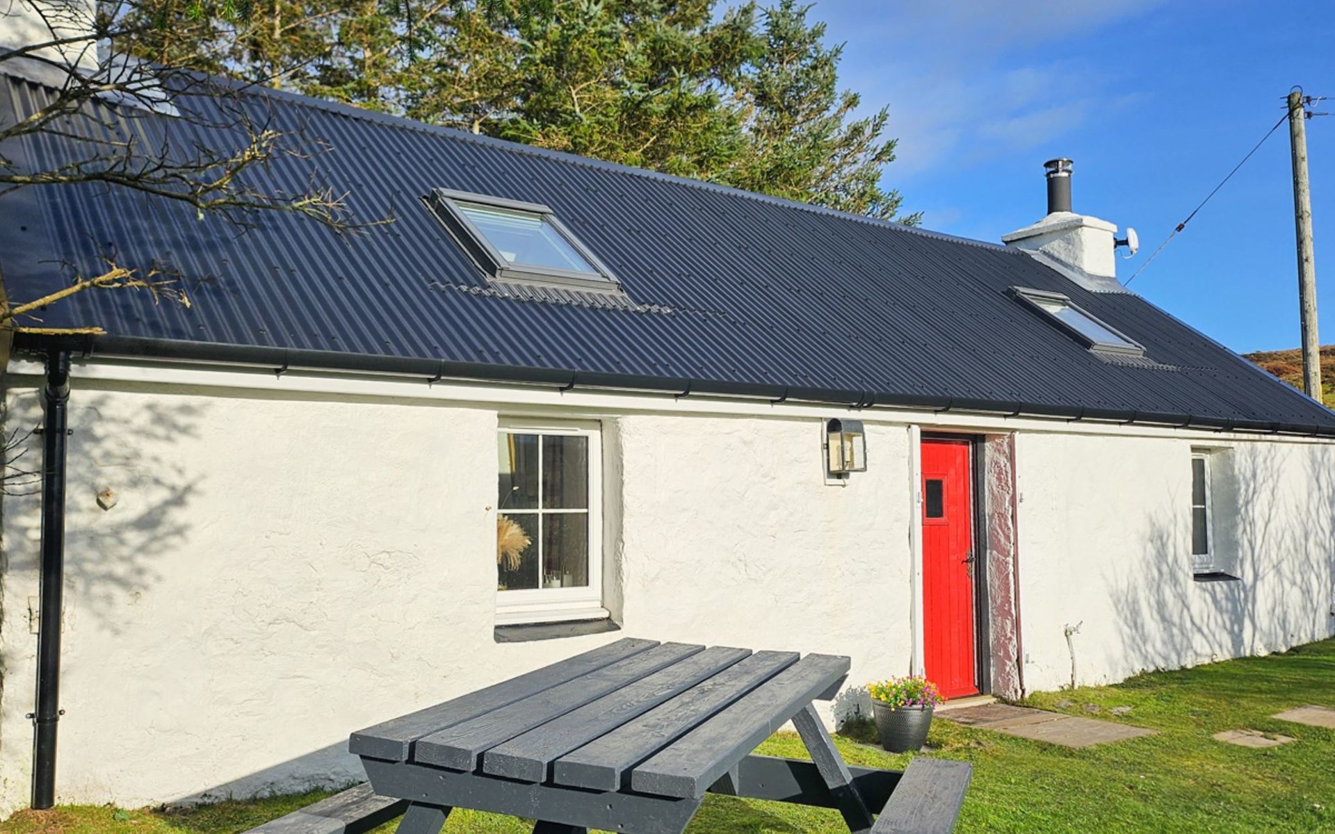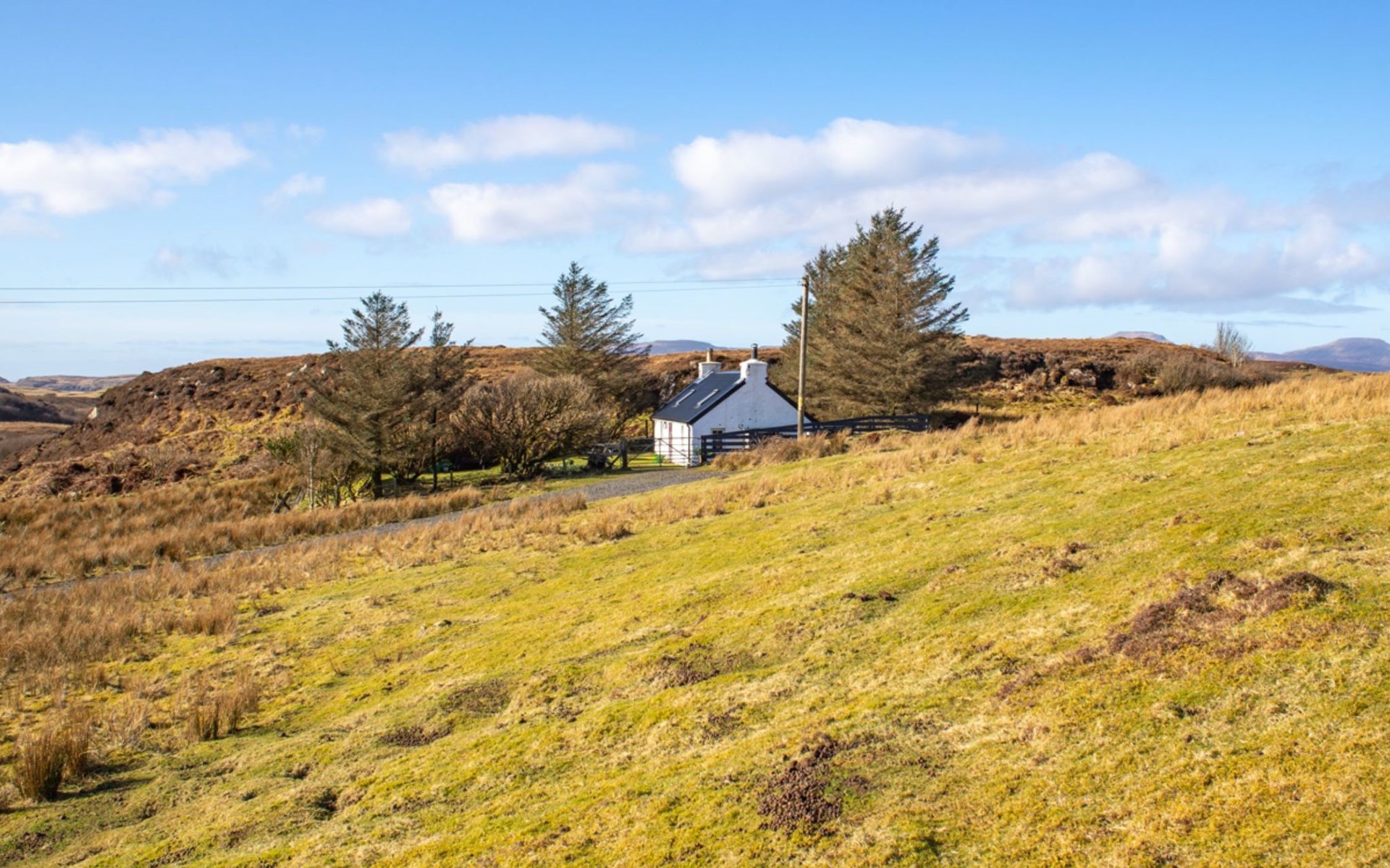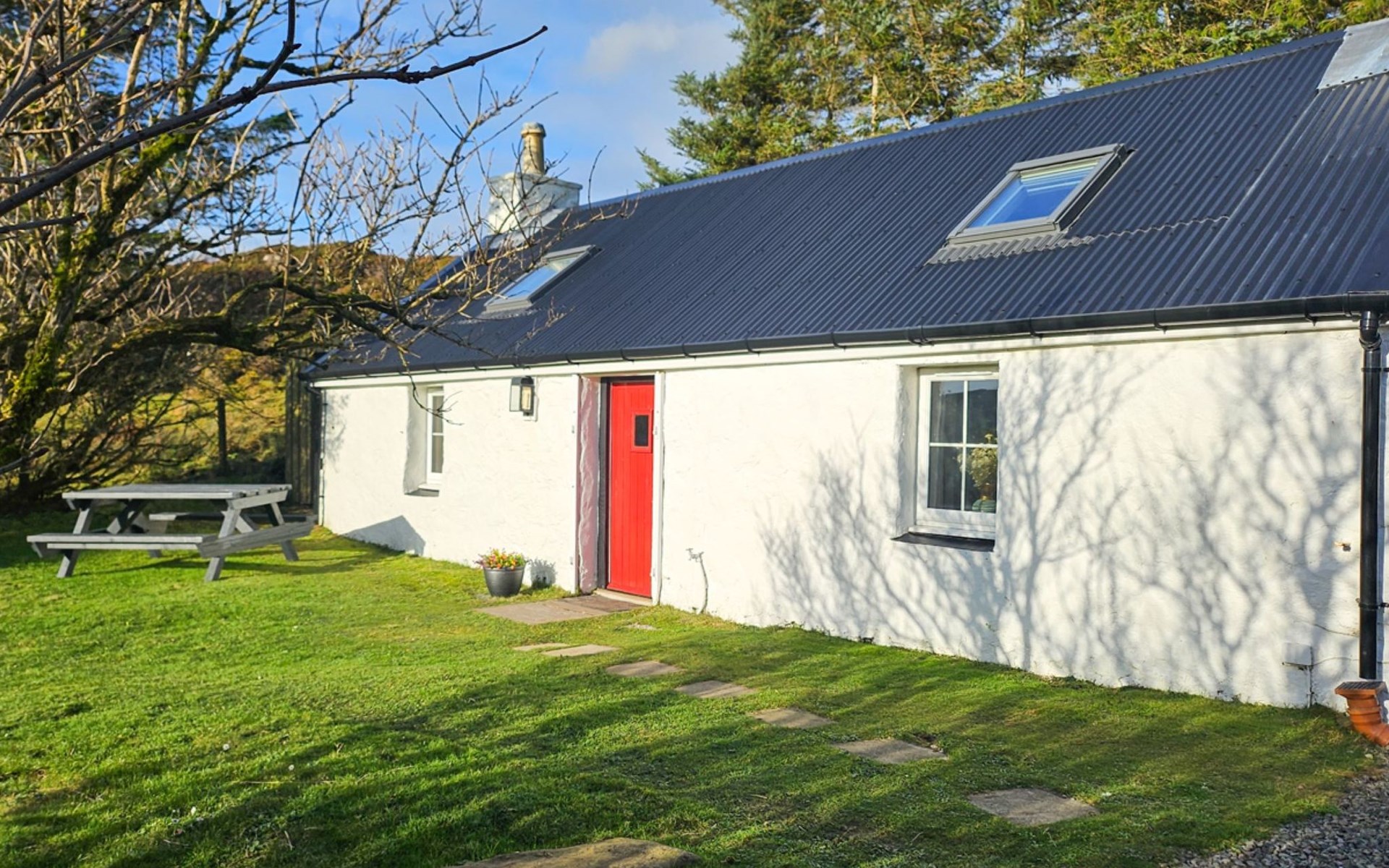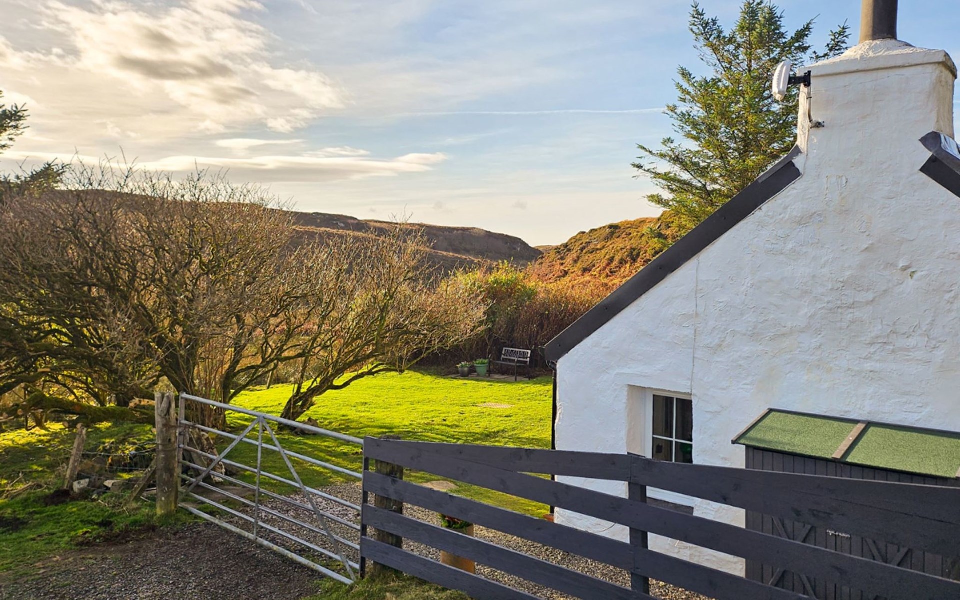 Gezellige, comfortabele cottage "The Cottage", vrijstaand. Aan de rand van de plaats, 18 km van het centrum van Portree, geïsoleerde, rustige ligging. Voor alleengebruik: tuin. Tuinmeubelen, parkeerplaats bij het huis. Winkel 15 km, levensmiddelenwinkel 15 km, restaurant 450 m, café 600 m, bushalte "Portree" 18 km. Golfterrein (9 holes) 27 km. Attracties in de buurt: Dunvegan Castle and Garden 17 km, Old Man of Storr 30 km, Uig Outer Hebrides Ferry 39 km, The Fairy Pools 23 km. Auto noodzakelijk.