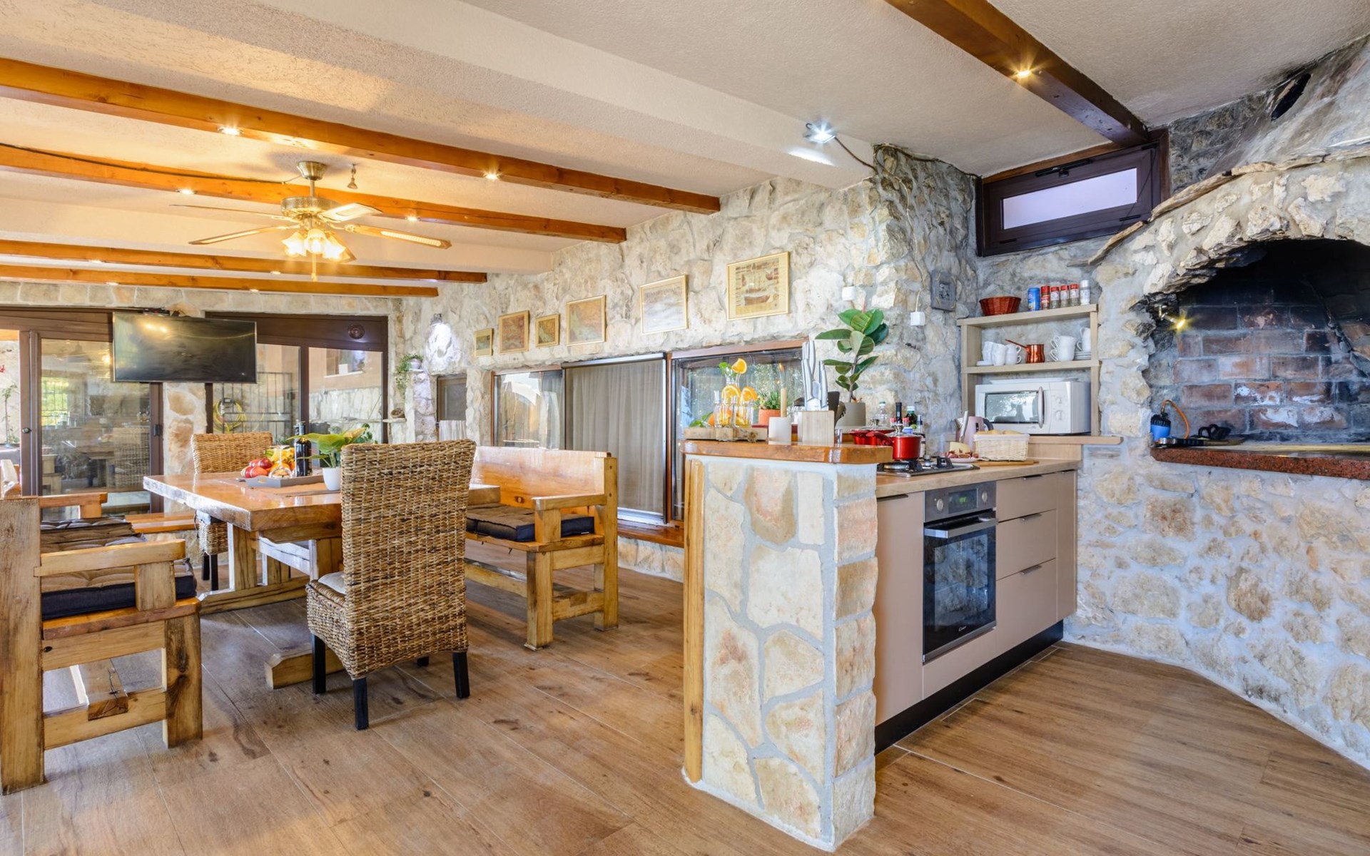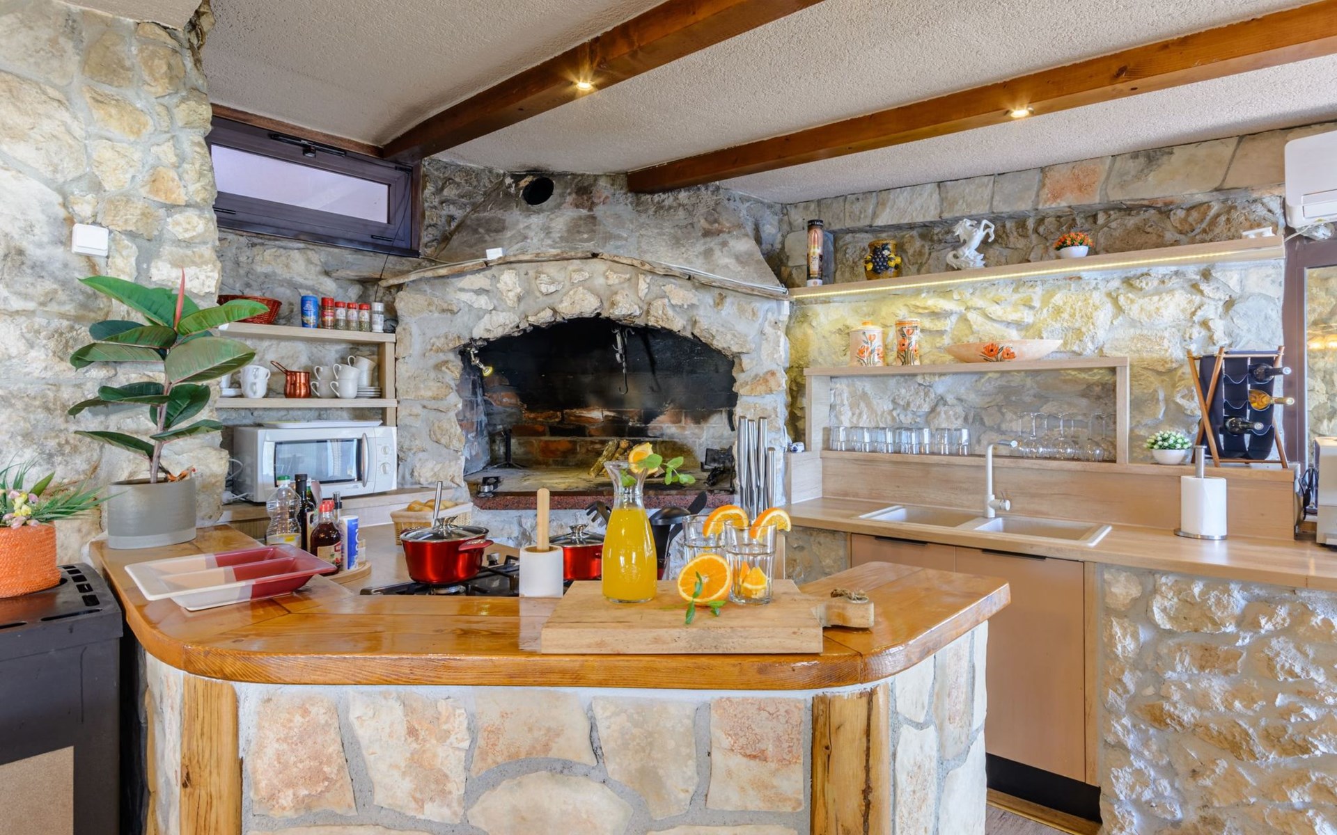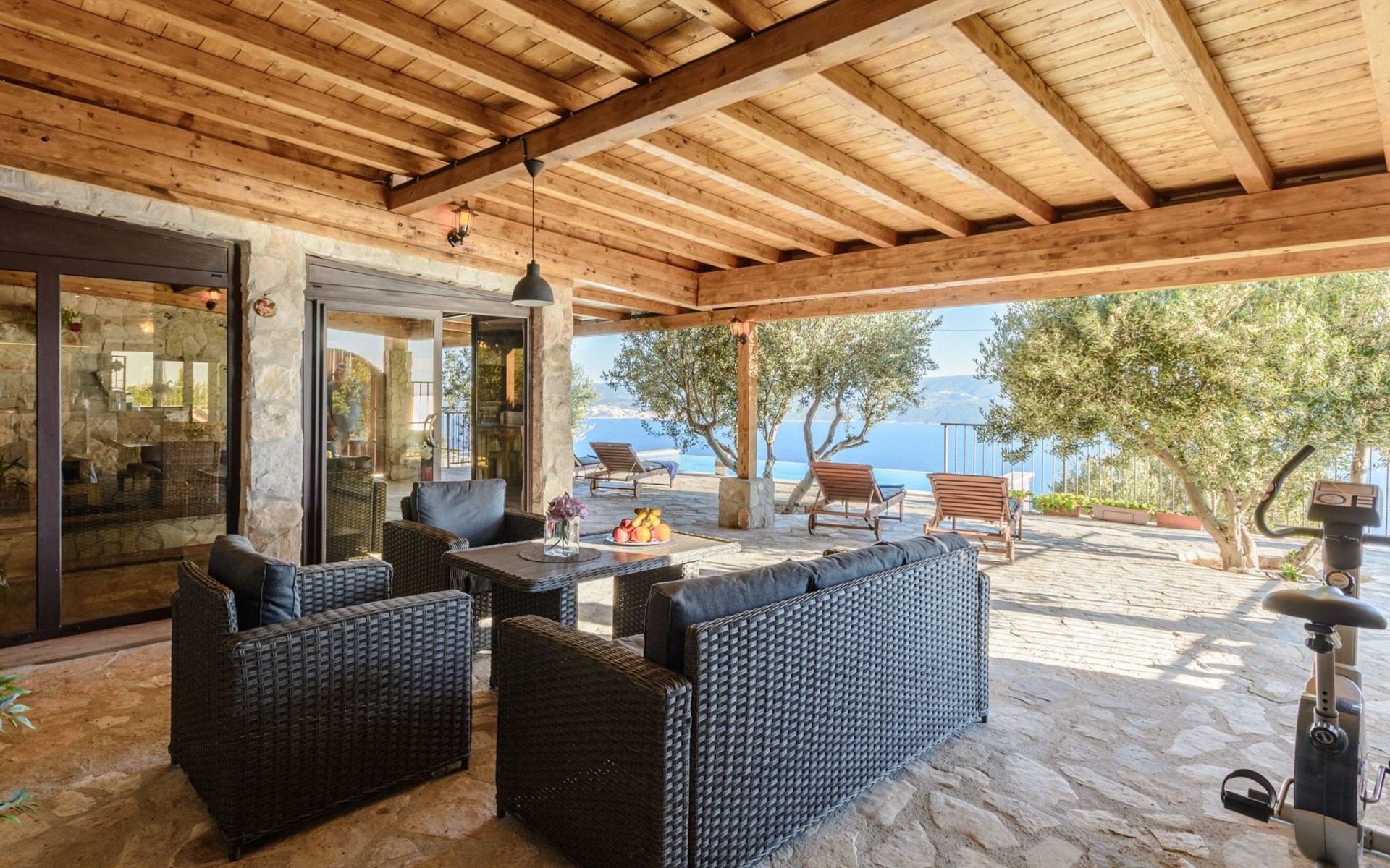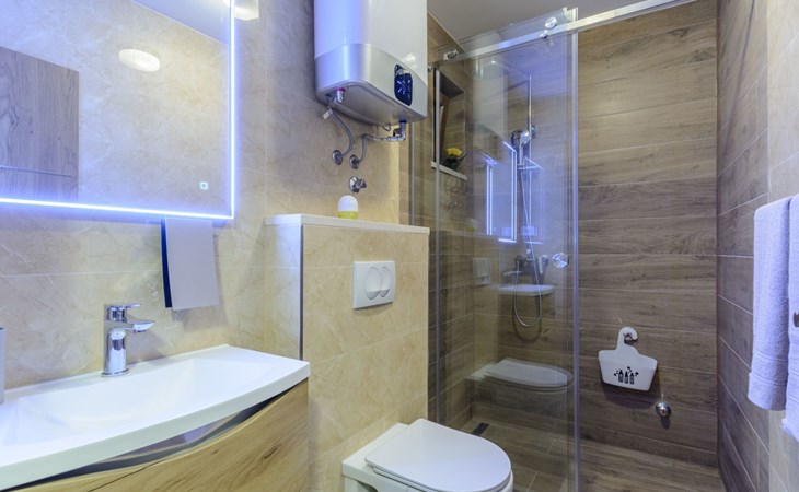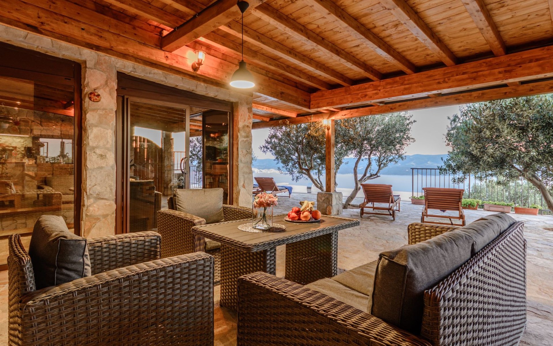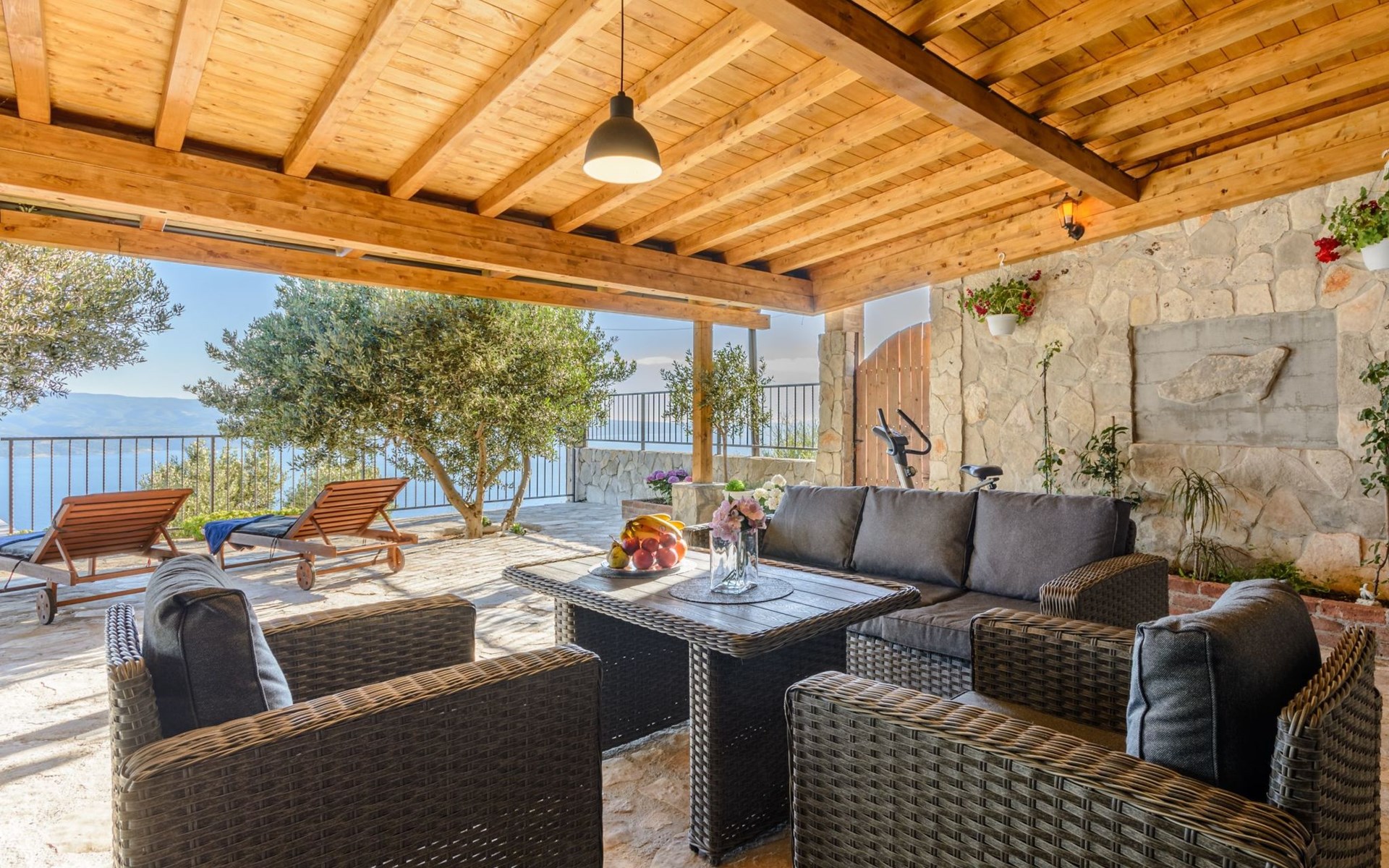 A brand new Villa, situated on a secluded hilltop approximately 4 km from the center of Omiš town, offering a breathtaking view of the Adriatic sea. For all our guests we offer absolute security and privacy, the perfect place for a relaxing holiday, peace and quiet all around with a beautiful terrace with garden furniture and sunshade just for your own private use.The Villa has four bedrooms and can accommodate up to 8 persons. In addition, the Villa features 3 bathrooms with a shower, hair dryer and a washing machine + tumble dryer. The kitchen is fully equipped and comes with an oven, a stove, a refrigerator, a water kettle, coffee machine, a microwave, a dishwasher, a toaster, pots and pans, plates, cutlery, glasses and any other kitchen equipment you may need. Both an outdoor and an indoor dining area are available. It also offers a heated outdoor swimming pool (infinity pool) and a large terrace with Grill / BBQ facilities for private use, with a stunning sea view. Additional amenities include Wi-Fi, air-conditioning (3 units in total), ceiling fans, flat-screen cable TV, a safety deposit box, iron. An outdoor heated pool with a spacious terrace with an outdoor dining area, sun loungers and umbrellas and BBQ facilities is a great place to relax and enjoy.Parking is secured right at the entrance of the Villa, private and free of charge.The Villa offers complete privacy as it is located ion a secluded location.Omis, a town surrounded by sea, a river and two mountains standing shoulder to shoulder, all within a 500 meter radius. Its medieval town core offers a number of bars and restaurants, whilst being within a walking distance from a centrally located sandy beach, a beach awarded a Blue Flag certificate as an indication of its high environmental and quality standards.In addition to the sun and the sea, all beaches in Omiš, as well as all other vast beaches of the Riviera offer a wide variety of entertainment and leisure activities such as jet-skis, boat or kayak rental or sea trampolines.If your perfect vacation includes a dose of adrenaline, then Omiš is definitely the right choice for you. There is a wide offer of activities and tours, enough to satisfy everyone, from solo travellers to families with teenage kids seeking thrill in a number of activities, such as canyoning, rafting, ziplining, canoeing, sea kayaking, wind surfing …