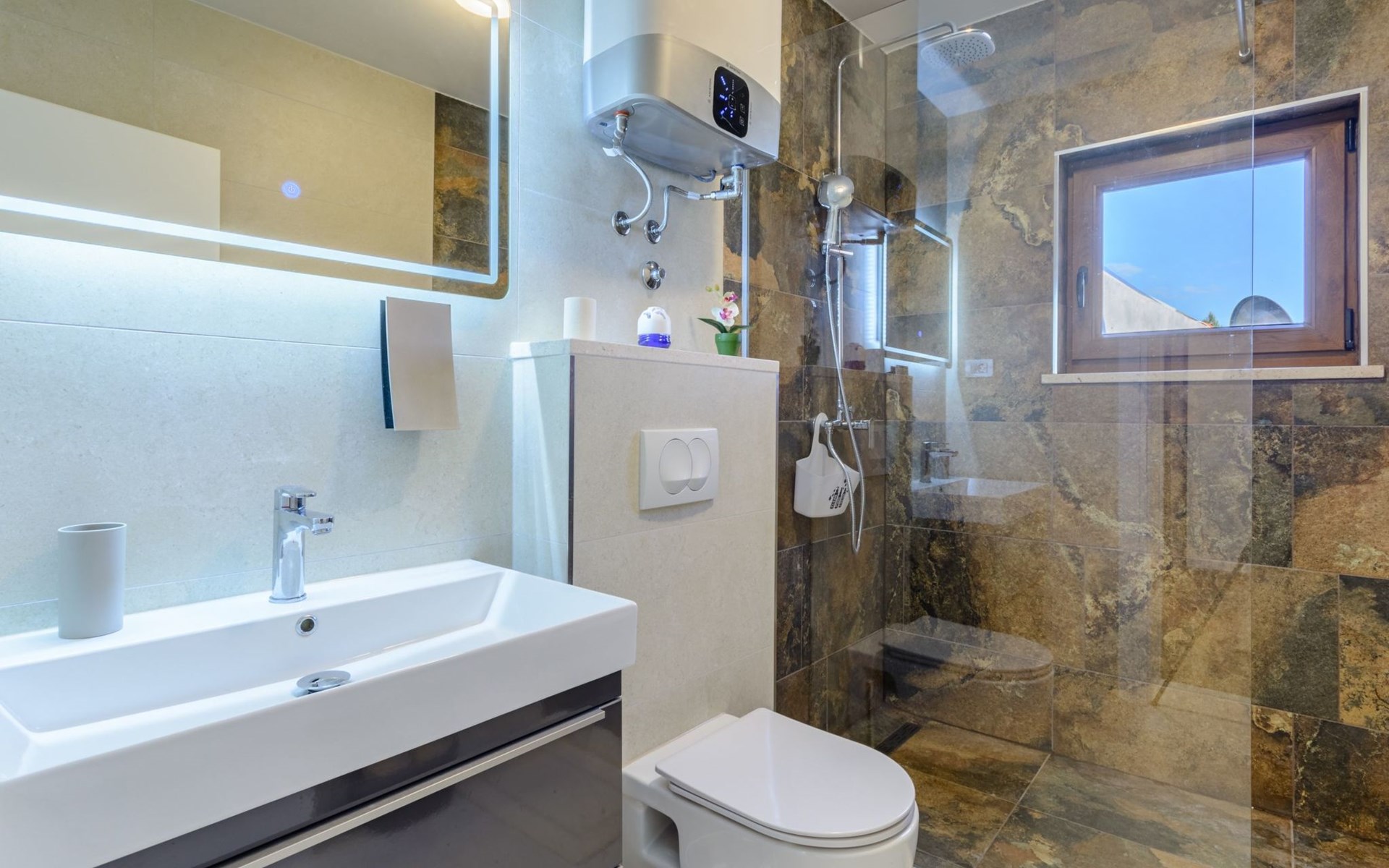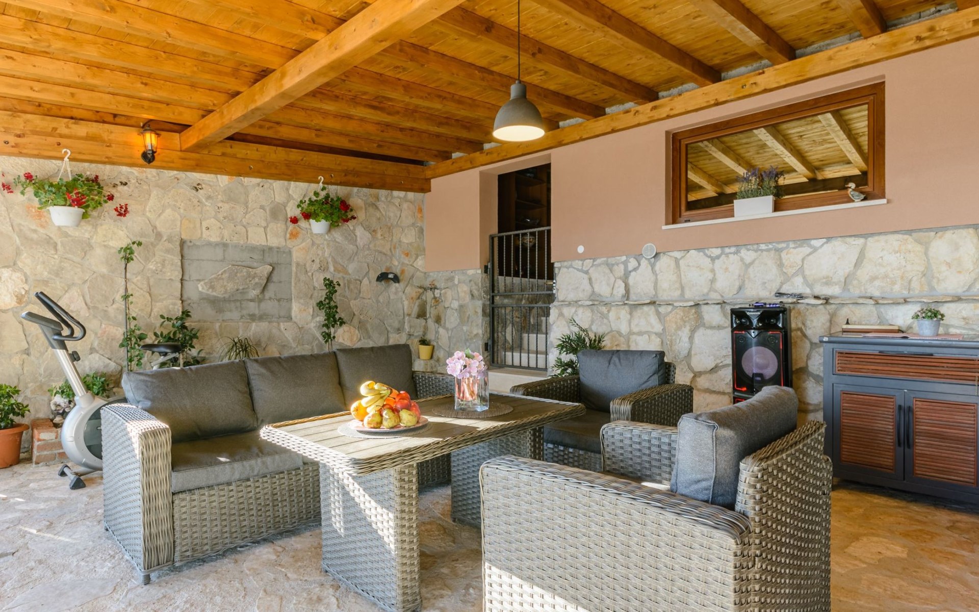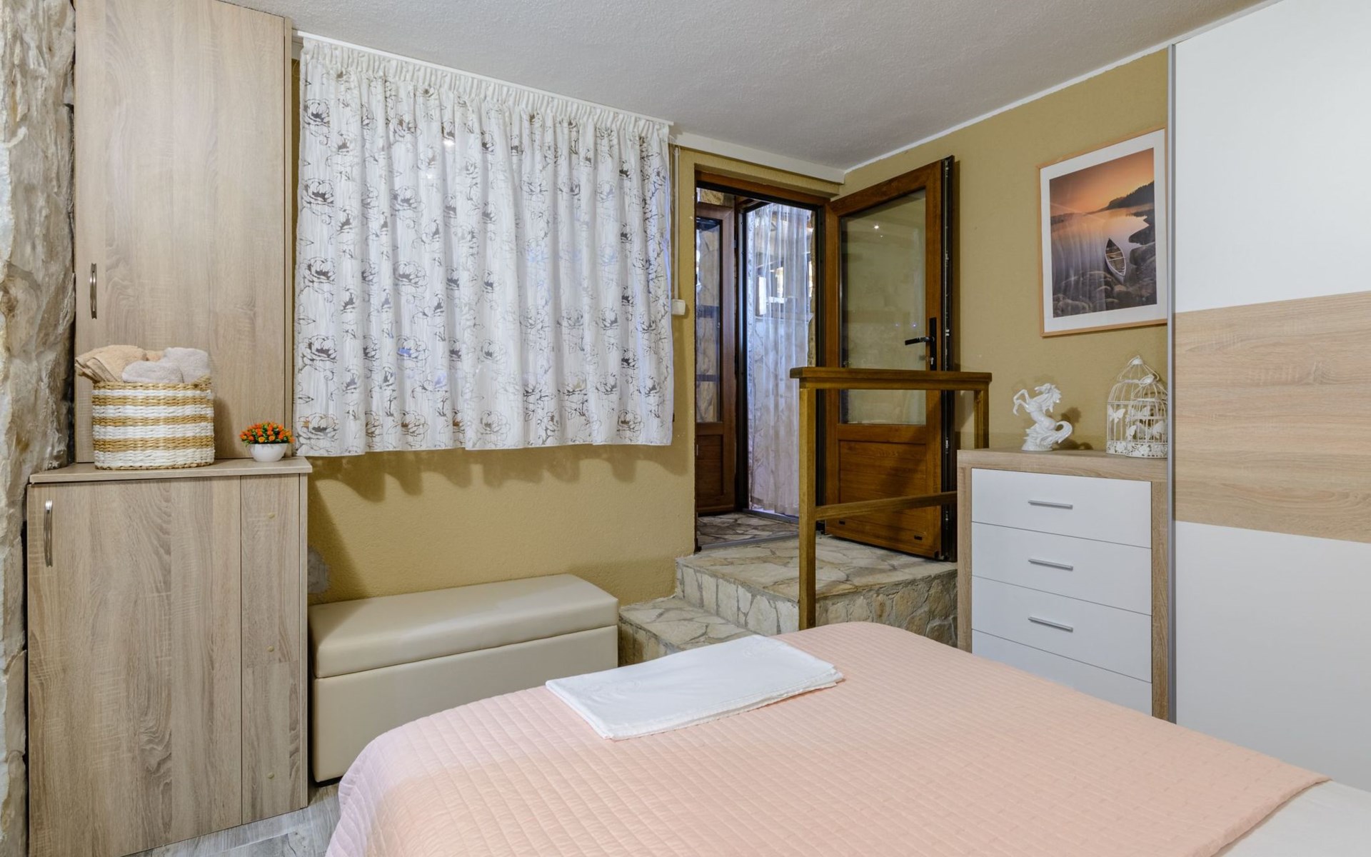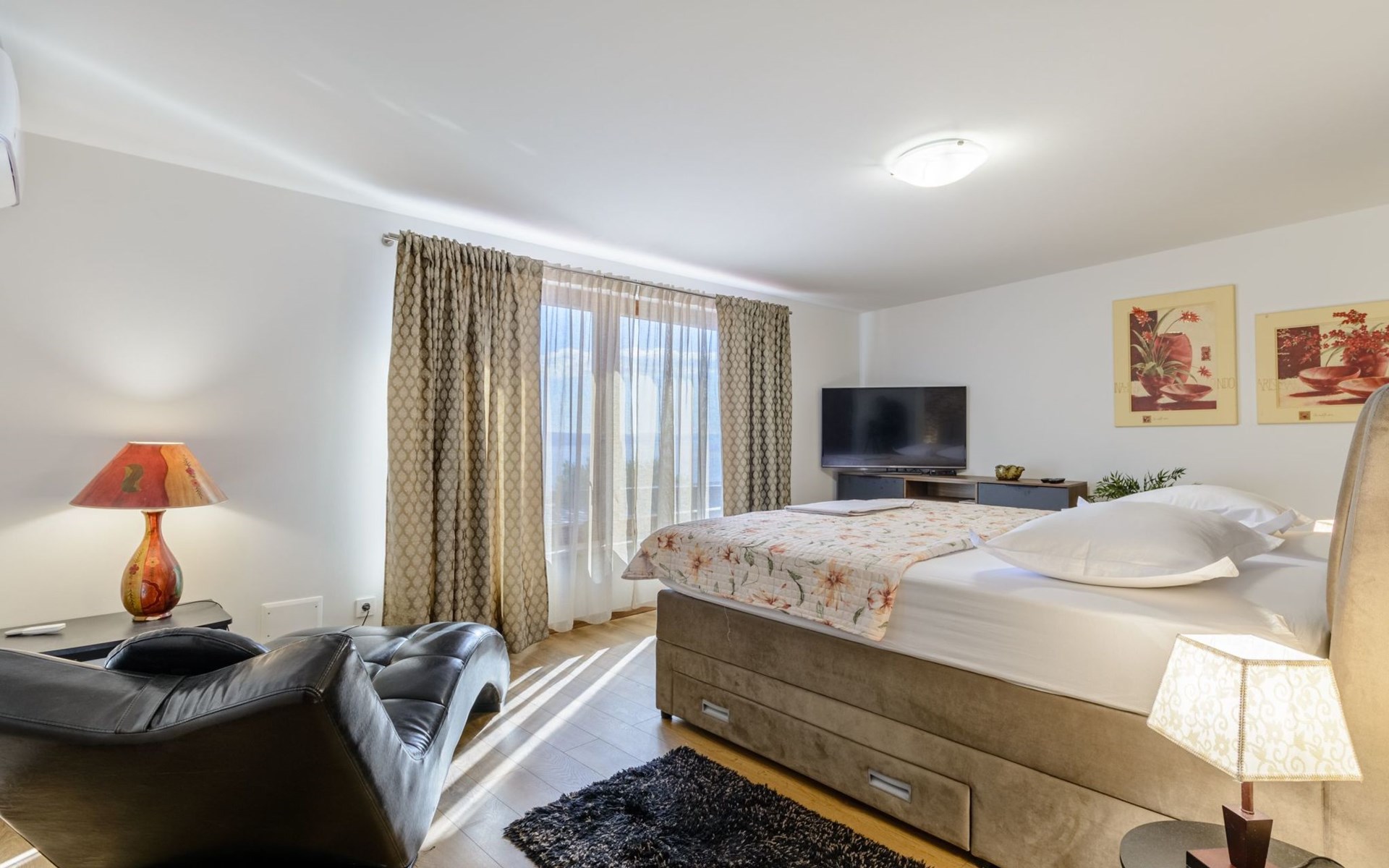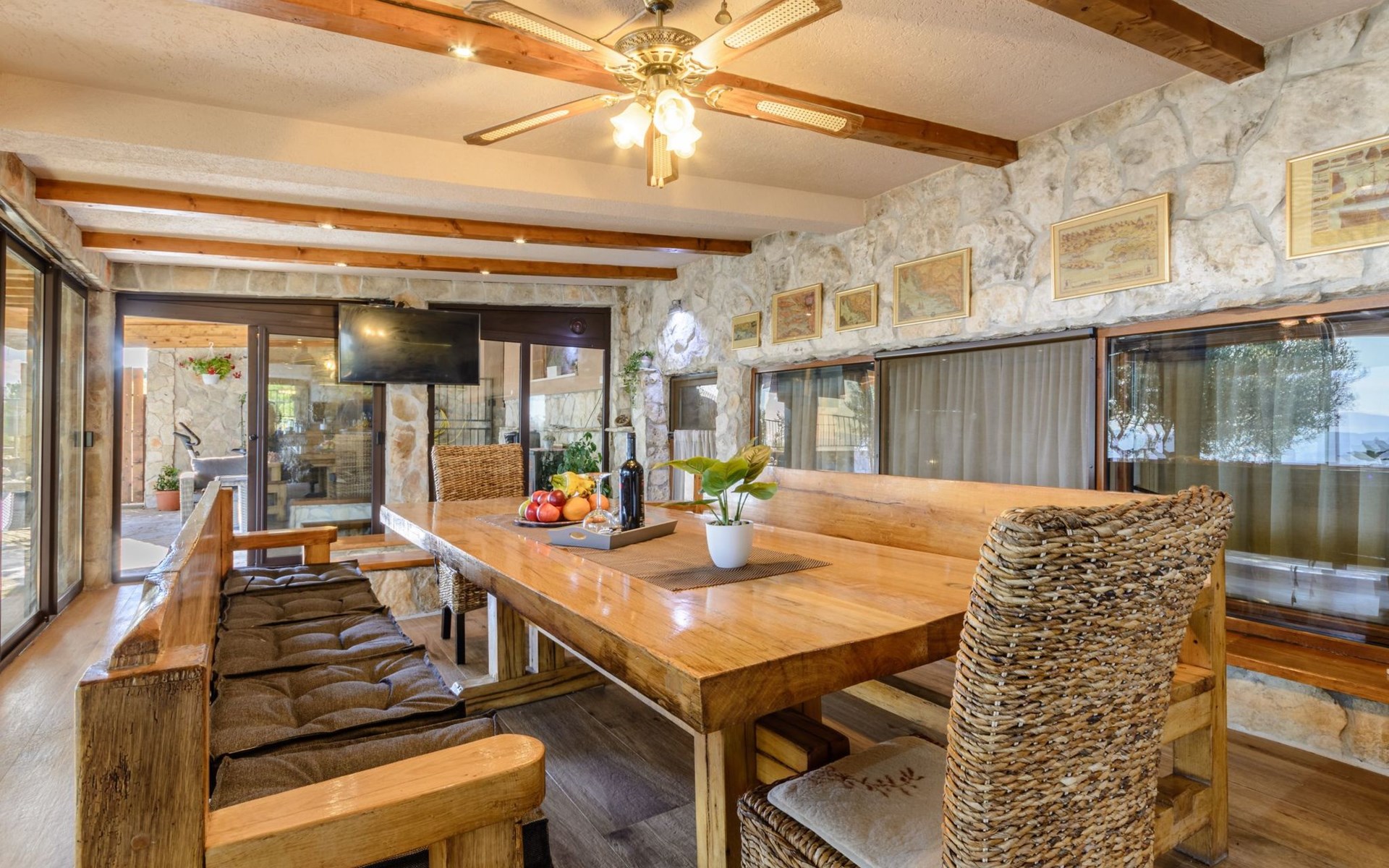 A brand new Villa, situated on a secluded hilltop approximately 4 km from the center of Omiš town, offering a breathtaking view of the Adriatic sea. For all our guests we offer absolute security and privacy, the perfect place for a relaxing holiday, peace and quiet all around with a beautiful terrace with garden furniture and sunshade just for your own private use.The Villa has four bedrooms and can accommodate up to 8 persons. In addition, the Villa features 3 bathrooms with a shower, hair dryer and a washing machine + tumble dryer. The kitchen is fully equipped and comes with an oven, a stove, a refrigerator, a water kettle, coffee machine, a microwave, a dishwasher, a toaster, pots and pans, plates, cutlery, glasses and any other kitchen equipment you may need. Both an outdoor and an indoor dining area are available. It also offers a heated outdoor swimming pool (infinity pool) and a large terrace with Grill / BBQ facilities for private use, with a stunning sea view. Additional amenities include Wi-Fi, air-conditioning (3 units in total), ceiling fans, flat-screen cable TV, a safety deposit box, iron. An outdoor heated pool with a spacious terrace with an outdoor dining area, sun loungers and umbrellas and BBQ facilities is a great place to relax and enjoy.Parking is secured right at the entrance of the Villa, private and free of charge.The Villa offers complete privacy as it is located ion a secluded location.Omis, a town surrounded by sea, a river and two mountains standing shoulder to shoulder, all within a 500 meter radius. Its medieval town core offers a number of bars and restaurants, whilst being within a walking distance from a centrally located sandy beach, a beach awarded a Blue Flag certificate as an indication of its high environmental and quality standards.In addition to the sun and the sea, all beaches in Omiš, as well as all other vast beaches of the Riviera offer a wide variety of entertainment and leisure activities such as jet-skis, boat or kayak rental or sea trampolines.If your perfect vacation includes a dose of adrenaline, then Omiš is definitely the right choice for you. There is a wide offer of activities and tours, enough to satisfy everyone, from solo travellers to families with teenage kids seeking thrill in a number of activities, such as canyoning, rafting, ziplining, canoeing, sea kayaking, wind surfing …