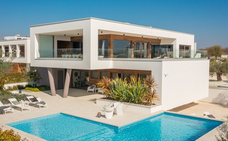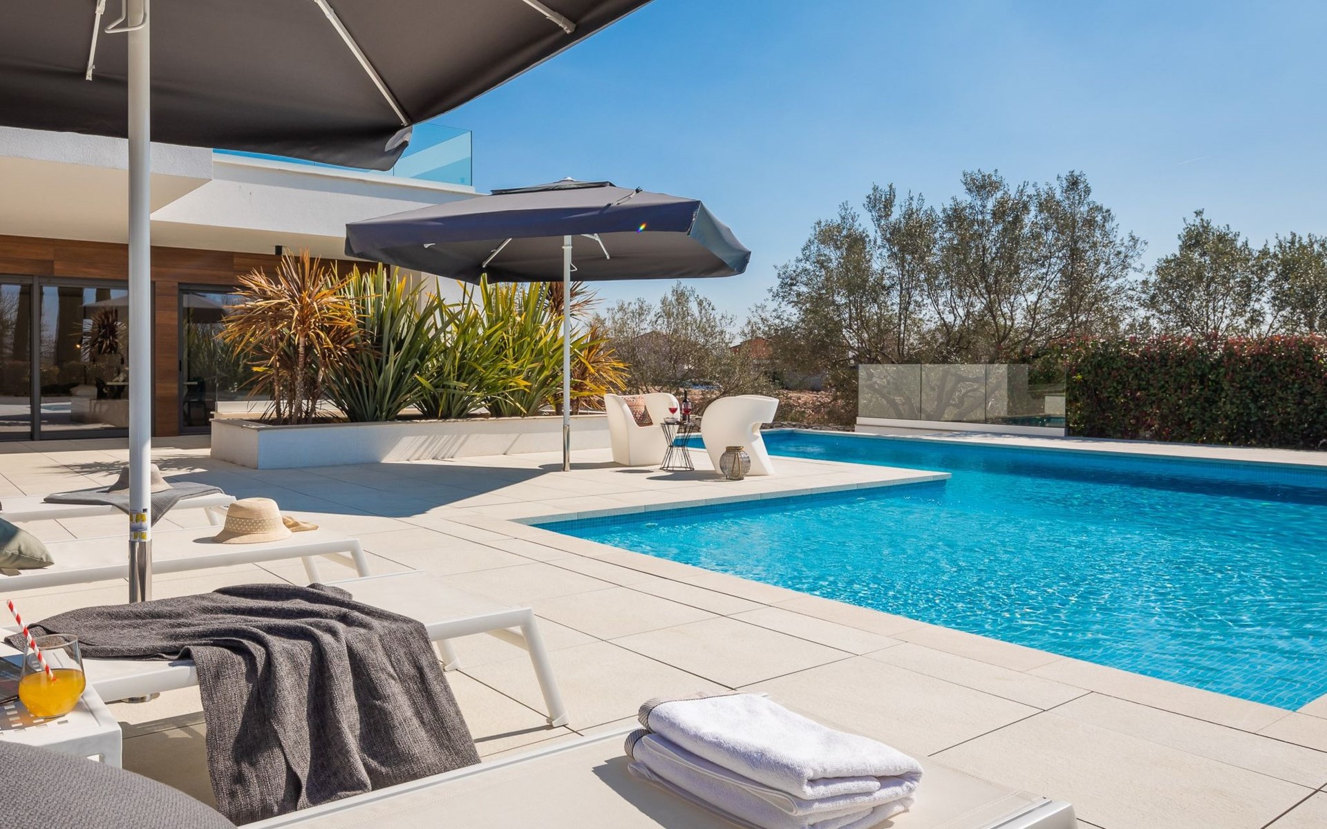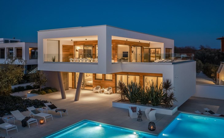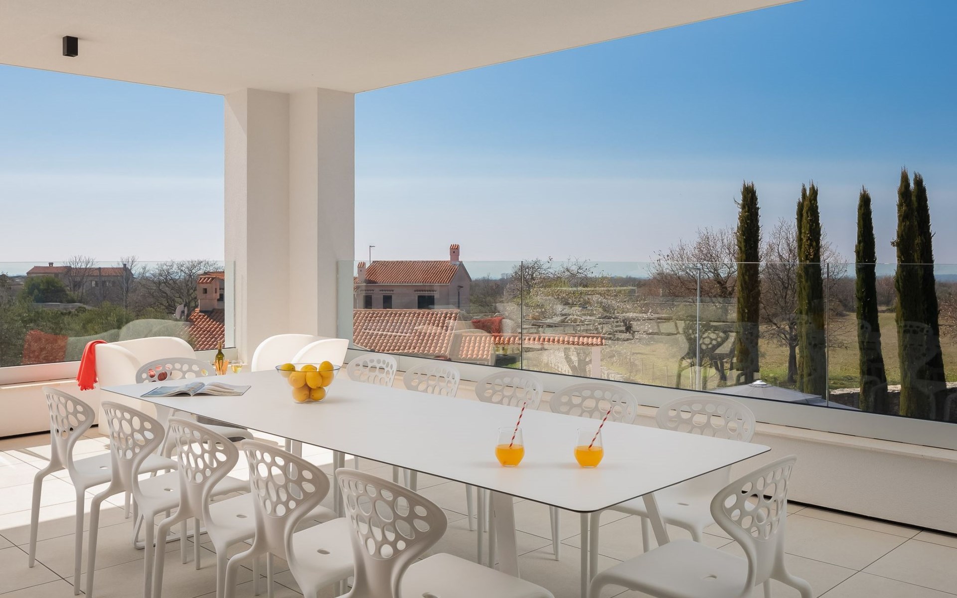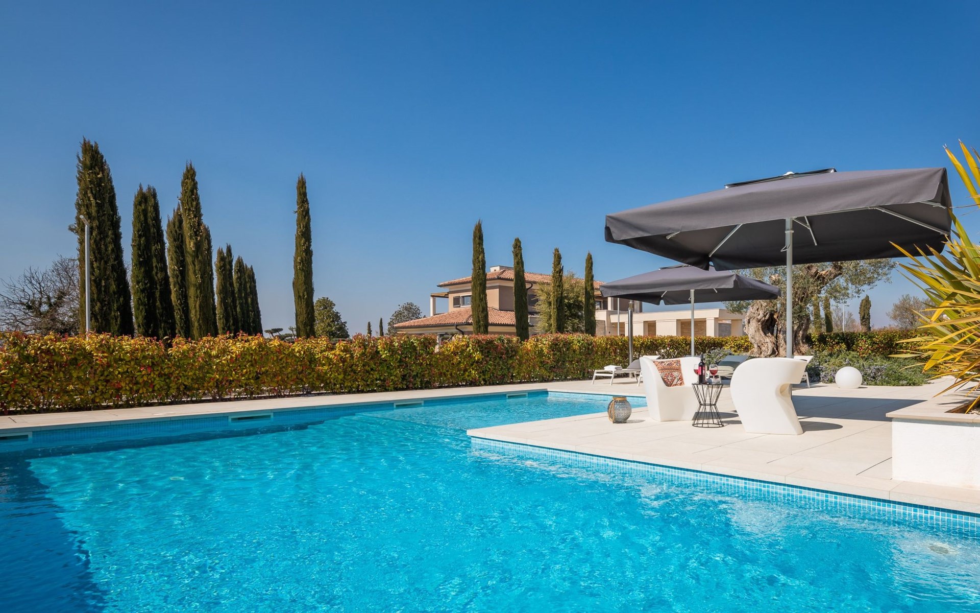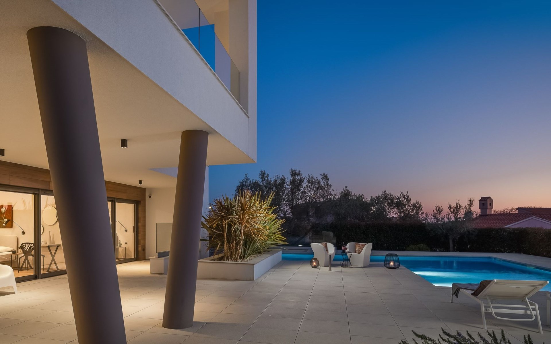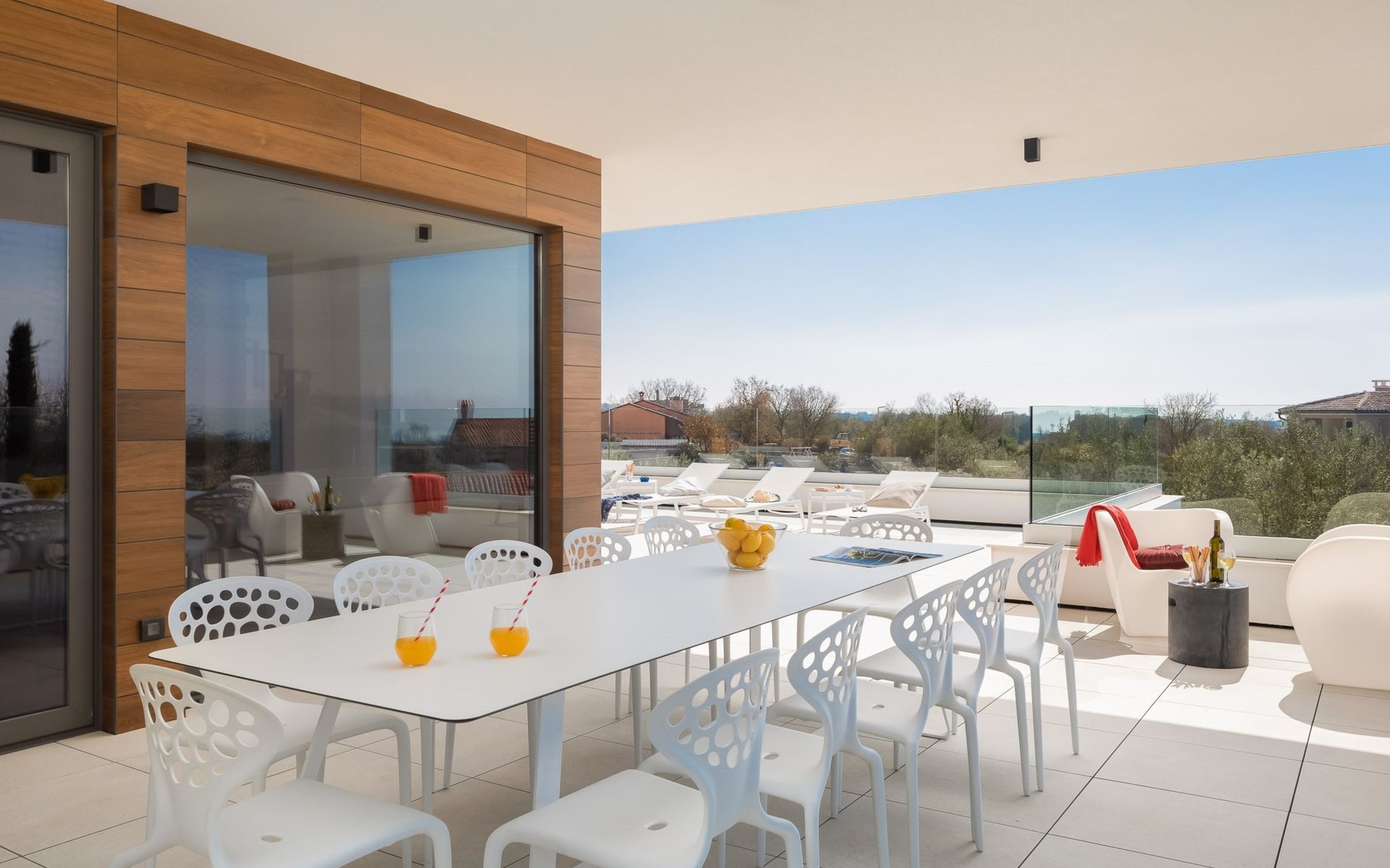 Vodnjan: Moderne villa "Old Olive I", van 3 verdiepingen. In het gehucht Salvela, 1 km van het centrum van Vodnjan, 7 km van het centrum van Fažana, 10 km van het centrum van Pula, zonnige ligging, 7 km van zee. Voor alleengebruik: terrein 1.000 m2 (omheind), tuin met planten en bomen, openluchtzwembad (65 m2, 30 - 140 cm diepte, seizoensgebonden beschikbaarheid: 01.Mrt. - 01.Nov.) met trap. Onregelmatig zwembad. WC bij het zwembad, buitendouche, hot tub, barbecue. In het huis: internetaansluiting, sauna, tafeltennis, biljart, tafelvoetbal, wasmachine, droger. Parkeerplaats (voor 3 auto's) bij het huis op het terrein. Winkel 1 km, supermarkt 1 km, restaurant 1.5 km, bushalte 1.4 km, kiezelstrand 7 km, strandbad 7 km. Golfterrein (18 holes) 7 km, tennis 2 km. Attracties in de buurt: NP Brijuni 7 km, Amphitheater 11 km. Groepen jongeren uitsluitend op aanvraag.
