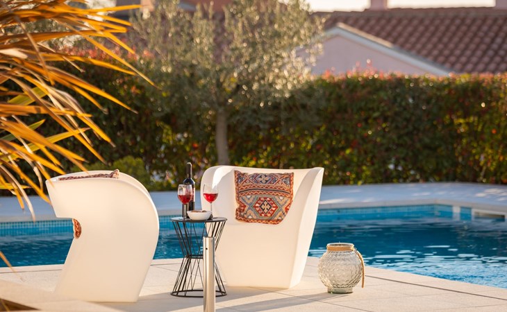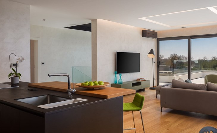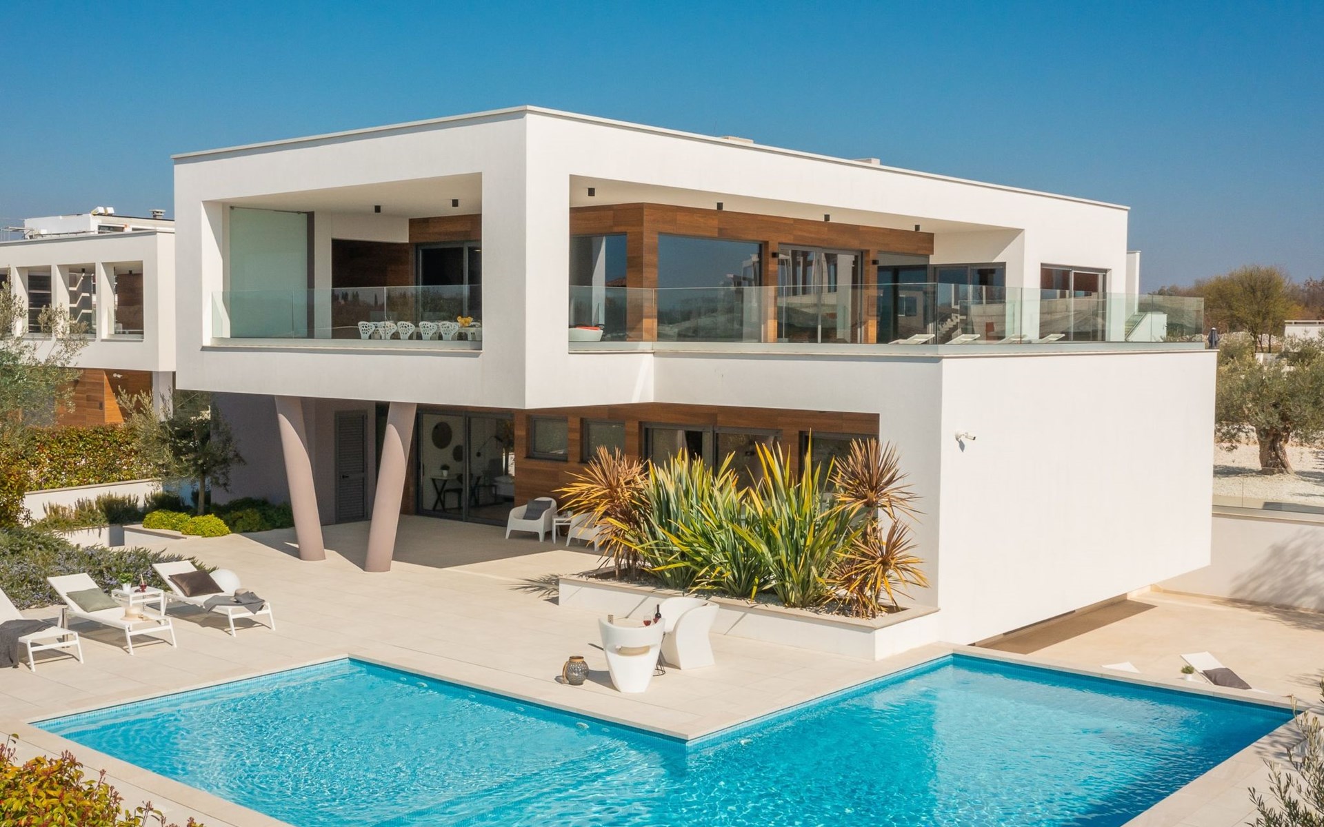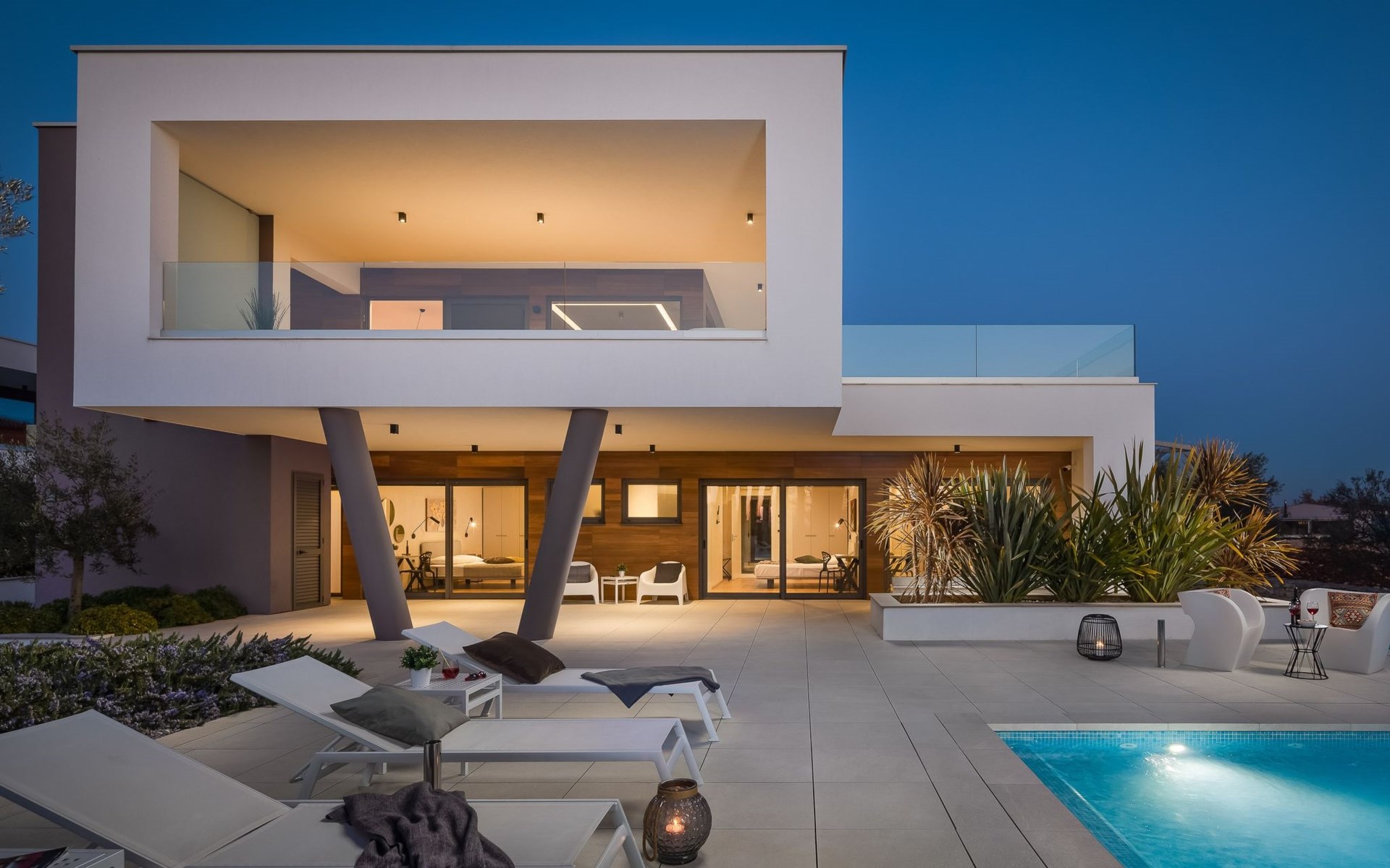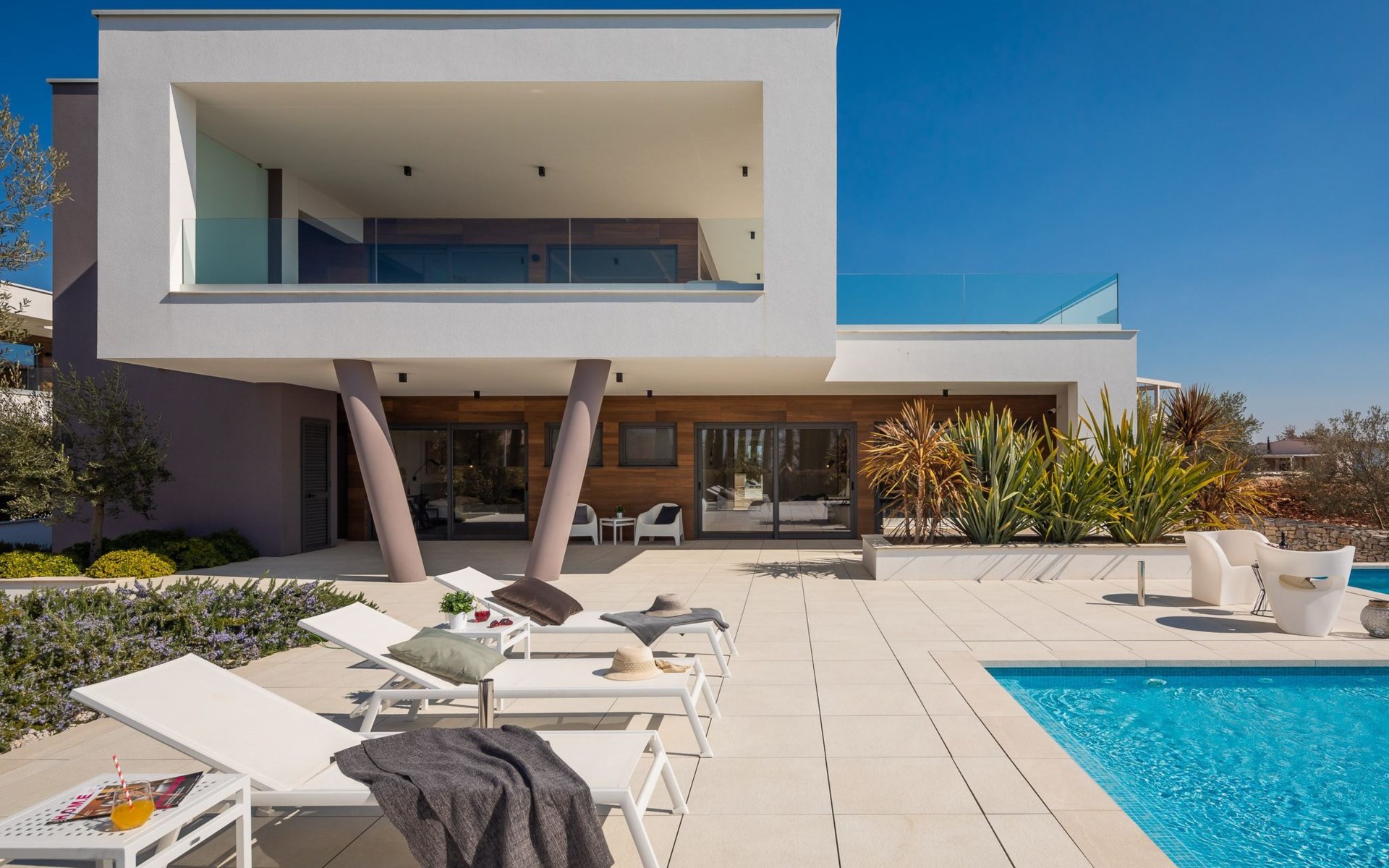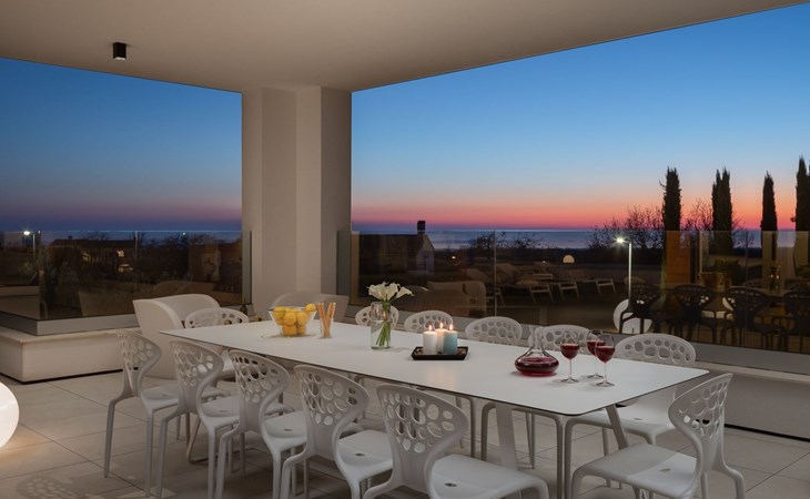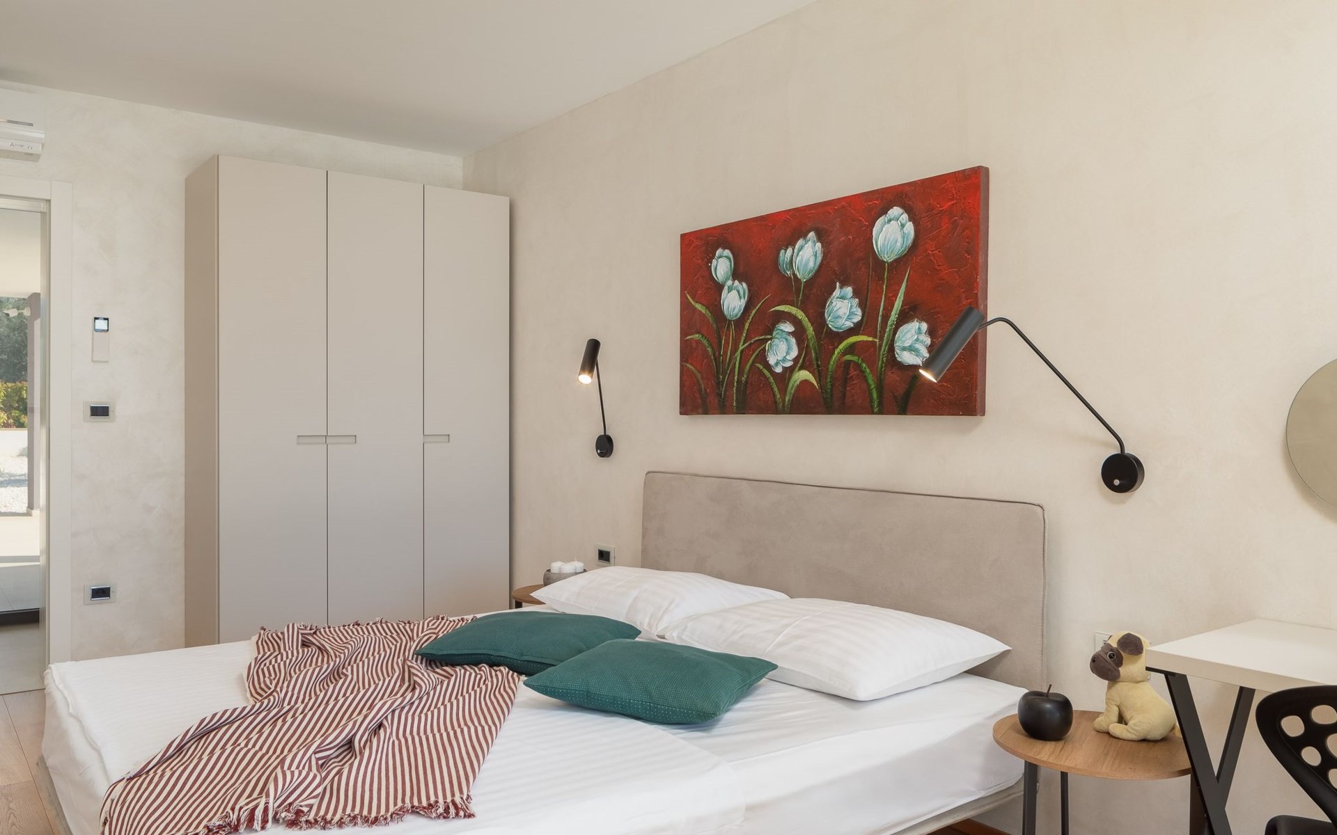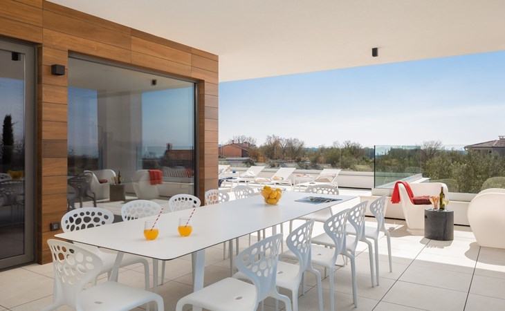 Vodnjan: Moderne villa "Old Olive I", van 3 verdiepingen. In het gehucht Salvela, 1 km van het centrum van Vodnjan, 7 km van het centrum van Fažana, 10 km van het centrum van Pula, zonnige ligging, 7 km van zee. Voor alleengebruik: terrein 1.000 m2 (omheind), tuin met planten en bomen, openluchtzwembad (65 m2, 30 - 140 cm diepte, seizoensgebonden beschikbaarheid: 01.Mrt. - 01.Nov.) met trap. Onregelmatig zwembad. WC bij het zwembad, buitendouche, hot tub, barbecue. In het huis: internetaansluiting, sauna, tafeltennis, biljart, tafelvoetbal, wasmachine, droger. Parkeerplaats (voor 3 auto's) bij het huis op het terrein. Winkel 1 km, supermarkt 1 km, restaurant 1.5 km, bushalte 1.4 km, kiezelstrand 7 km, strandbad 7 km. Golfterrein (18 holes) 7 km, tennis 2 km. Attracties in de buurt: NP Brijuni 7 km, Amphitheater 11 km. Groepen jongeren uitsluitend op aanvraag.