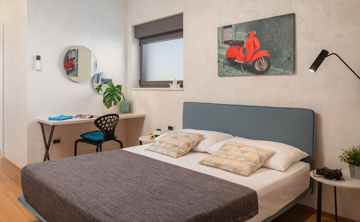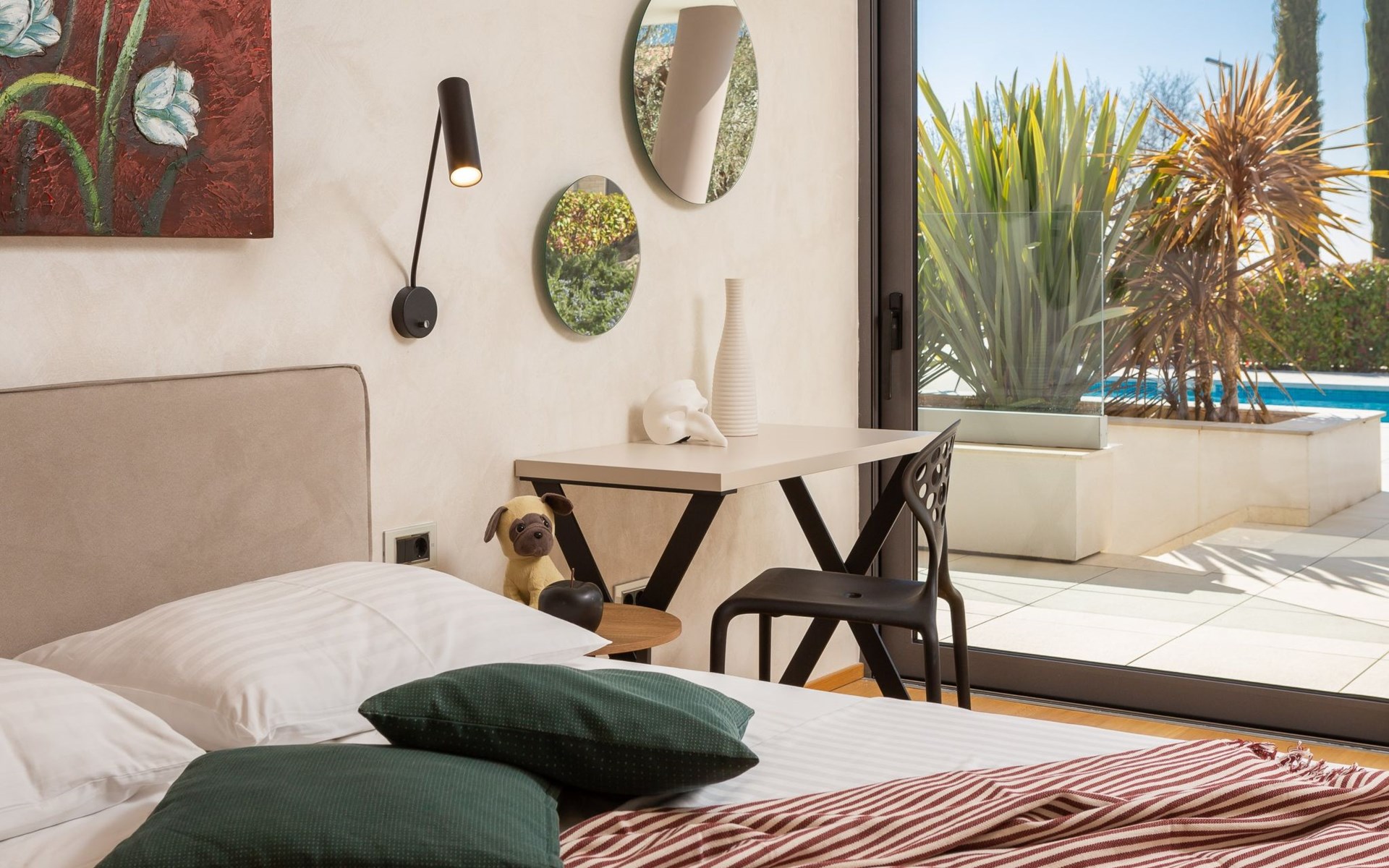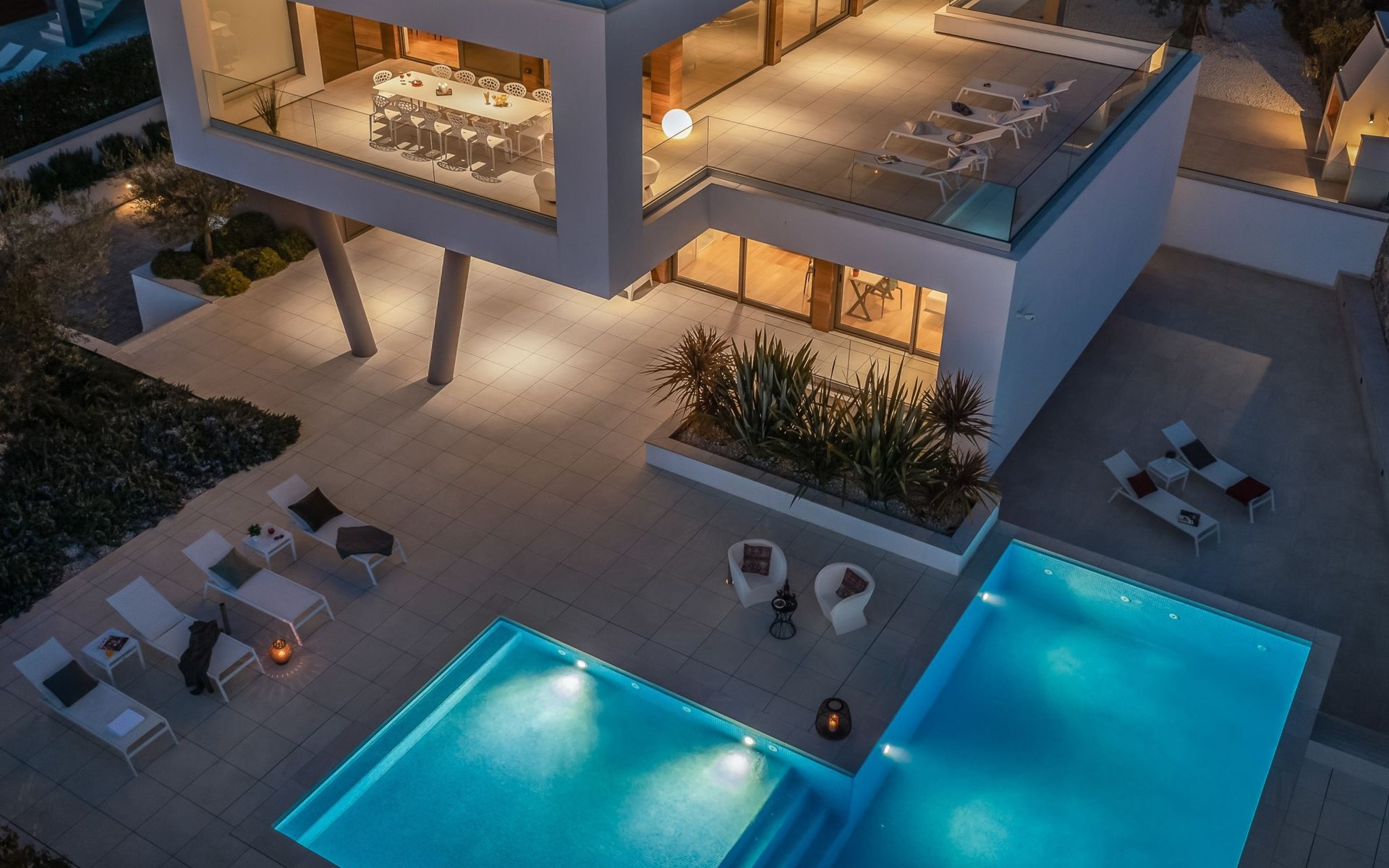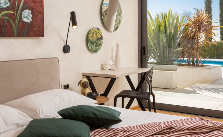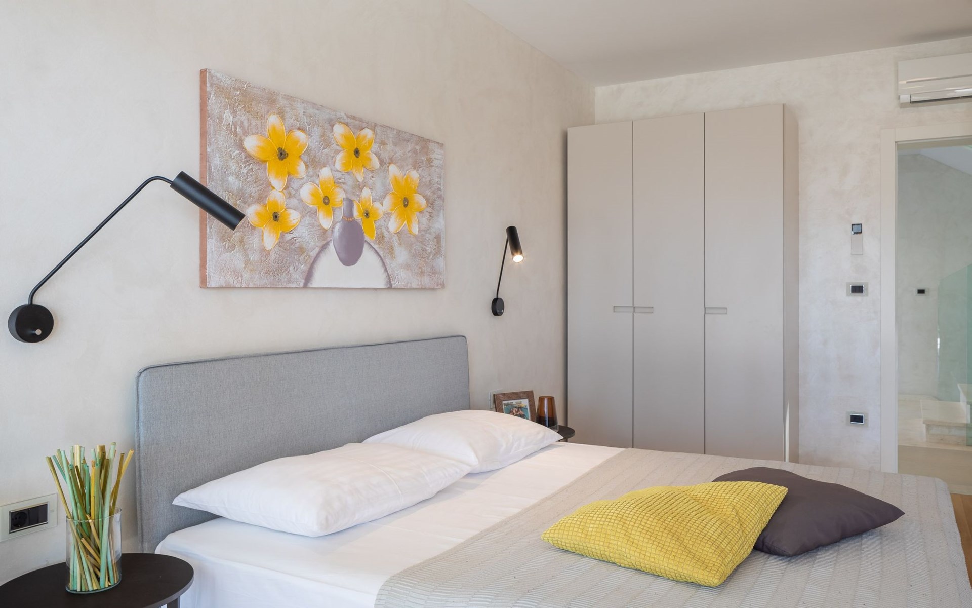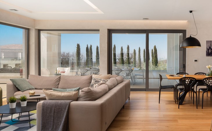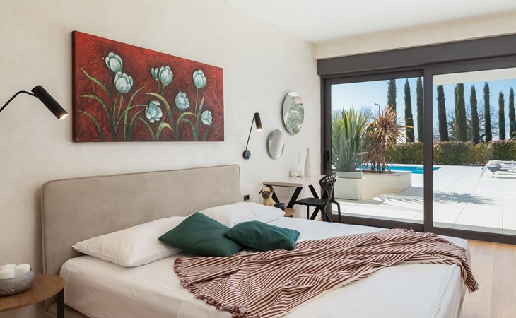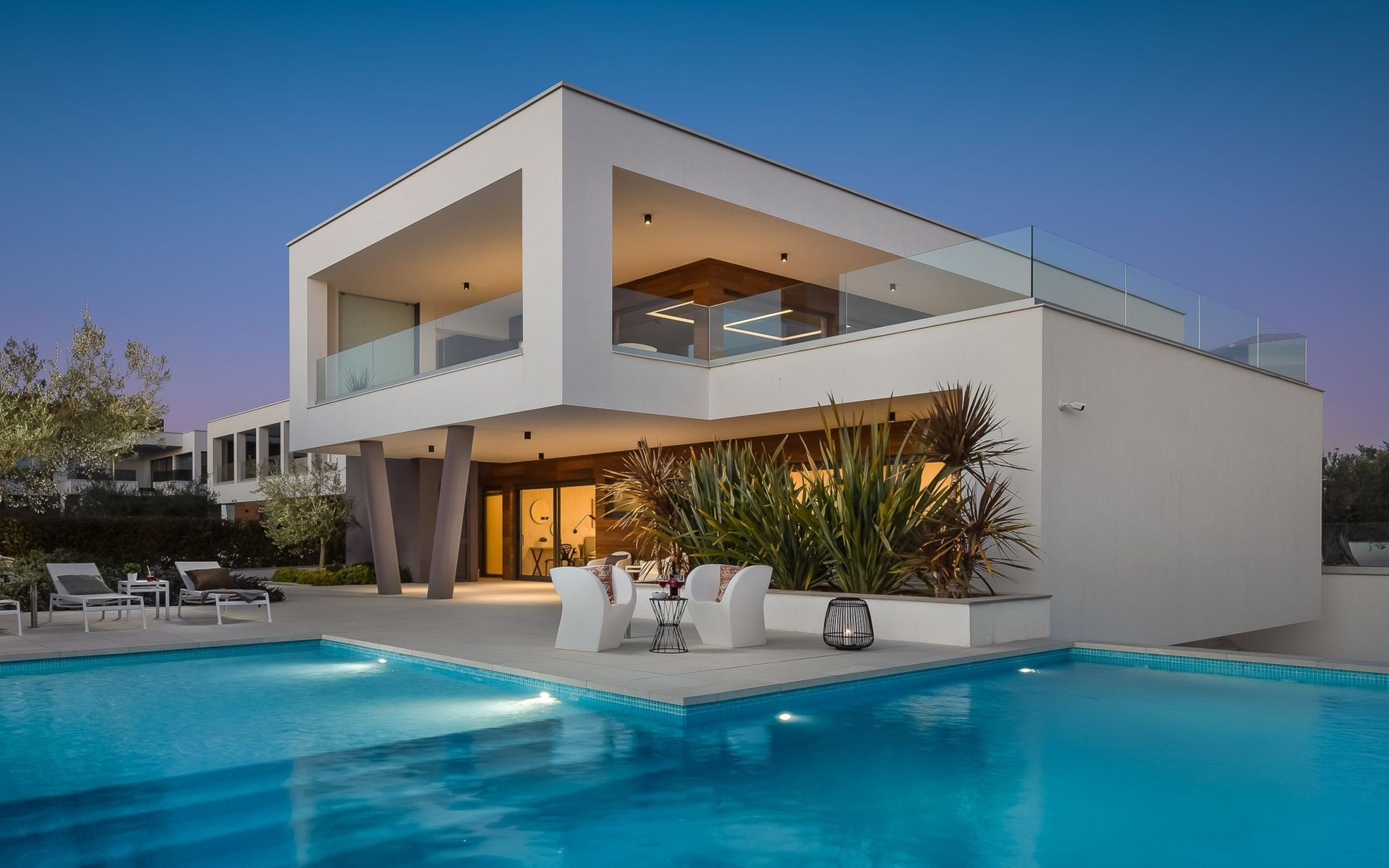 Vodnjan: Moderne villa "Old Olive I", van 3 verdiepingen. In het gehucht Salvela, 1 km van het centrum van Vodnjan, 7 km van het centrum van Fažana, 10 km van het centrum van Pula, zonnige ligging, 7 km van zee. Voor alleengebruik: terrein 1.000 m2 (omheind), tuin met planten en bomen, openluchtzwembad (65 m2, 30 - 140 cm diepte, seizoensgebonden beschikbaarheid: 01.Mrt. - 01.Nov.) met trap. Onregelmatig zwembad. WC bij het zwembad, buitendouche, hot tub, barbecue. In het huis: internetaansluiting, sauna, tafeltennis, biljart, tafelvoetbal, wasmachine, droger. Parkeerplaats (voor 3 auto's) bij het huis op het terrein. Winkel 1 km, supermarkt 1 km, restaurant 1.5 km, bushalte 1.4 km, kiezelstrand 7 km, strandbad 7 km. Golfterrein (18 holes) 7 km, tennis 2 km. Attracties in de buurt: NP Brijuni 7 km, Amphitheater 11 km. Groepen jongeren uitsluitend op aanvraag.