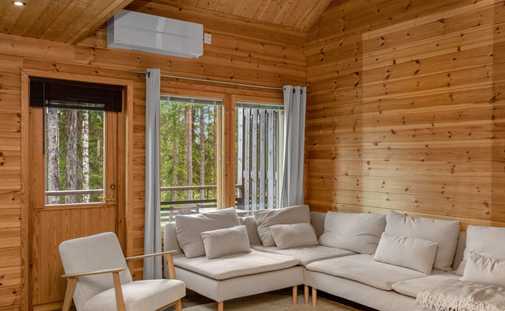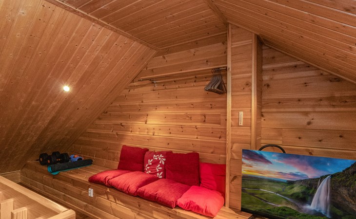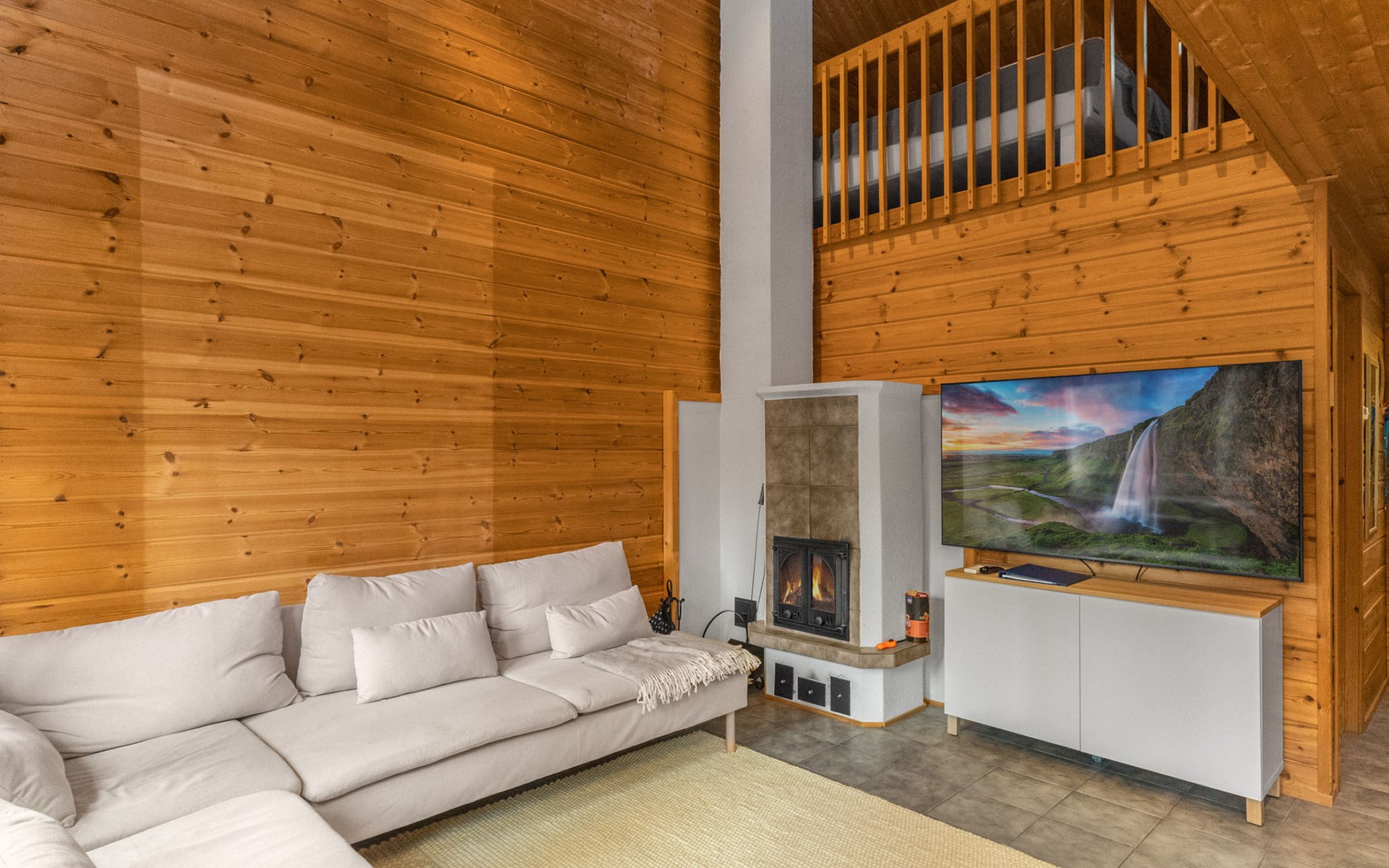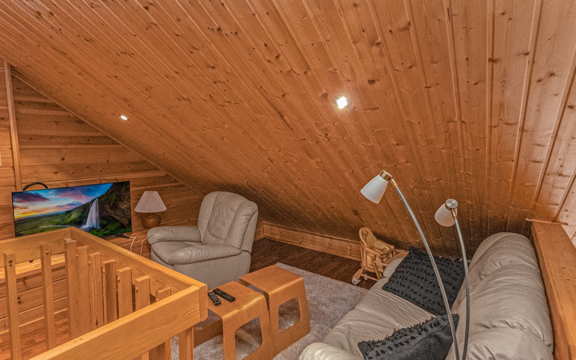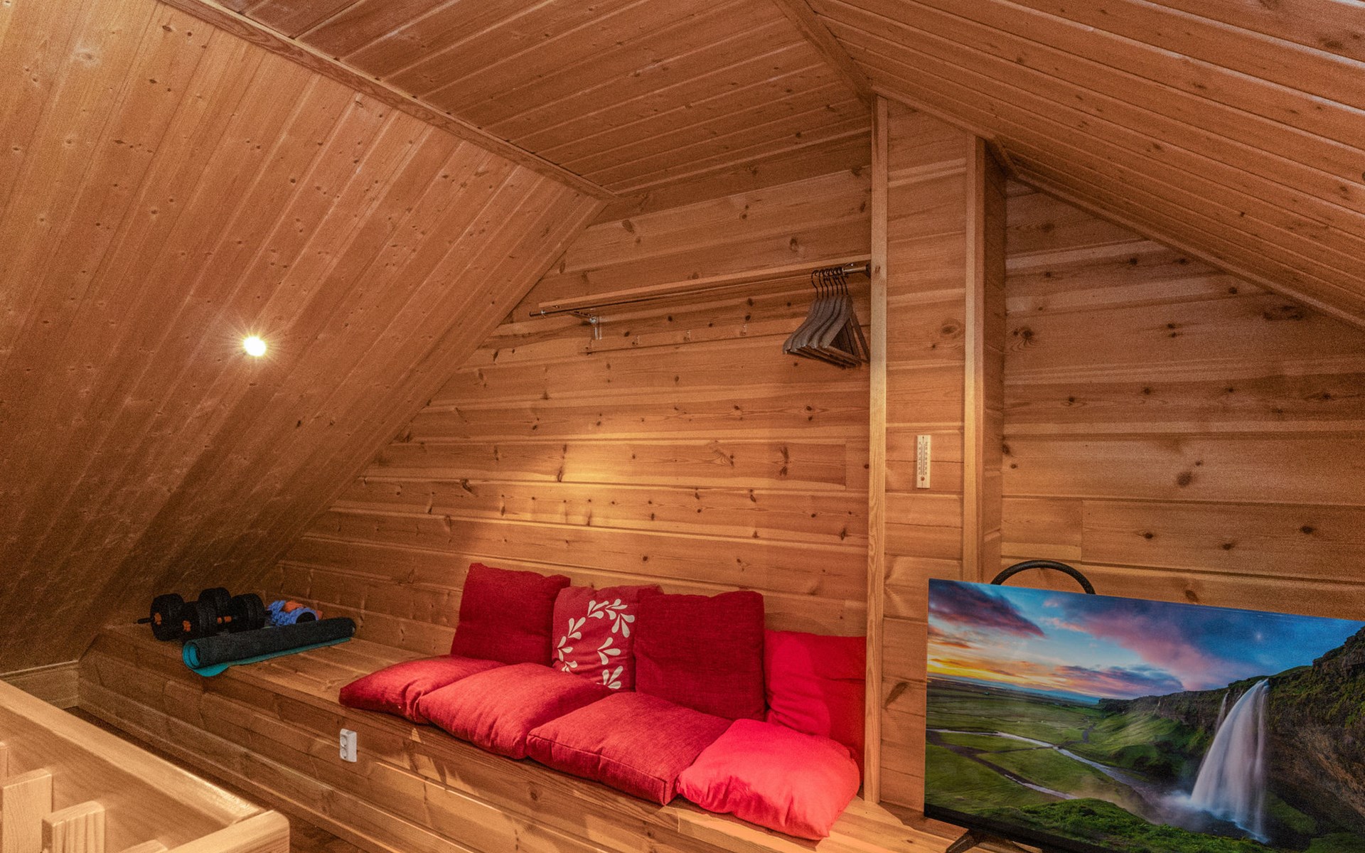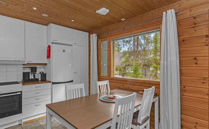 The apartment living area 54 m2 first floor + 13 m2 loft, a living room/kitchen, one bedroom with two separate 90 cm wide beds (renewed in 2025), and a loft (13 m²) with two separate 80 cm beds (renewed in 2025). The apartment also includes a sauna with an electric stove and a washroom/WC. The washroom has been recently renovated, and the living area has also been refreshed.