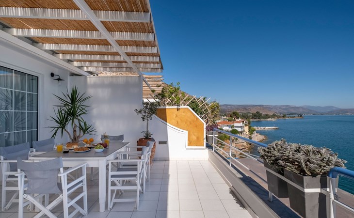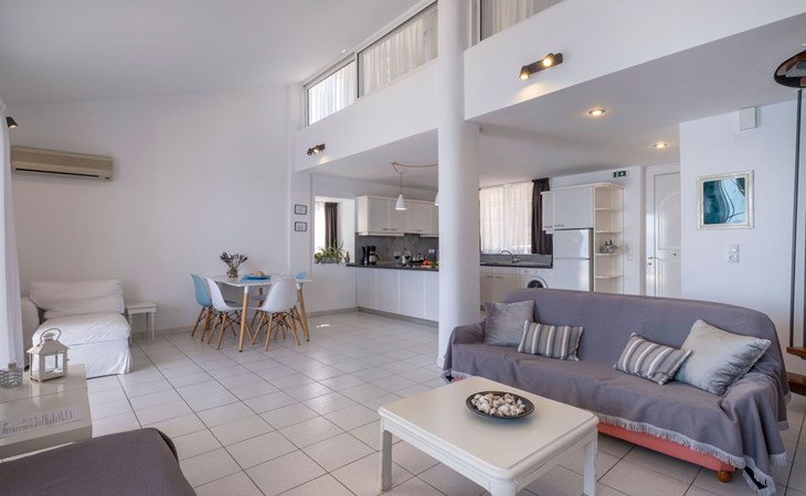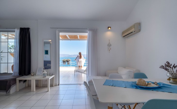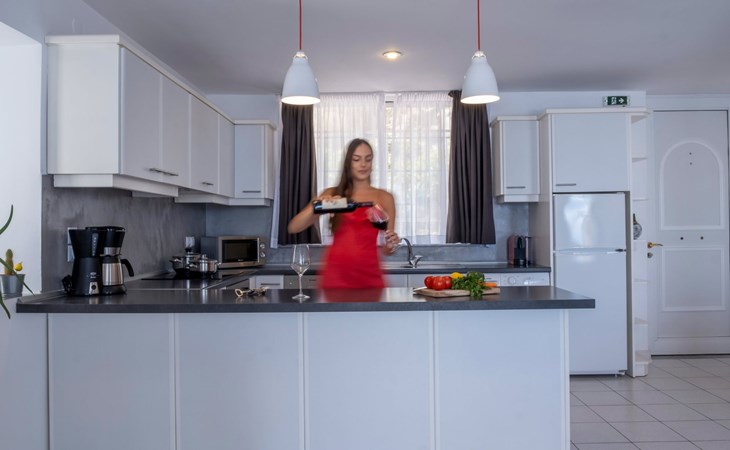 Discover the charm of Kiveri from the comfort of this welcoming 85m² ground-floor apartment, perfectly designed to accommodate up to five guests. An ideal retreat for small families or a group of friends, this apartment, situated just a stone's throw from the beach and the sea, offers a unique blend of convenience and serenity. Feel the gentle sea breeze as you step into a space where every detail has been considered to ensure your utmost comfort and a memorable stay.Inside, the apartment reveals a harmoniously designed living area, bathed in natural light, which seamlessly integrates a cozy fireplace and a sleek, open-plan kitchen. The space is thoughtfully equipped with essentials, including a fridge, oven, stove, microwave, two types of coffee machines (filter and capsule), a dishwasher, and an exclusive washing machine. These modern amenities are complemented by comprehensive crockery and cooking utensils, encouraging the culinary exploration of local recipes or the preparation of familiar meals. Comfort is further enhanced by air conditioning throughout, ensuring a pleasant ambiance regardless of the outdoor climate.The outdoor area of the apartment invites guests to immerse themselves in the idyllic surroundings. A spacious 30m² balcony, partially roofed, features a tastefully arranged seating group, making it a perfect setting for any part of your day. From enjoying your morning coffee with the soothing whispers of the sea to unwinding in the evening with a glass of wine under the open sky—the terrace promises unforgettable moments of relaxation and leisure. The garden, shared communally, offers an additional green oasis, fostering a sense of community and connection with nature.The apartment's prime location in Kiveri not only brings the allure of the sea and beach within a mere 10 meters but also places you within easy reach of the town center, just 200 meters away. For daily necessities or a taste of local life, a grocery store can be found 500 meters from your doorstep. The proximity to these conveniences, along with the absence of youth groups to preserve the tranquil atmosphere, ensures a restful and hassle-free holiday experience. With the apartment's setting on the ground floor, guests enjoy easy access and a sense of belonging in this vibrant community, further enriched by the presence of the owner on the property, guaranteeing a personalized and secure stay.This apartment in Kiveri presents an unparalleled opportunity to immerse in the coastal charm and embrace a laid-back lifestyle, complemented by the comfort and convenience of a fully-equipped living space. Whether you're seeking a peaceful retreat close to nature or a base for exploring the enchanting surroundings, this property promises a stay filled with relaxation, comfort, and memorable moments. 1009324