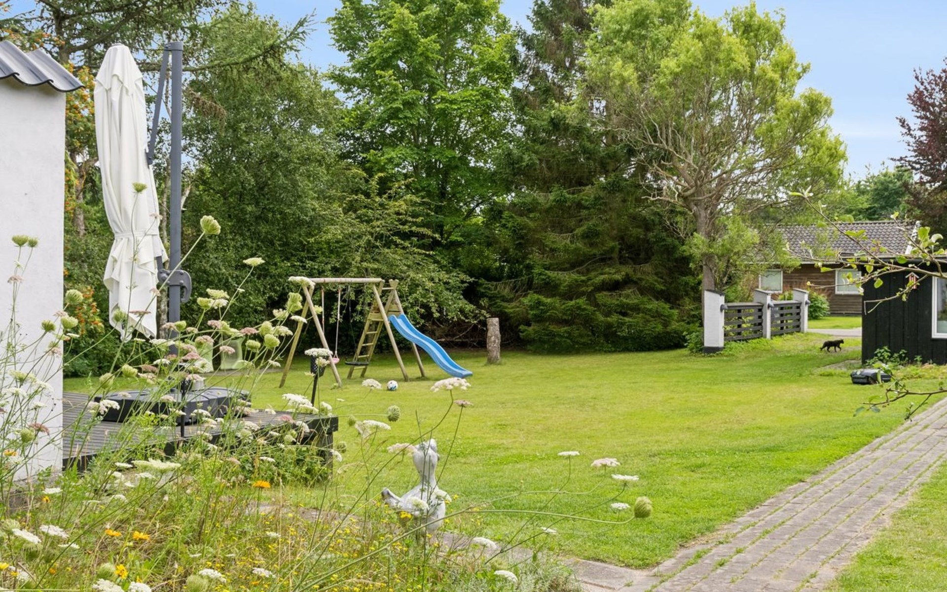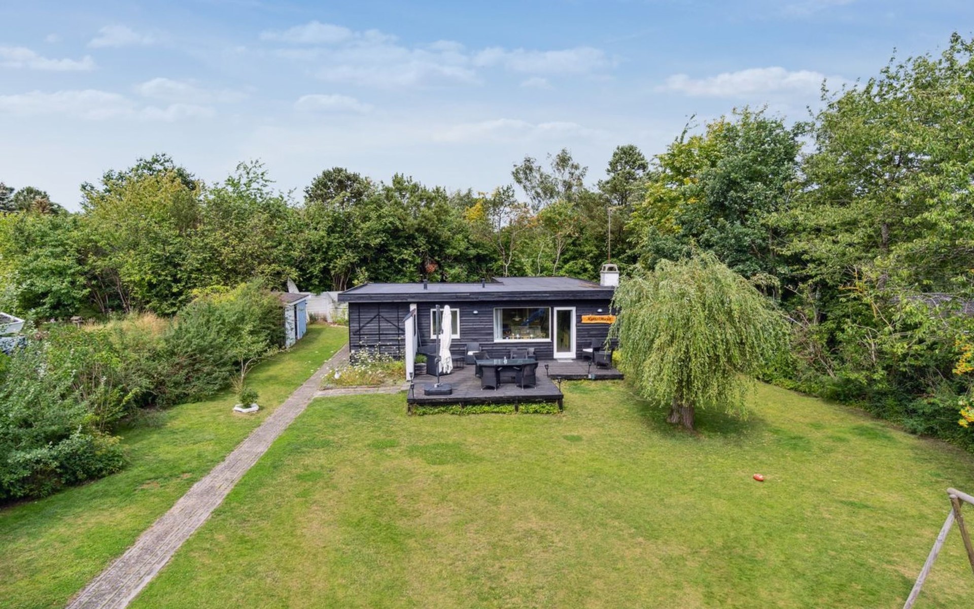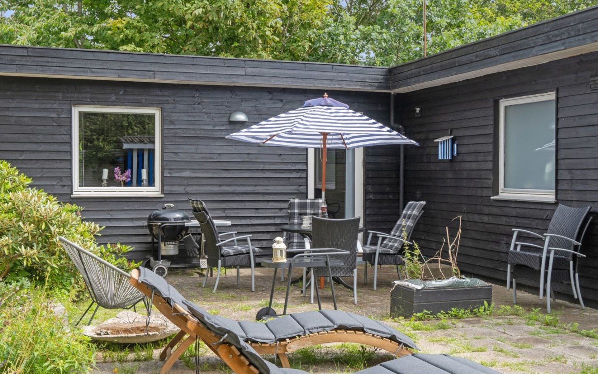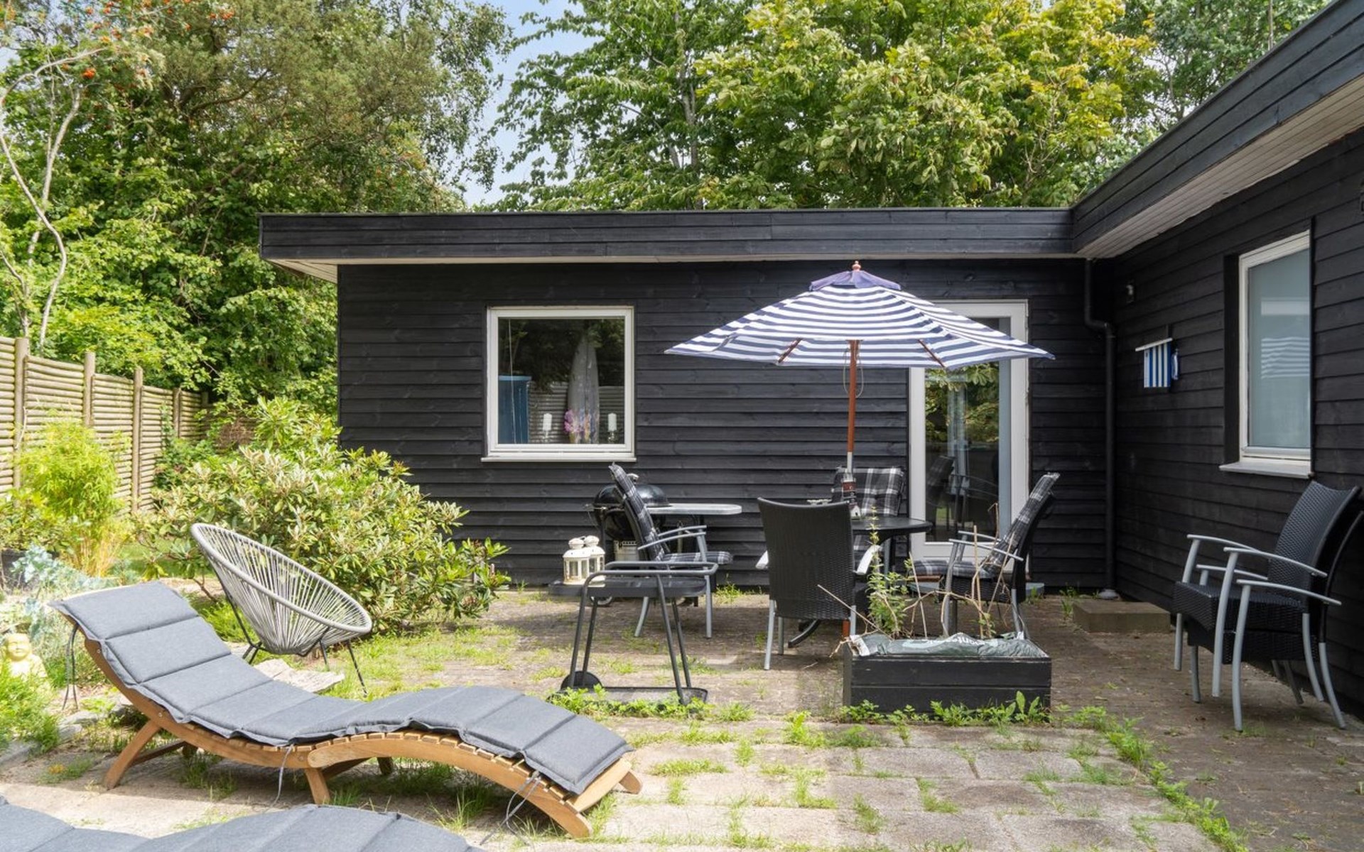Eengezinswoning, bouwjaar 1969. 1.2 km van zee. Voor alleengebruik: terrein 1.223 m2, verzorgde tuin. Barbecue, kinderspeelplaats (glijbaan, schommel). In het huis: wasmachine, droger. Parkeerplaats bij het huis. Levensmiddelenwinkel 2 km. Golfterrein 15 km. De eigenaar accepteert geen jeugdgroepen.
