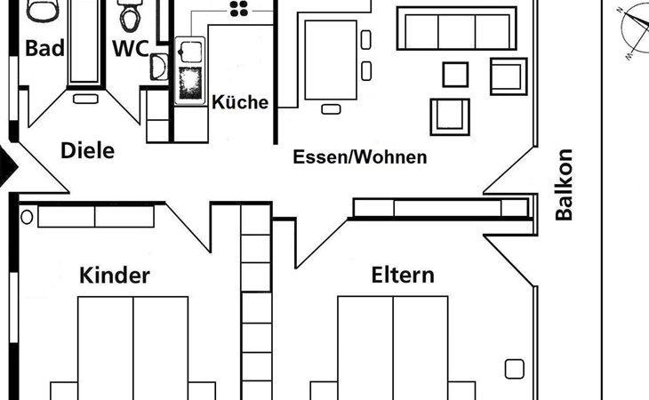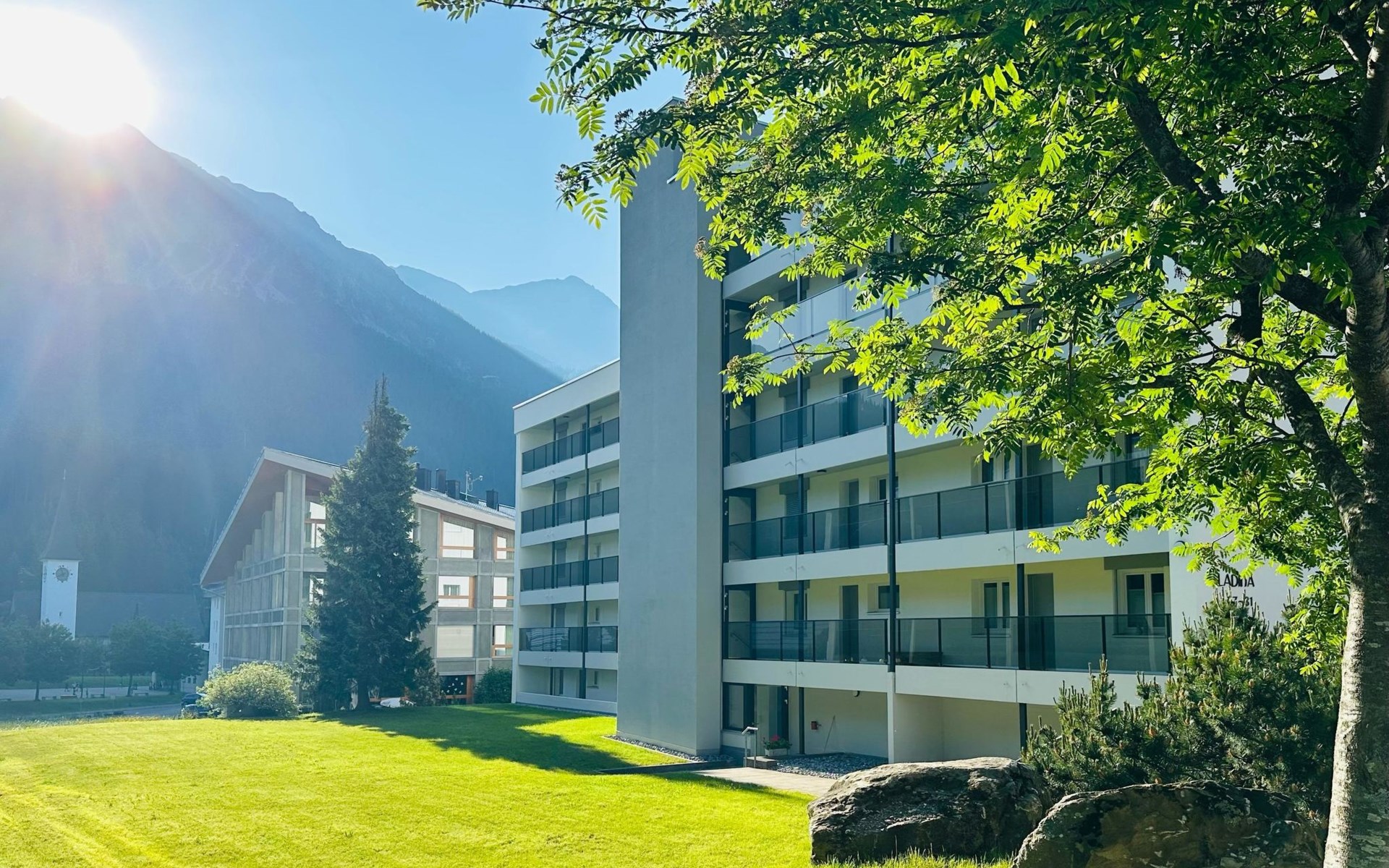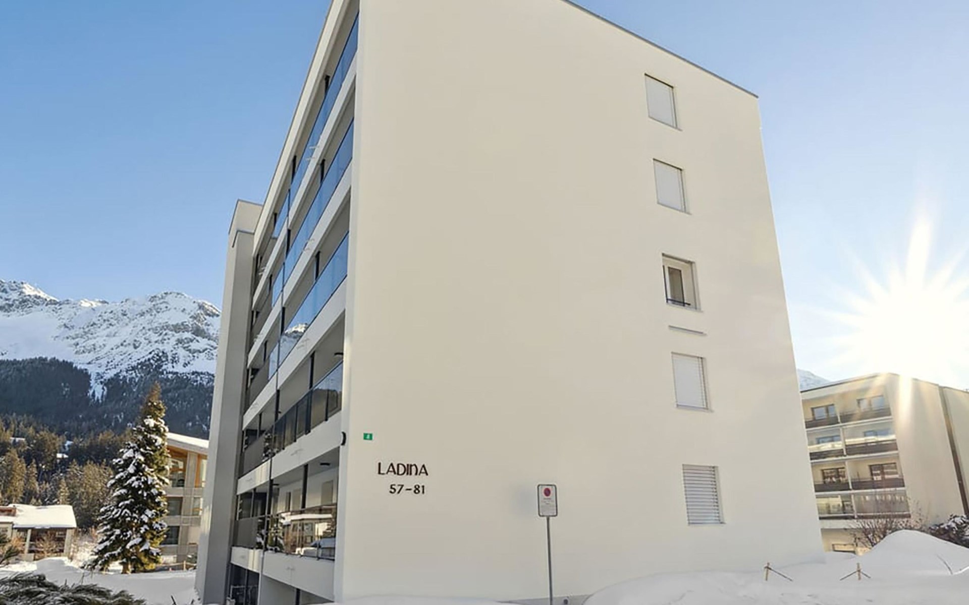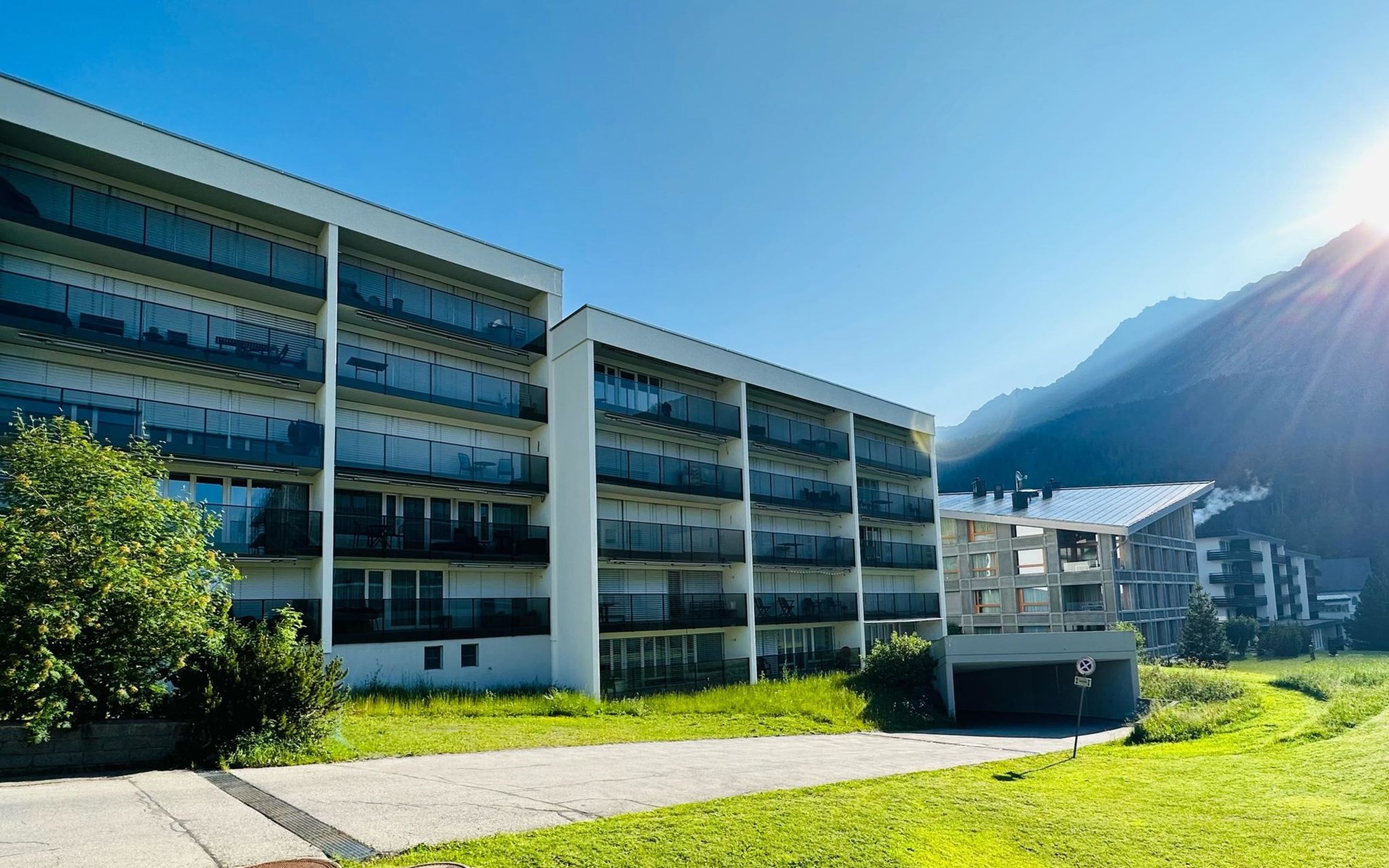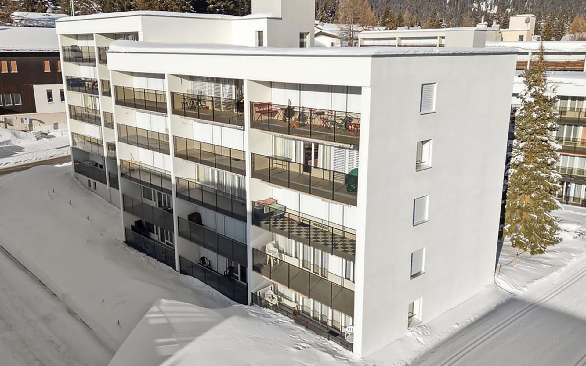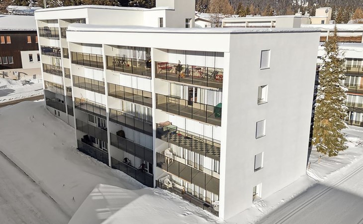 House Ladina/ Ground floor – right / Elevator / Wifi yes / 1 room with double bed / 1 room with two single beds / 1 bathroom with toilet and bathtub / 1 separate toilet All lake street apartments house number 4-6 are located in the center of Lenzerheide and feature a south-facing balcony, as well as being directly on the ski slope/cross-country trail and in close proximity to the free sports bus and various shopping facilities. A good starting point for all winter/summer activities for the whole family. (In the same house Ladina, there are the holiday apartments No. 63, No. 68, and No. 78)