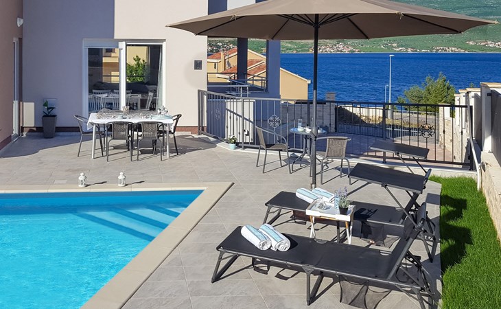 Eengezinswoning "Sea Front Villa Lucija", van 3 verdiepingen, bouwjaar 2019. 2 km van het centrum van Pridraga, aan de rand van de plaats, 6 km van het centrum van Novigrad, 35 km van het centrum van Zadar, 50 m van zee, 50 m van het strand. Voor alleengebruik: terrein 550 m2 (omheind) met planten, openluchtzwembad (7 x 7 m, 135 cm diepte, seizoensgebonden beschikbaarheid: 01.Mei. - 02.Okt.) met trap. Patio, tuinmeubelen, onderhoud zwembad door de eigenaar/tuinman. In het huis: internetaansluiting, fitnessruimte, air-conditioning, wasmachine. Parkeerplaats (voor 2 auto's) bij het huis. Winkel 2 km, supermarkt 6 km, bushalte 17.3 km, kiezelstrand 50 m.