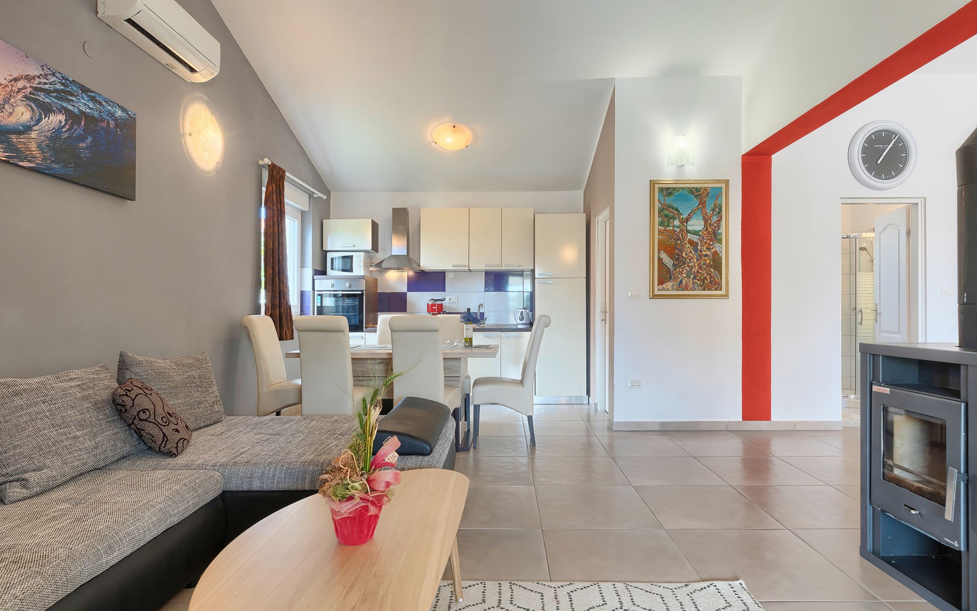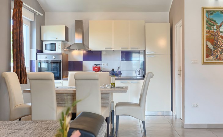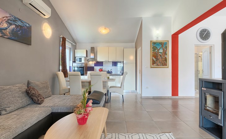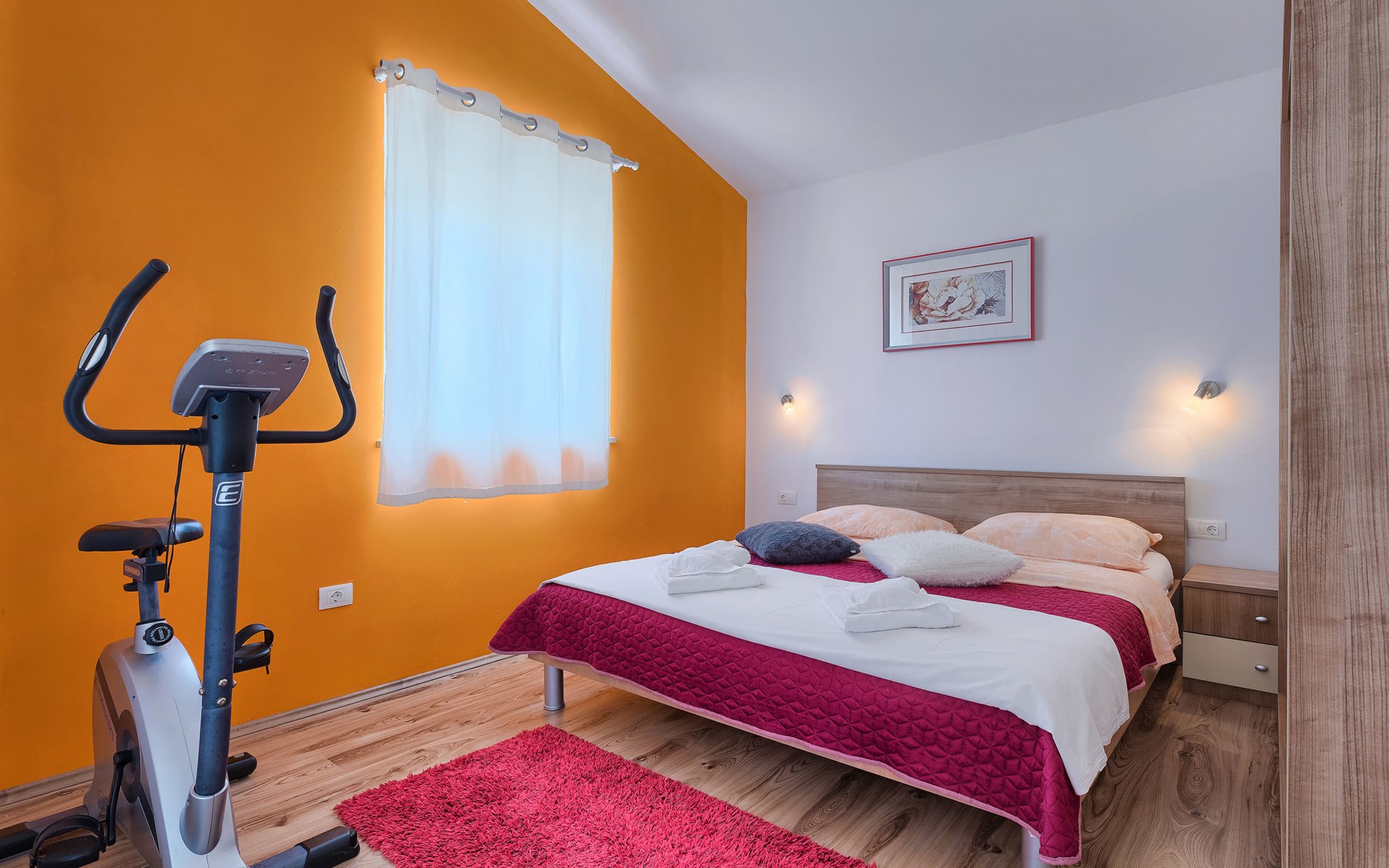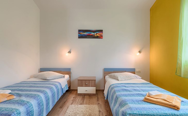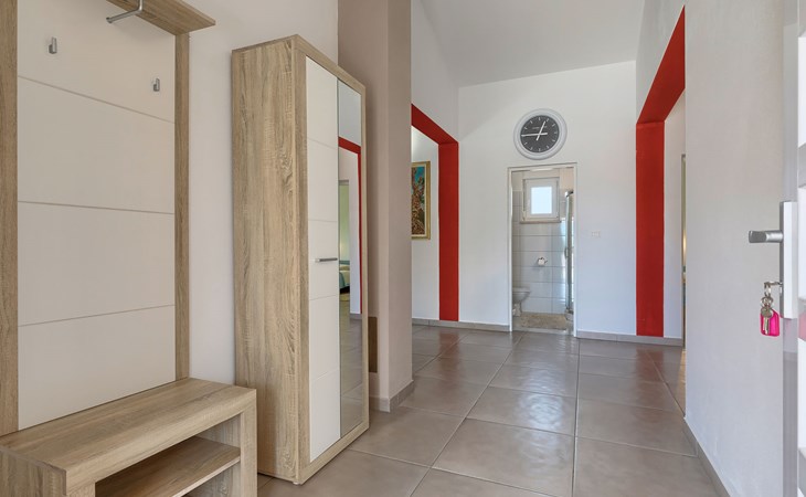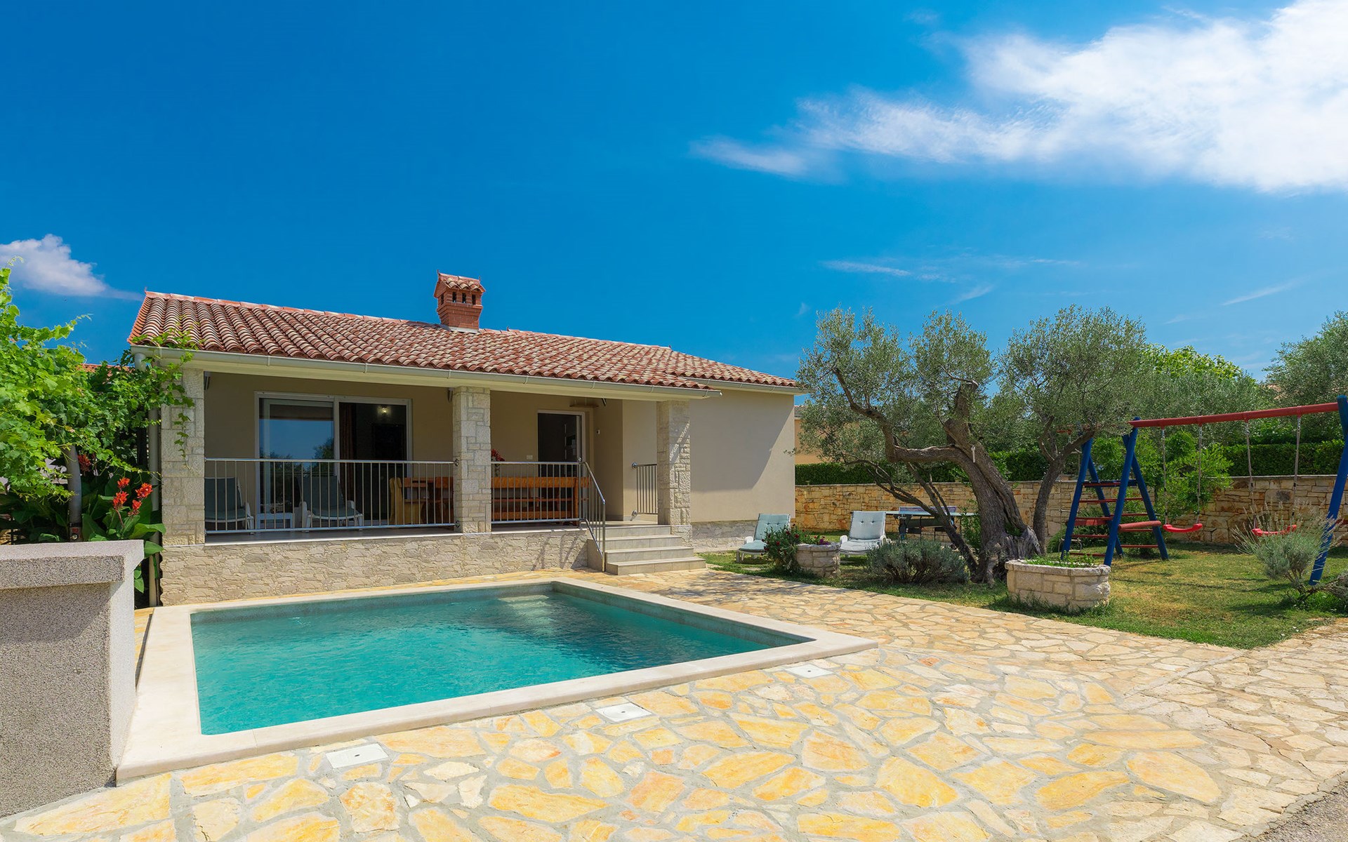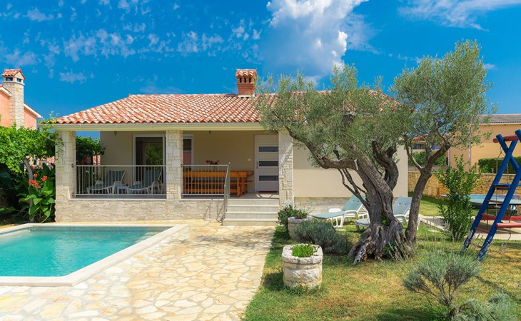 Eengezinswoning "Goldi". In het gehucht Golubovo, 7 km van het centrum van Vodnjan, 4 km van zee, 4 km van het strand. Voor alleengebruik: terrein 500 m2 (omheind), gazon en planten, openluchtzwembad (5 x 4 m, 140 cm diepte, seizoensgebonden beschikbaarheid: 15.Apr. - 14.Okt.). Buitendouche, tafeltennis, barbecue (glijbaan). In het huis: internetaansluiting, wasmachine. Parkeerplaats (voor 2 auto's) op het terrein. Supermarkt 7 km, bushalte 3.6 km, kiezelstrand 4 km, rotsstrand 4 km.