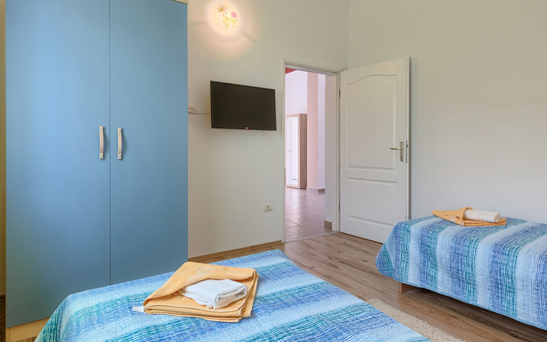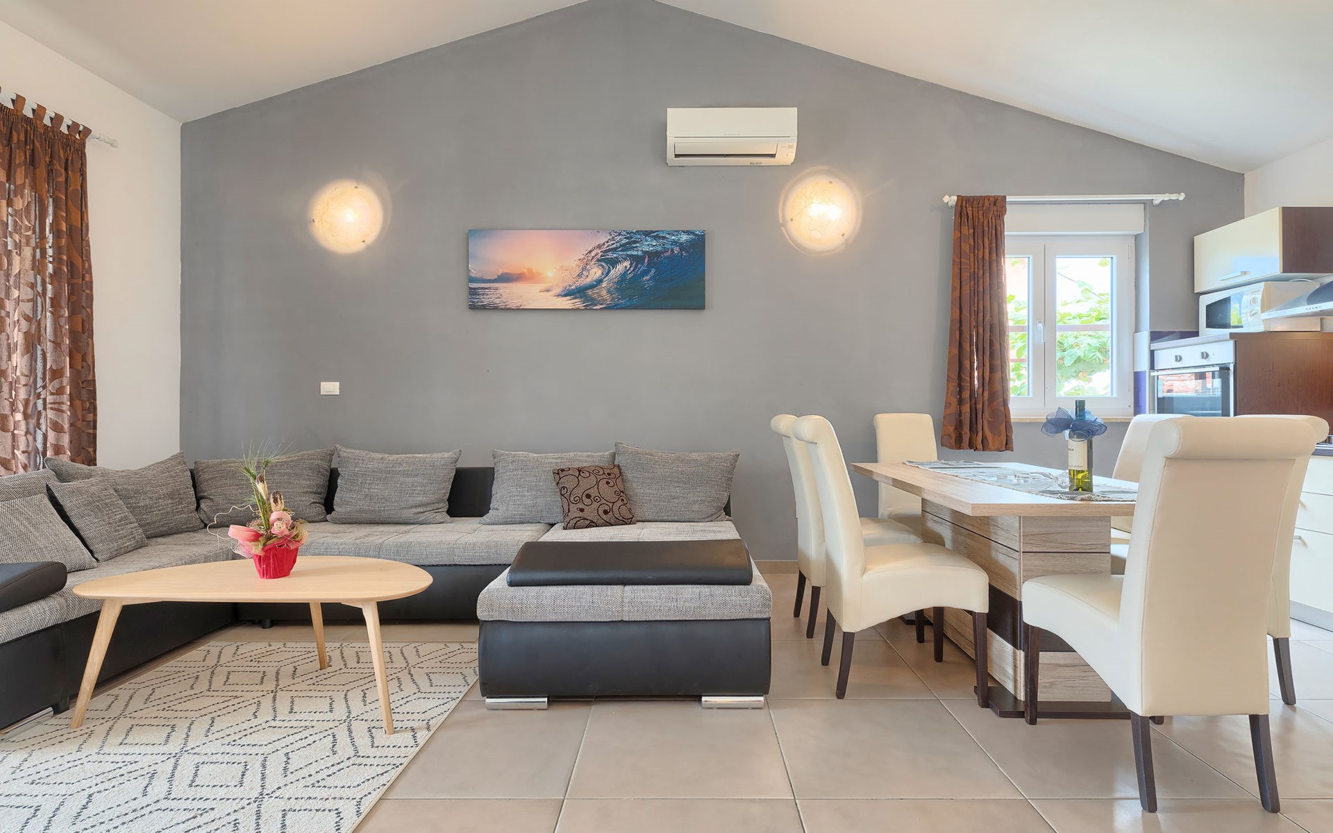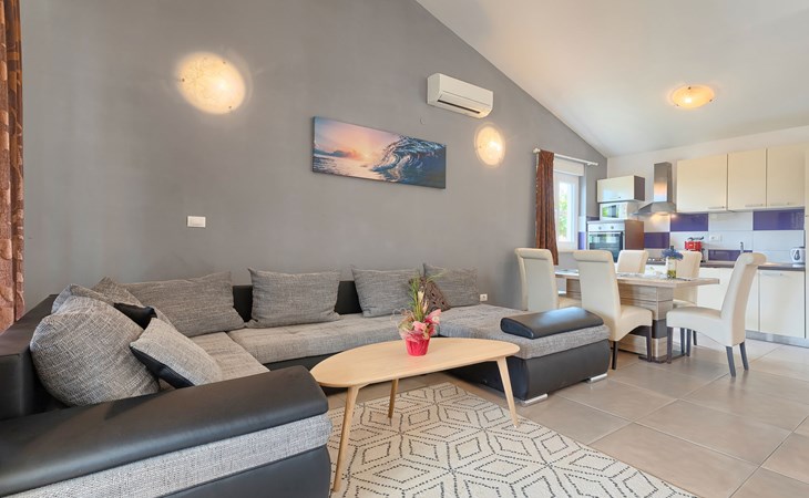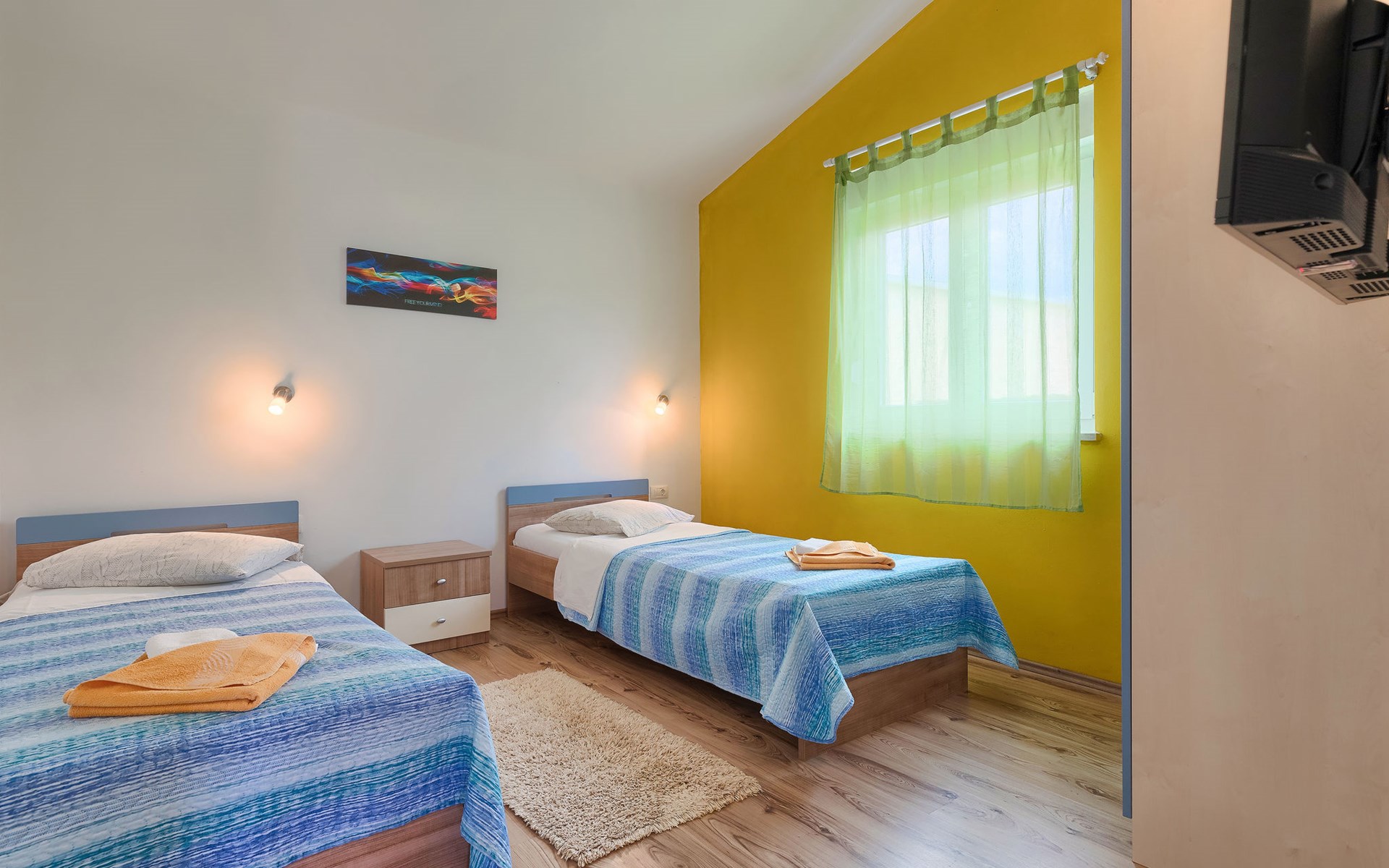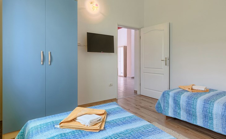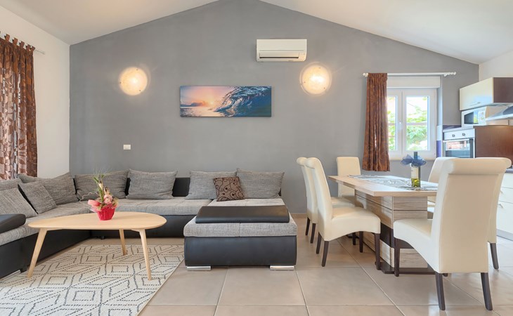 Eengezinswoning "Goldi". In het gehucht Golubovo, 7 km van het centrum van Vodnjan, 4 km van zee, 4 km van het strand. Voor alleengebruik: terrein 500 m2 (omheind), gazon en planten, openluchtzwembad (5 x 4 m, 140 cm diepte, seizoensgebonden beschikbaarheid: 15.Apr. - 14.Okt.). Buitendouche, tafeltennis, barbecue (glijbaan). In het huis: internetaansluiting, wasmachine. Parkeerplaats (voor 2 auto's) op het terrein. Supermarkt 7 km, bushalte 3.6 km, kiezelstrand 4 km, rotsstrand 4 km.
