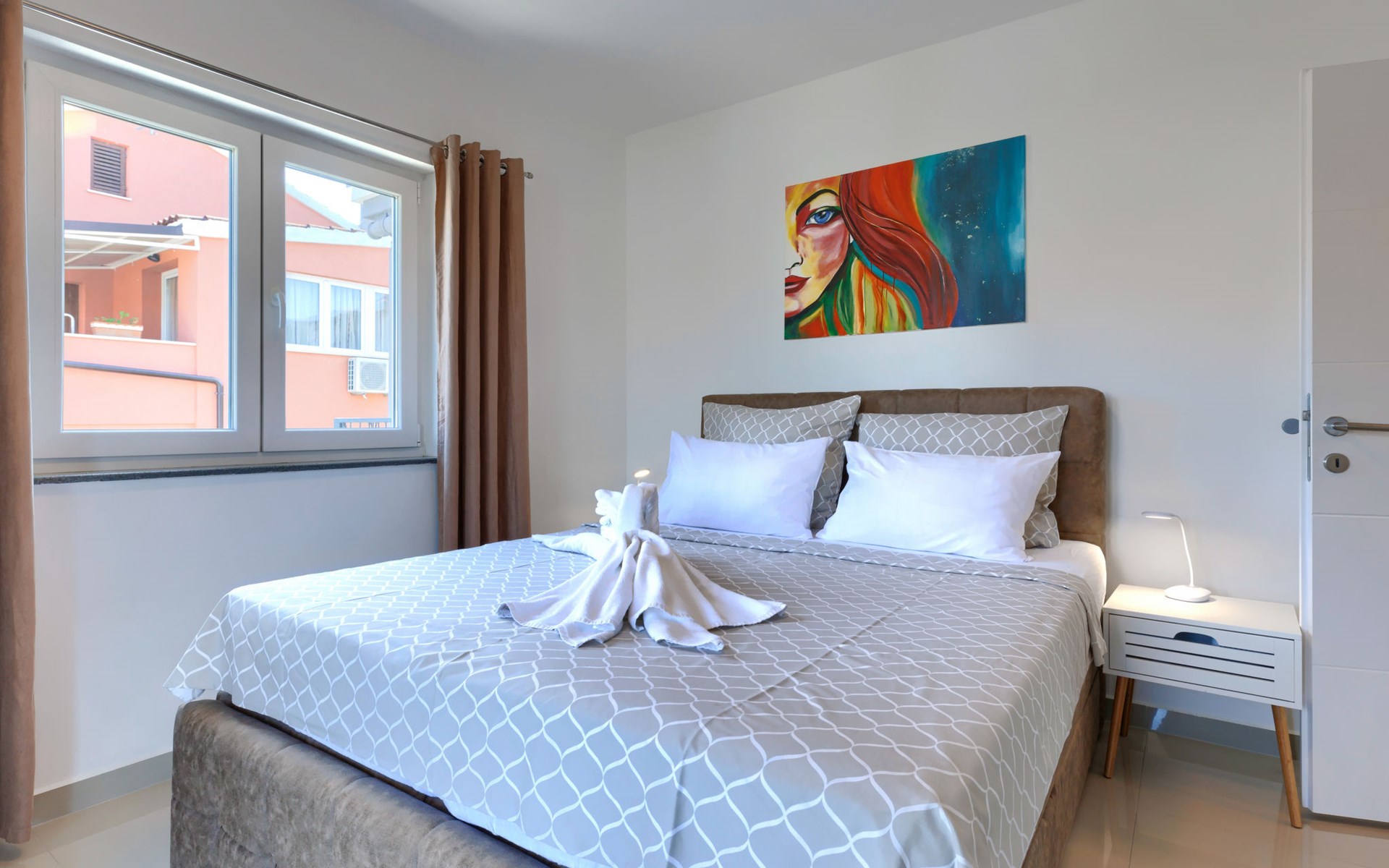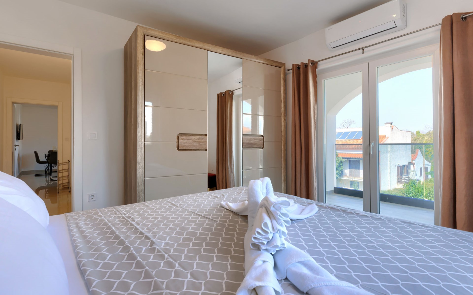 Eenvoudig appartementencomplex "Villa Amra". In de wijk Finida, 1.2 km van het centrum van Poreč, 800 m van zee, van het strand. Voor medegebruik: barbecue. In het huis: internetaansluiting. Parkeerplaats bij het huis op het terrein. Supermarkt 350 m, restaurant 500 m, bushalte 1.1 km, kiezelstrand, rotsstrand 800 m. Jachthaven 1 km, zeilschool 1 km, tennis 1 km, wandelroutes 1 km vanaf het huis, fietspad 1 km, kinderspeelplaats 300 m. Attracties in de buurt: Aquapark 3 km.