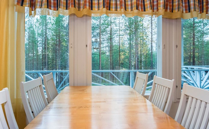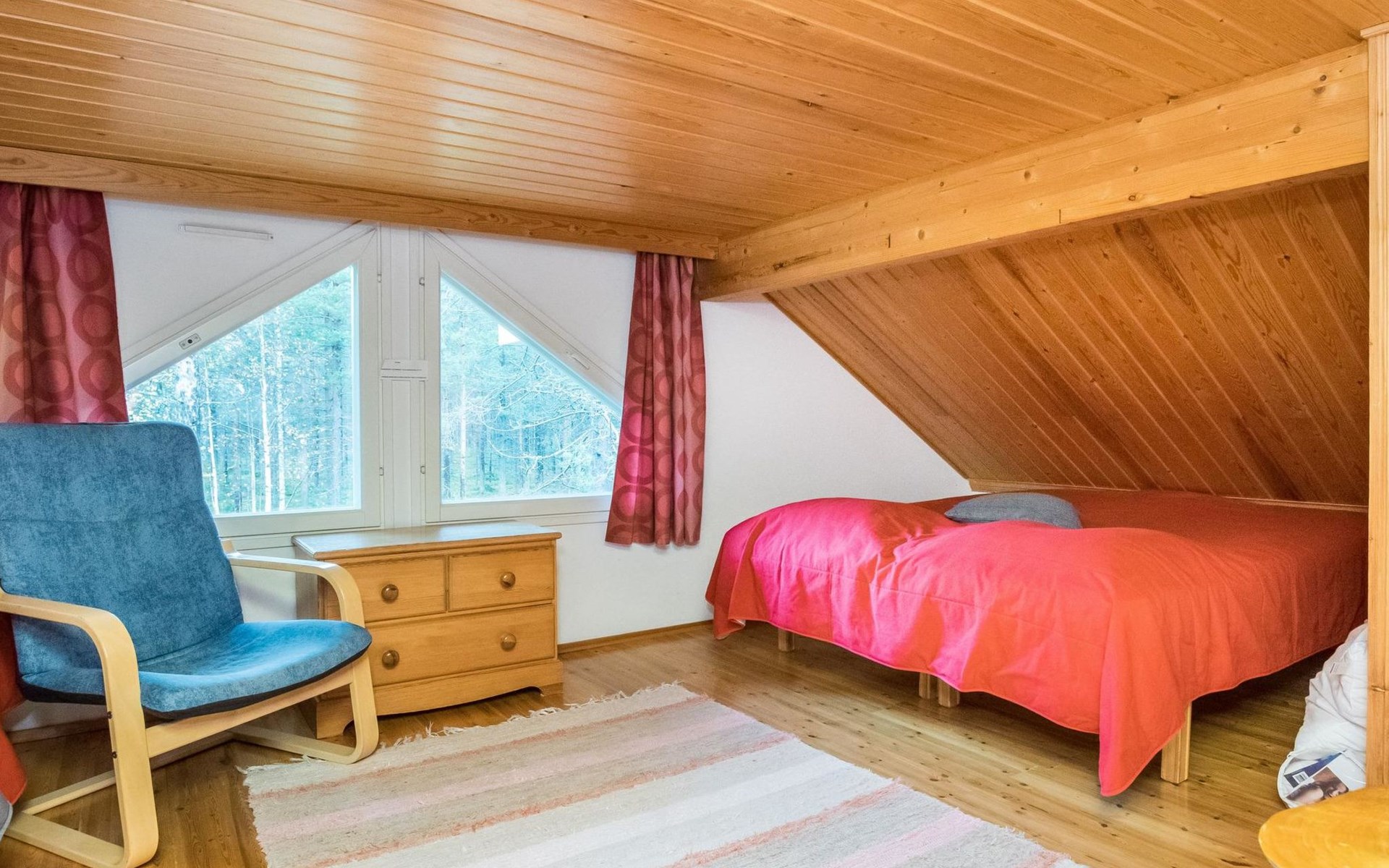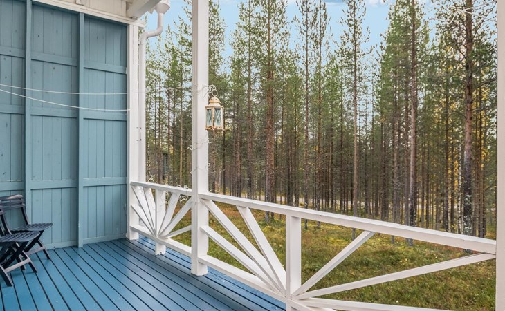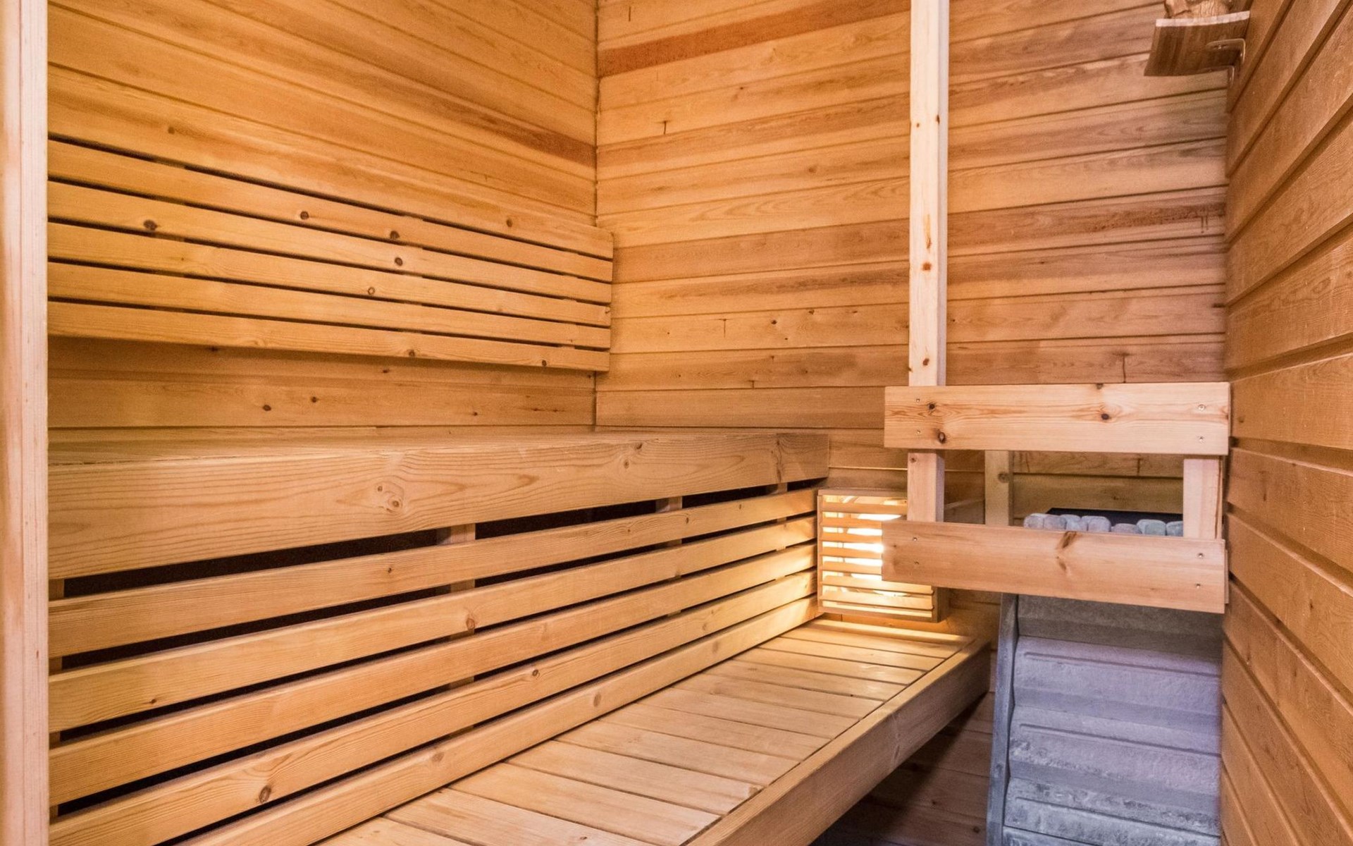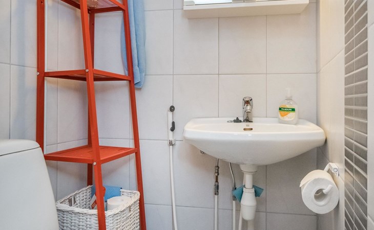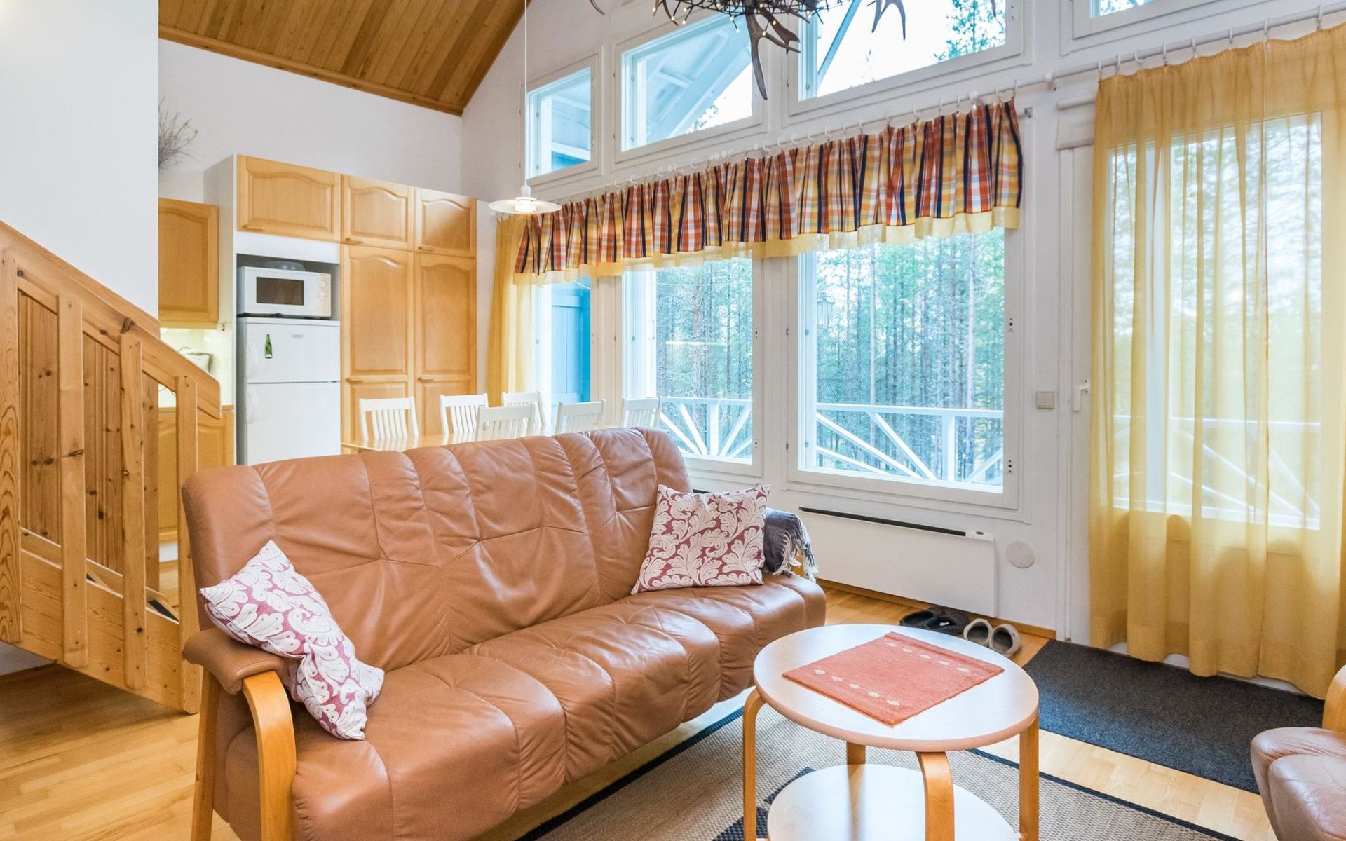 Part of row house built 1991, with living room/ kitchen, bedroom with double bed, sauna and washroom, WC and sleeping loft, with two divan double beds which can, however, each be separated to make two single divan beds (four in all), and one separate single divan bed. Outside terrace.