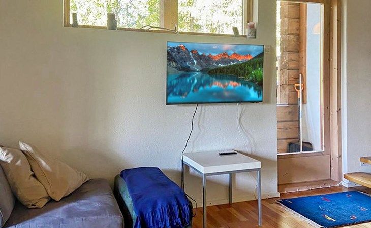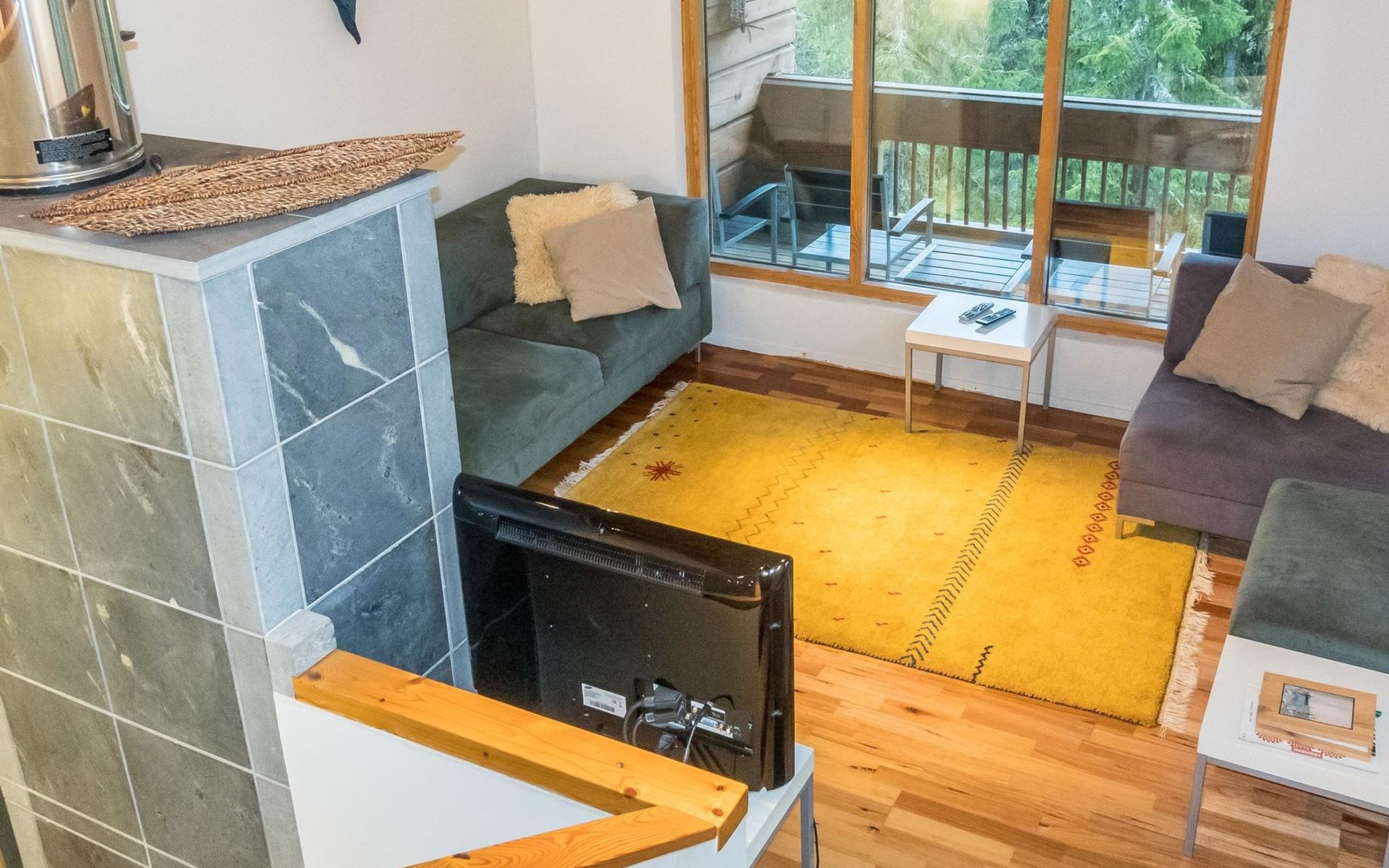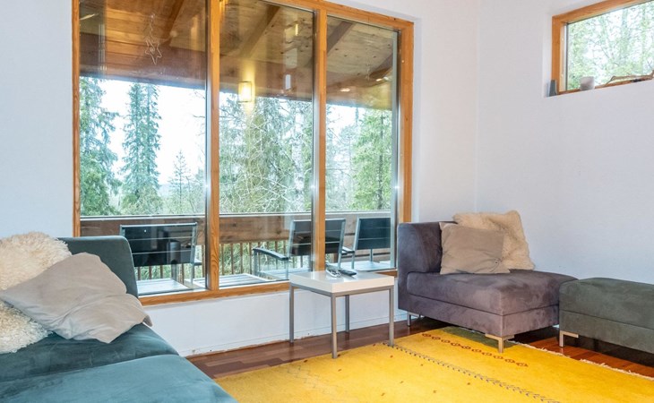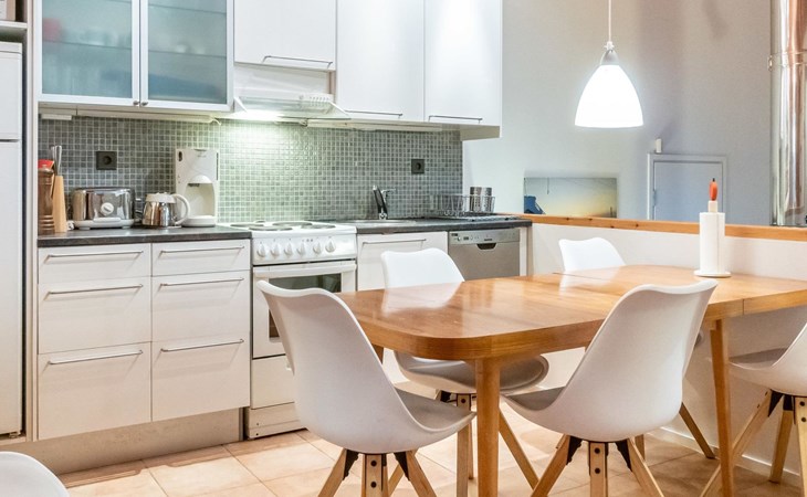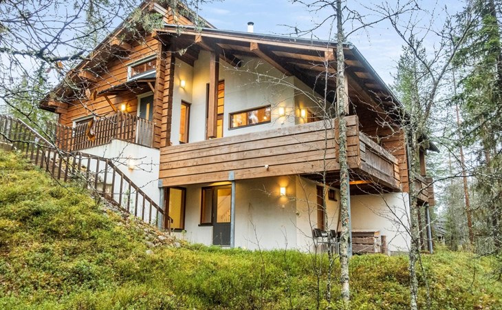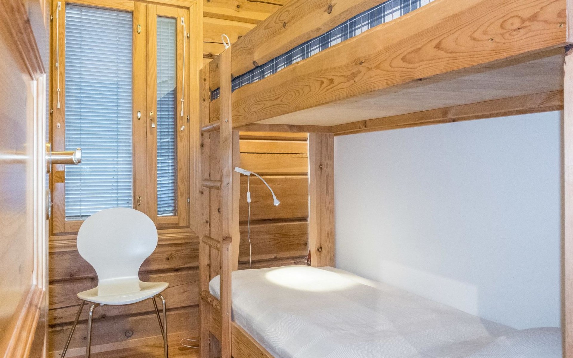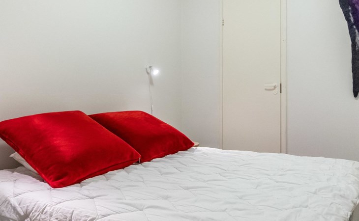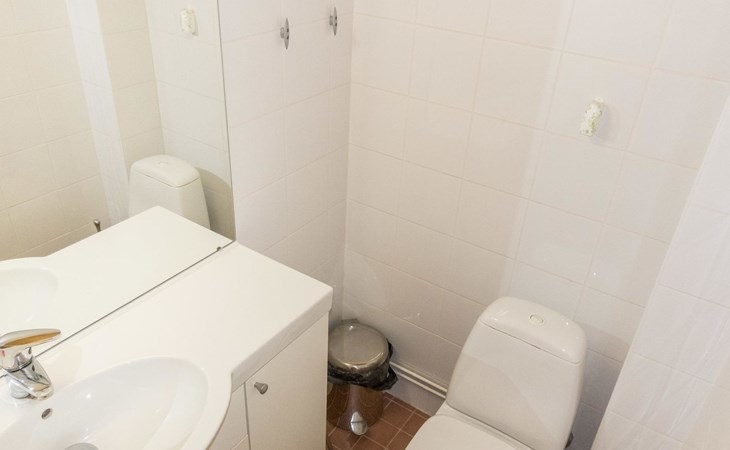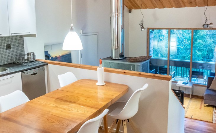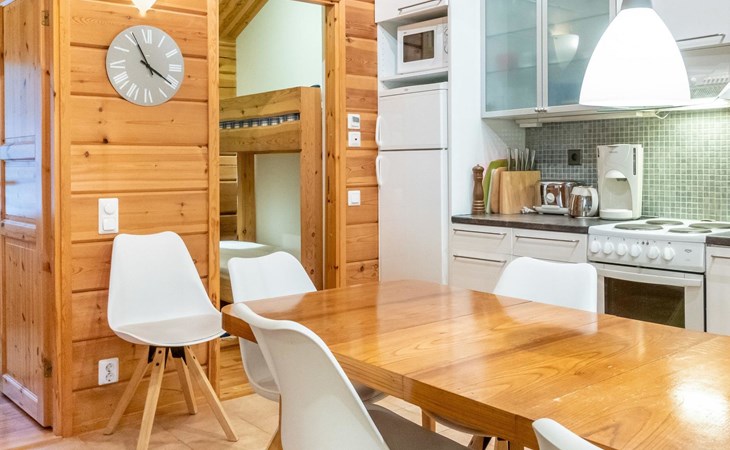 The semi-detached house is built in 2004. Facilities on two floors. On the upper floor (entrance floor), living room, kitchen, bedroom with 2 beds and another bedroom with bunk bed. Access to the loft from the upper floor, 2 bed chairs on the loft. Very steep ladder to the loft. Access to the terrace from the upper floor.