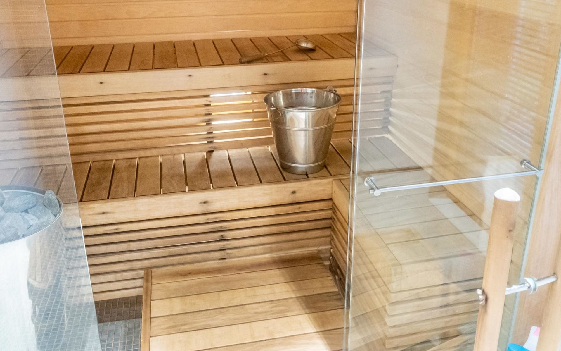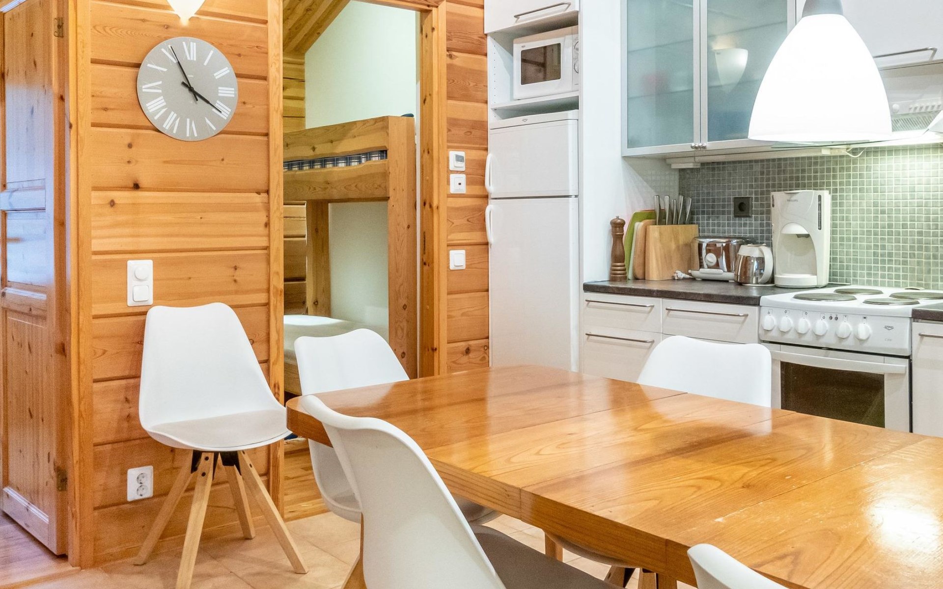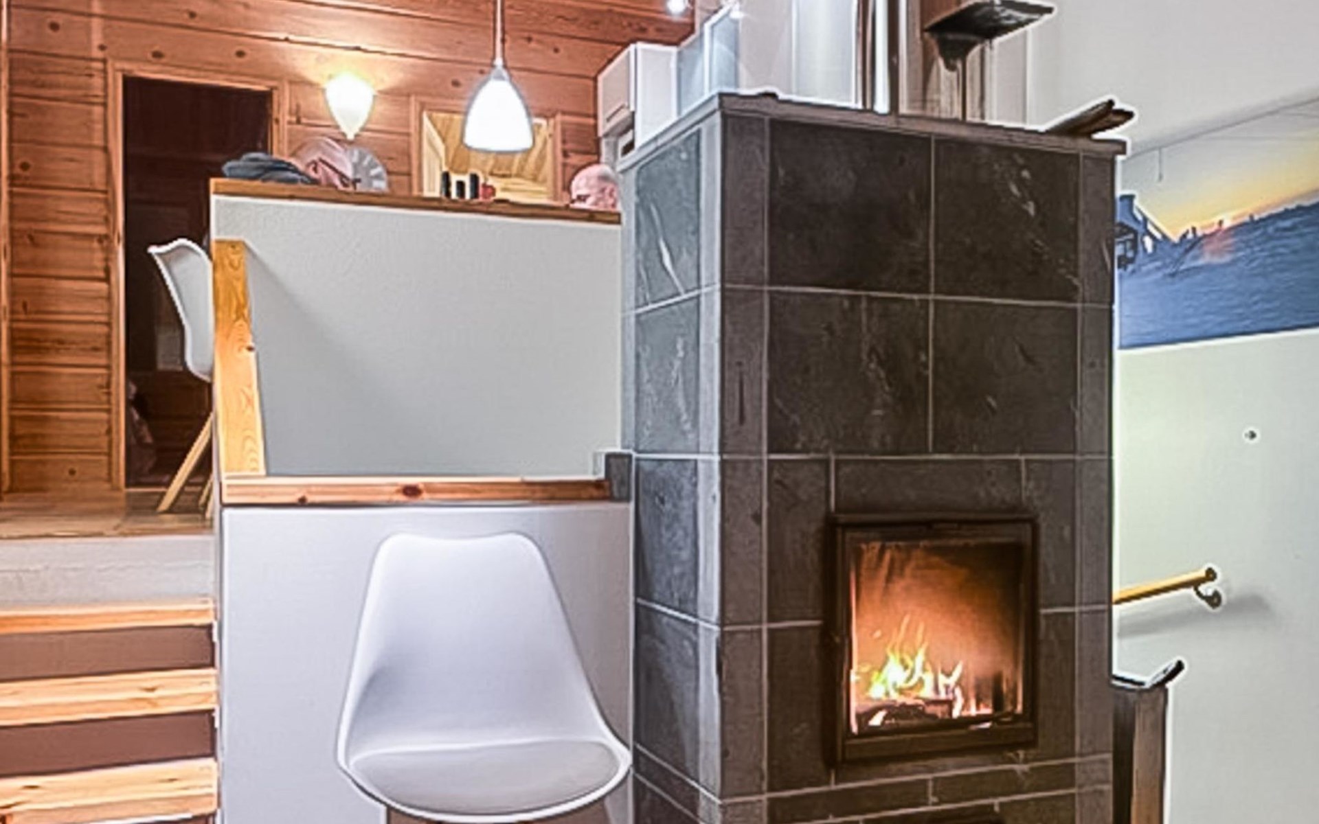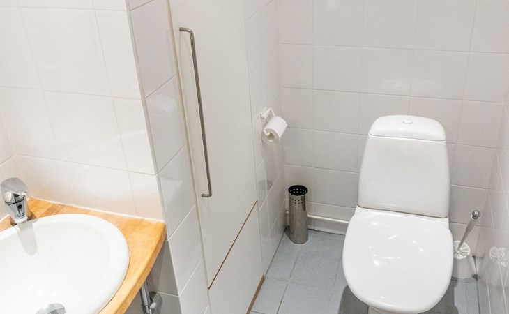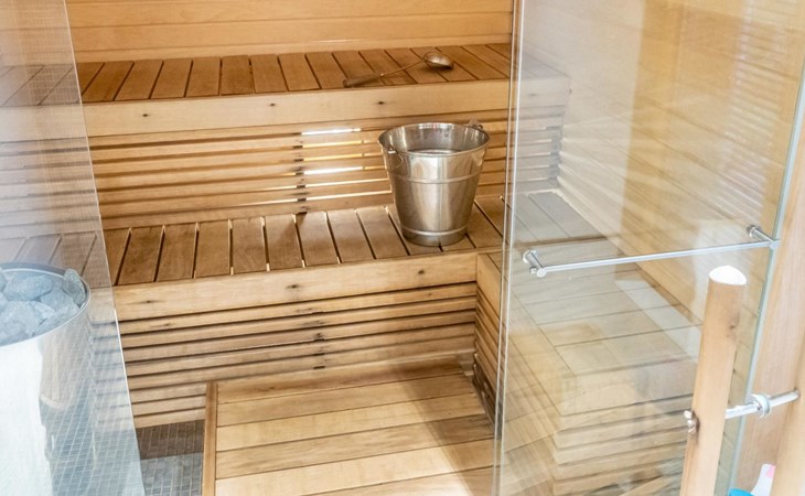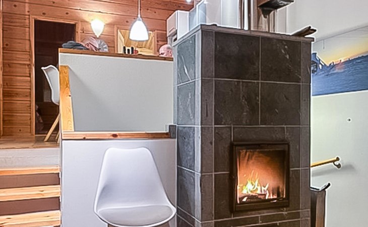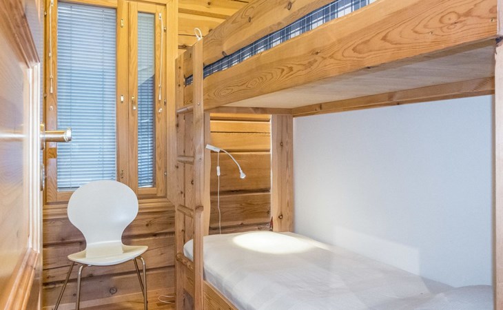 On the ground floor, bedroom with 2 beds, sauna, washroom, utility room and wardrobe. The apartment has two separate WCs, one on both floors.