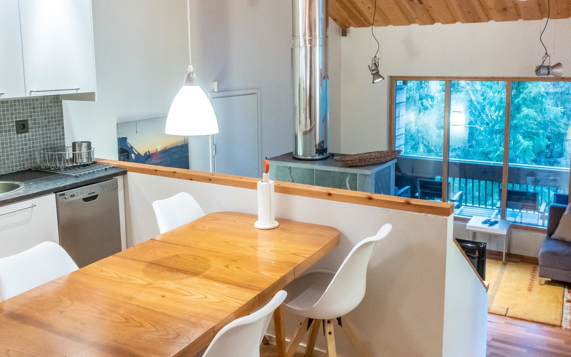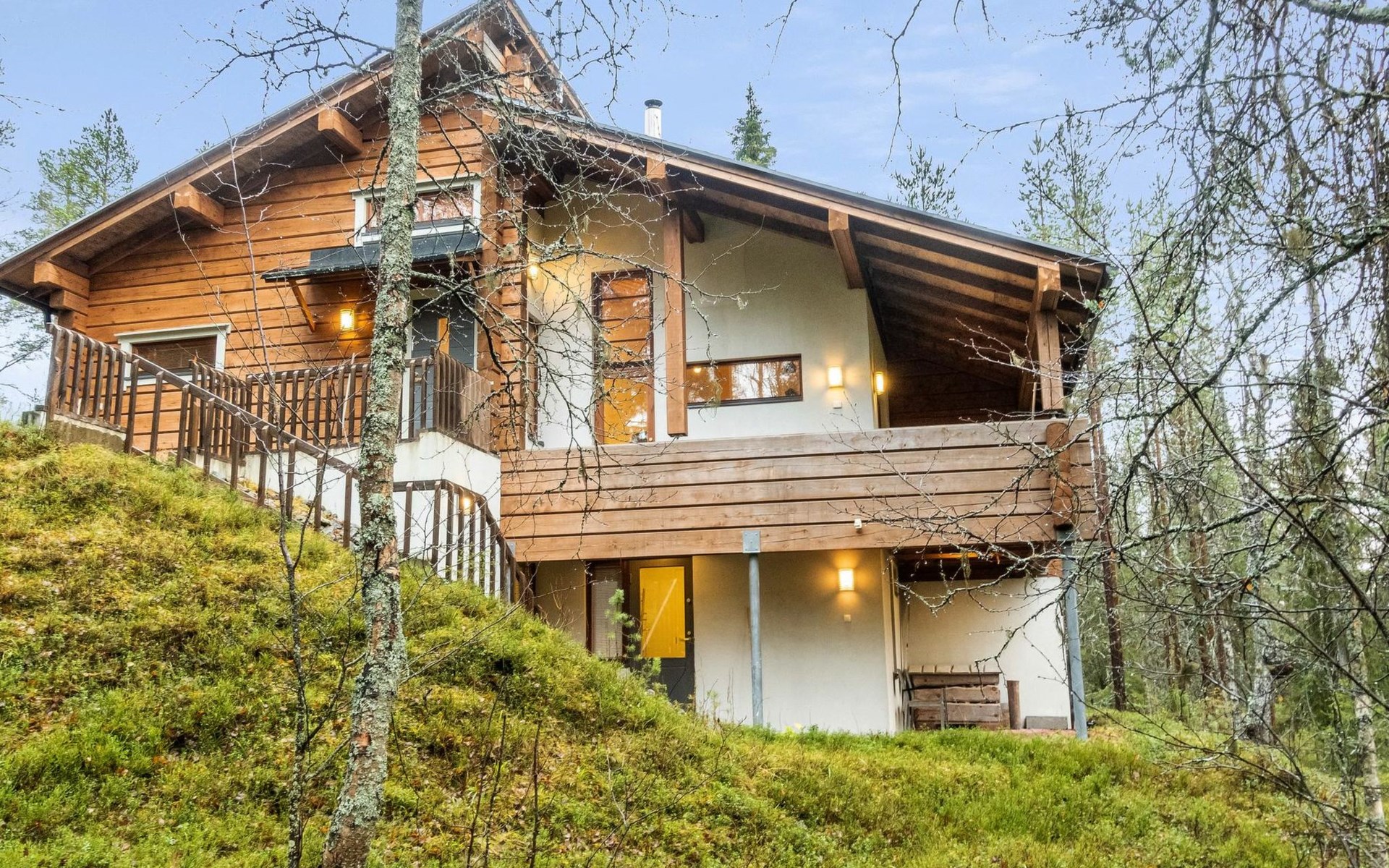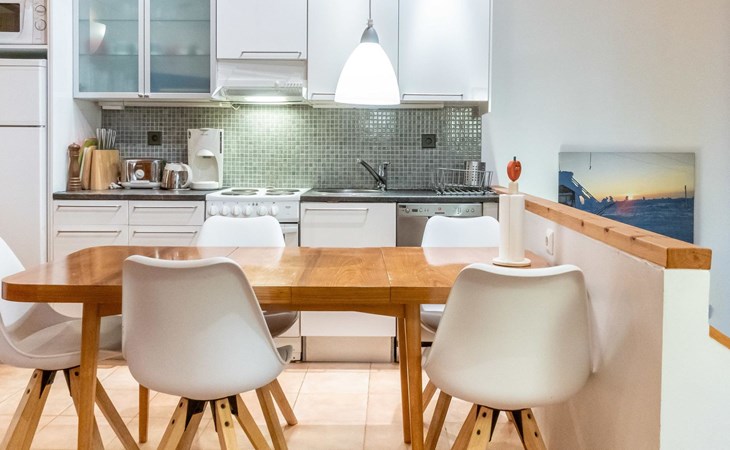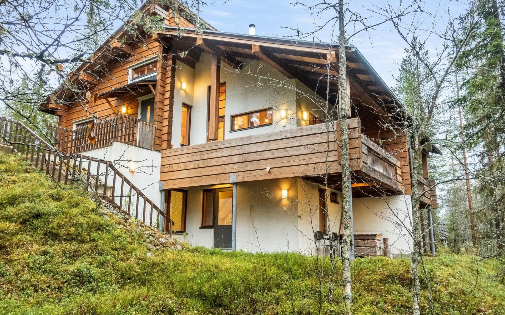 On the ground floor, bedroom with 2 beds, sauna, washroom, utility room and wardrobe. The apartment has two separate WCs, one on both floors.