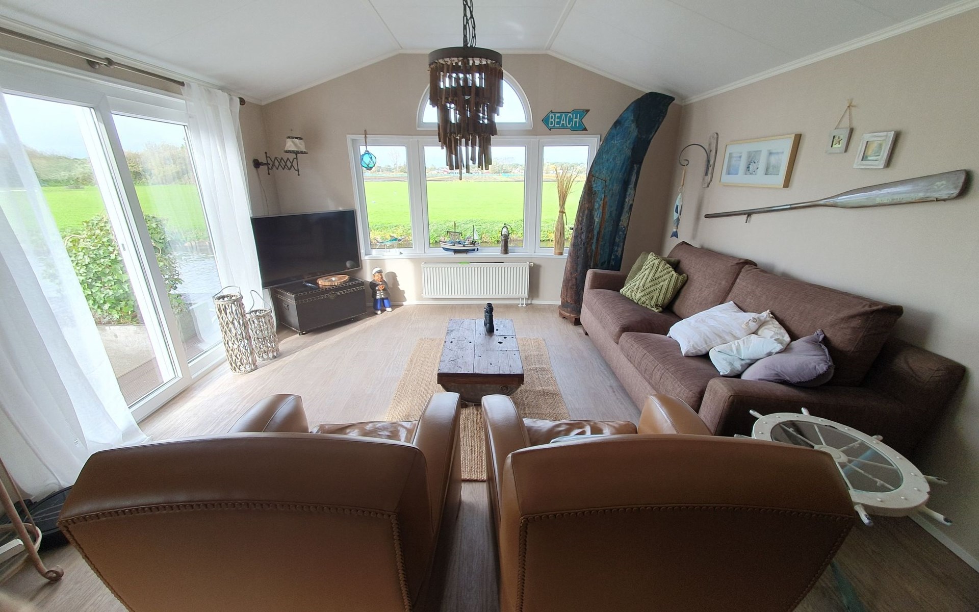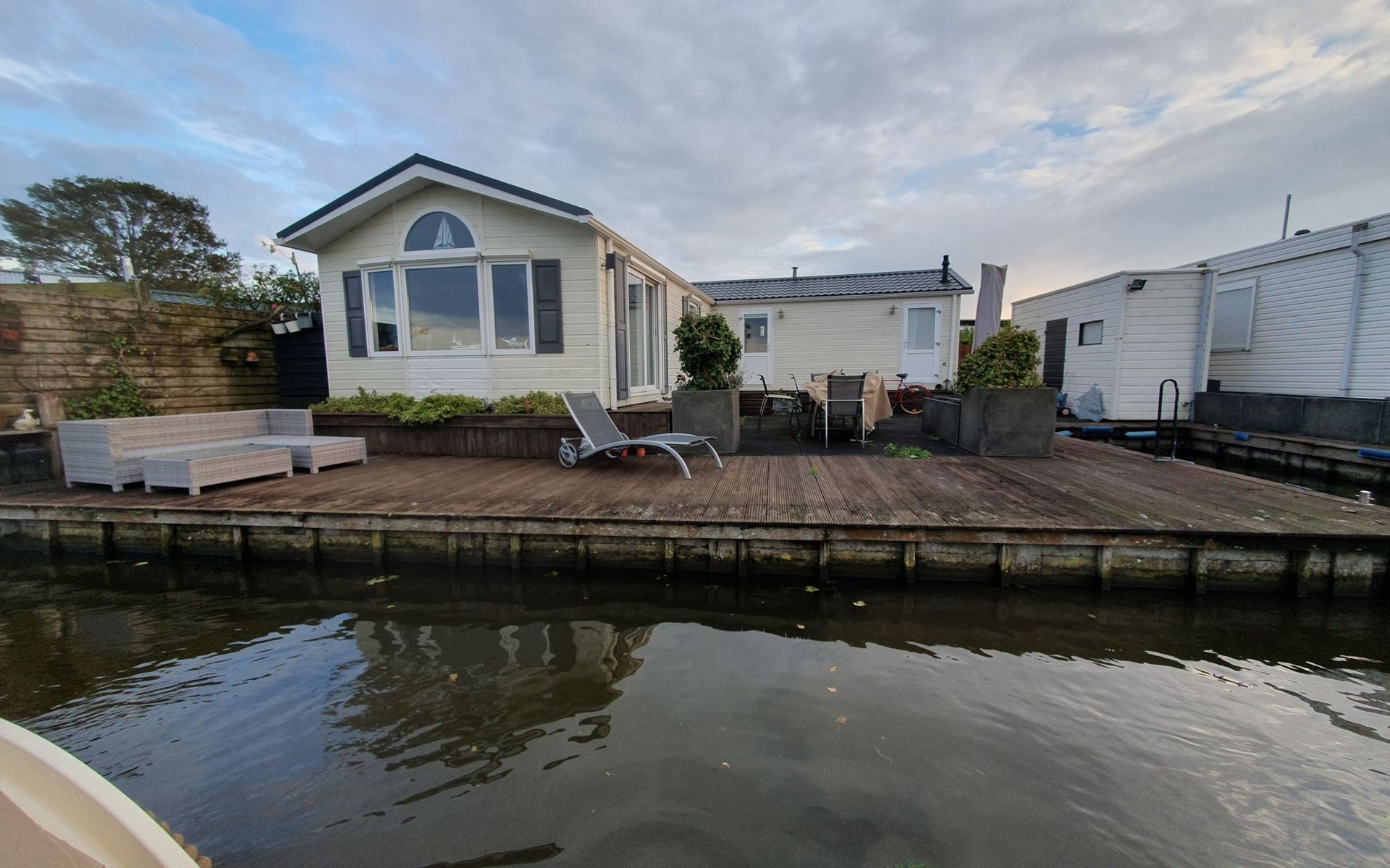 Our fine and exclusive holiday park is located on a small peninsula in Onderdijk, directly on a large lake, the Groote Vliet. The Vislust holiday park is therefore completely surrounded by water and can be reached on foot or by car via a small bridge. Whether for fishing, boating, swimming, kite surfing, sunbathing or long walks along the sea. The surroundings are simply made for it. There is a very friendly and respectful atmosphere between the only 70 houses on the island. You can expect pure relaxation and tranquillity in a beautiful natural setting, right on the Ijsselmeer.It is cosy and lovingly furnished with all the utensils you need for a relaxing holiday. Living room Beautiful large and bright living/dining area, cosy sofa and leather armchairs with a view of the canal. Dining table for 4 people. Access to the large wooden terrace Kitchen Fully equipped, open-plan fitted kitchen with gas hob, kitchen island, small electric oven, filter coffee machine and toaster Bathroom Daylight bathroom with heated towel rail and large shower. Separate WC The beds Bedroom 1: double bed 1.60 x 2.00 m with full-length mattress, chest of drawers, 2 bedside tables, large wardrobe.Bedroom 2: 2 single beds each 0.80 x 2.00 m, 2 narrow wardrobes Further equipment Hallway with wardrobeHooverInsect screens on all windowsGas heatingAir conditioningSatellite systemmusic systemThe terrace is located directly on the canal with a view of the lake and enjoys sunshine almost around the clock. Phenomenal sunsets can be expected in the evenings. There is a dining area for 6 people and a lounge for chilling out.The lake, the Groote Vliet with a bathing jetty, is only about 50 metres away on foot.Extra access for guests: - communal laundry room with washing machines & dryers (washing tokens can be purchased from the campsite management) Office hours: daily between 10 am and 6 pm! - small playground on the holiday island - communal bathing platform with a small sunbathing lawnThe neighbourhood: All holiday homes are located on the Vislust holiday island in Onderdijk. With its excellent transport links, the neighbourhood offers a mix of nature, beach, sea, leisure activities, night-time tranquillity and short distances to museums and sights. There is also plenty for your children to experience in the neighbourhood. The Ijsselmeer is only knee-deep near the beach, perfect for the little ones to splash around in. A large adventure playground is a 5-minute walk away and an indoor swimming pool is a 5-minute drive away. So nothing stands in the way of a perfect holiday for the whole family. You can enjoy the marvellous view over the Ijsselmeer from the dyke in just 5 minutes on foot. Your pet is very welcome here. The dog beach is also just a few minutes' walk away. The Ijsselmeer with various bathing beaches, a beach club, as well as shopping and leisure facilities (boats and bicycle hire) are also within walking distance. Whether for kite surfing, swimming, fishing, sailing, cycling, hiking or just to lie in the sun - golf & mini golf, everything is possible here. Would you prefer shopping, freshly baked fish, island hopping, a typical Dutch weekly market or a visit to a museum? The historic harbour towns of Hoorn (18 km), Enkhuizen (14 km) or Medemblik (3 km) are certainly worth a visit. Amsterdam is only about 60 km away and can be reached perfectly via Hoorn by Park & Ride public transport. The island of Texel can be reached by car and ferry in just over an hour, as can the beautiful North Sea beaches on the other side of the coast. We look forward to welcoming you soon. Your team from the Vislust holiday park.