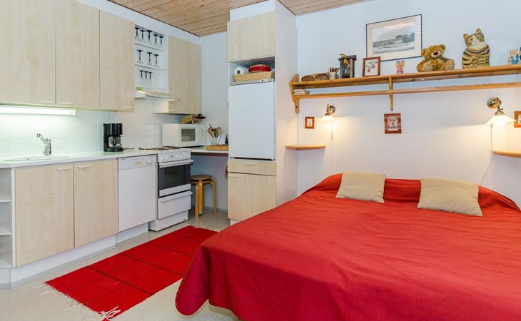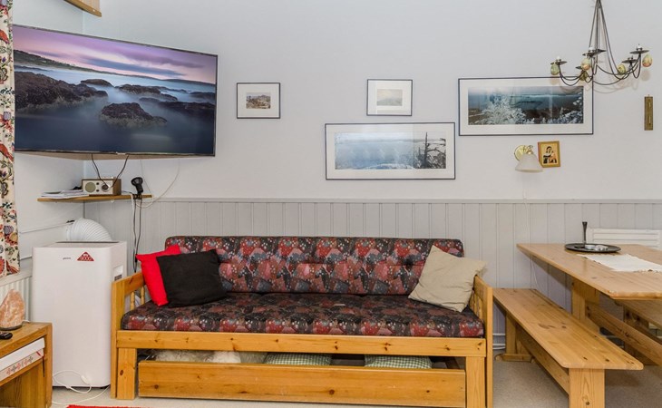 An electric car can be charged for 11 €/day from a normal 10 amp AC outlet on the outside wall of the apartment (power switch is in the storage of the apartment). Charging an electric car from the housing company's heating pole is prohibited. Cozy, small row house apartment in Loma-Koli cottage area. Distance to the common beach by pond Käränkälampi 180 m. The flat is situated near skiing tracks, distance to the illuminated track only 50 m. The flat is suitable for downhill and cross-country skiers; Ukko-Koli slopes 9 km. Reservations start at 16.00 and end at 12.00 ( also in weekend bookings). the Final cleaning will be added to the price during 27.12.-12.1 and Midsummer.