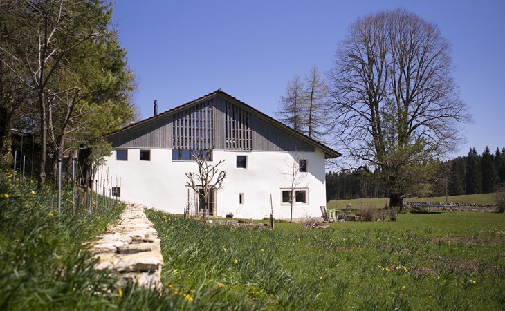 Meer informatie beschikbaar bij de aanbieder: No. 5 is an old farmhouse dating from 1690 with authentic charm and beautiful lighting. The vacation apartment has been tastefully renovated and is very comfortable, making it an ideal place to relax and recharge your batteries. It is the oldest house of the hamlet, set amid a serene and traffic free natural setting in Prédame, Chez Sémon, at the beginning of the Franches-Montagnes plateau. Located near an alley of centuries-old trees, it provides a perfect starting point for numerous walks and bike rides. The apartment has two master bedrooms and a dormitory-type room for 4 children (max. 8 persons), a large bathroom with bathtub, shower and toilet, as well as a separate toilet. Cots and high chairs are available. Tramhalte "Gäbelbach" 40.3 km, bushalte "Le Prédame" 0.5 km, treinstation "La Combe" 3.0 km, veerboot 9.1 km.