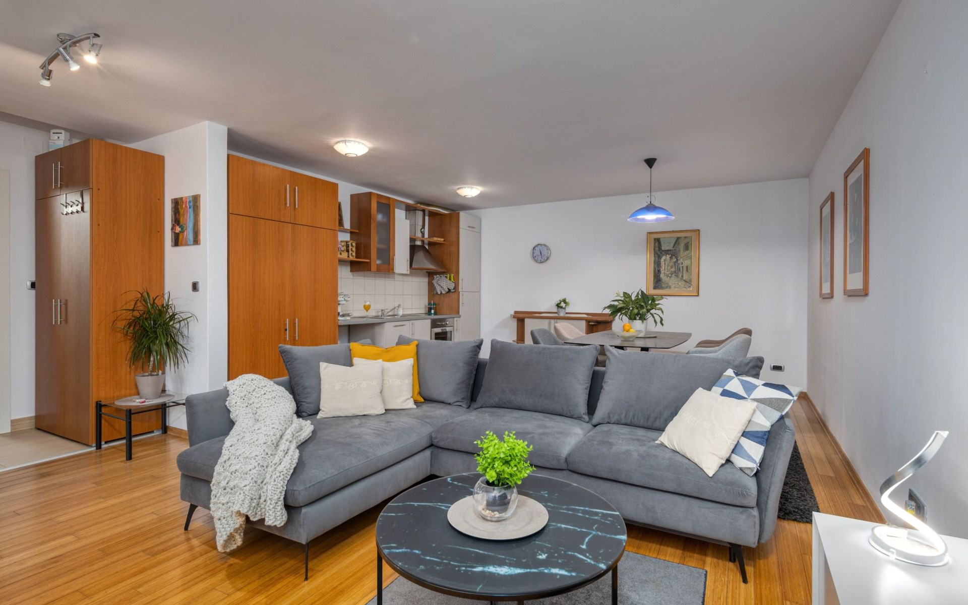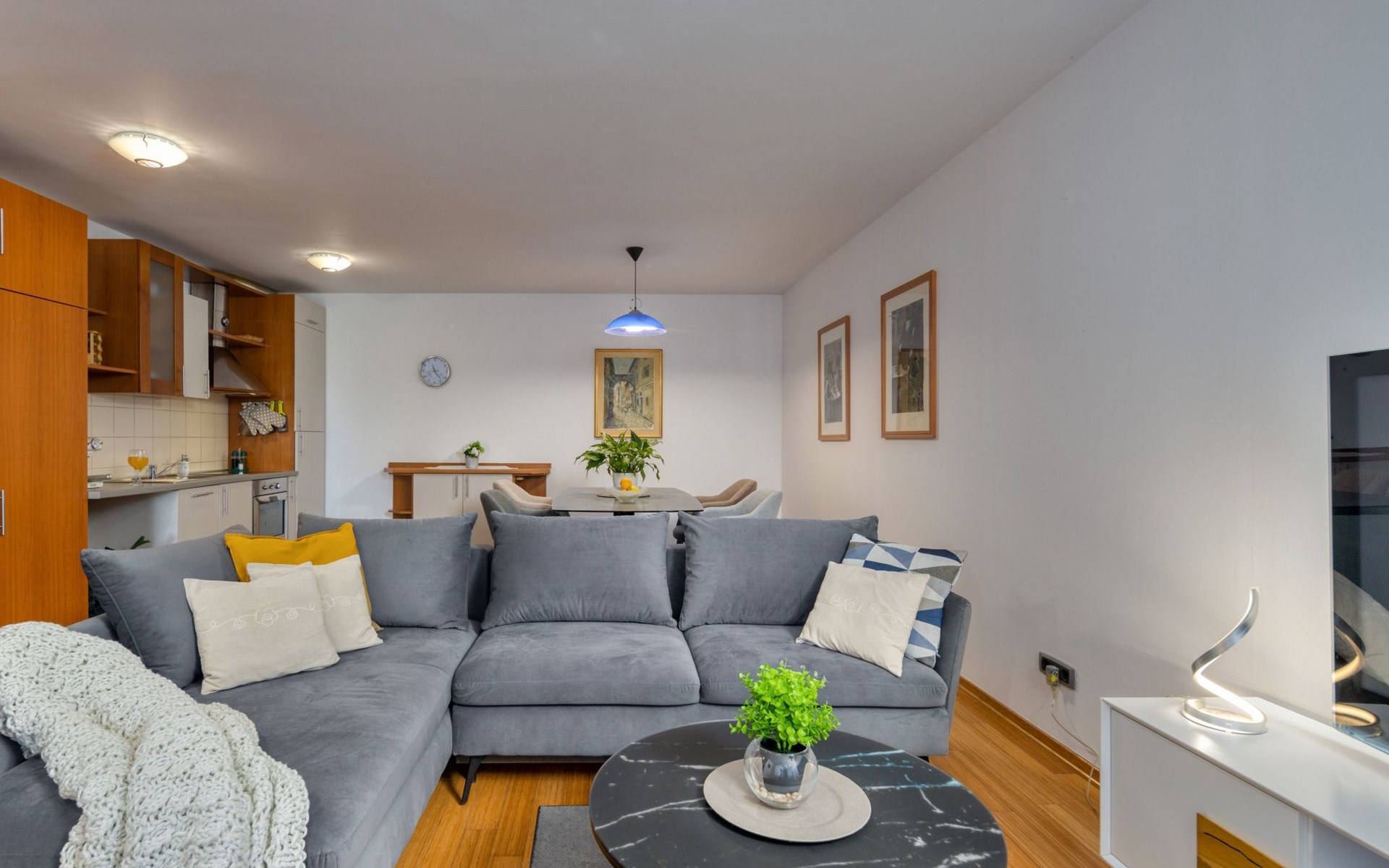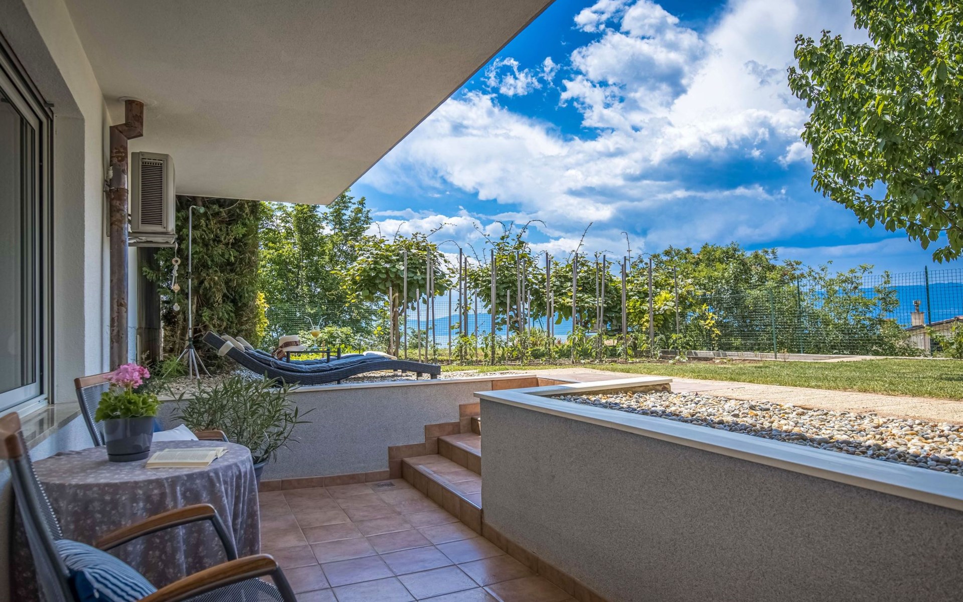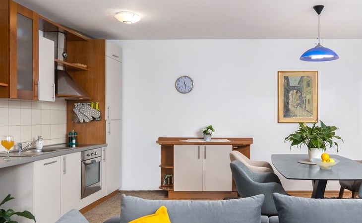 Terra Magica Deluxe Apartment Rijeka Čavle is located in the most beautiful part of Grobnik, in small village Hrastenica, with a beautiful view of the Kvarner Bay and the Opatija Riviera, near the city of Rijeka and Cavle, a place located between the sea and the mountains. Close to the Grobnik racetrack! Free Wi-Fi, air conditioning and parking space, and the possibility to enter the apartment on your own. The apartment is located in a family villa and is surrounded by a landscaped garden and fruit trees. In front of the apartment there is a terrace and a section with deck chairs for relaxation. Great location for a vacation in the silence of nature, and yet close to the city. Perfect for Digital Nomads and guests who want safety and isolation, and yet to be close to all sorts of attractions in our area (racetrack, sights, beaches, bars, restaurants, ski resorts, national parks, islands ...)Our apartment is 60 m2 located on the ground floor with a terrace of 12 m2 and is fully furnished with a full kitchen, large dining room and private bathroom. The apartment is equipped with dishwasher, washing machine/dryer, air conditioning, central heating in winter, Smart TV 55 '' with media player with a large selection of programs and content, safe ... Located near the Rijeka bypass and highway and entrepreneurial zones with different shops. Free, secured and private parking for two vehicles in front of the apartment.Whether you are staying for a short time in Rijeka or Grobnik-Čavle, on business or want to spend your vacation, we offer rental options that allow you to experience the city and its surroundings as a local resident. Suitable for couples or singles, friends, family, work or vacation. Possibility to accommodate up to four people with the possibility of an extra folding bed for one person or a child. There is also a baby cot. Here you will find peace and quiet.A few minutes from the apartment there is a bank, post office, doctor, pharmacy, shopping malls, cafes and restaurants. For sightseeing, we recommend a visit to the Risnjak National Parks and Plitvice Lakes. There are also the islands of Krk, Cres and Lošinj (20 km), Opatija (20 km), Istria and the Brijuni National Park. Although located in a quiet neighborhood, the location gives you the opportunity for a more active vacation. The nearest beaches, bars, restaurants and a diving center are only ten minutes away in Kostrena. Fans of speed can show their skills at the Grobnik racetrack, which is only 9 km away from the apartment. You can also see our area from the air with a parachute or kite at Grobnik Airport next to the race track. For winter visitors at an altitude of 1268m there is a unique ski resort Platak 20 km from the apartment. Cultural and historical sites are also nearby. You can walk along the Mlikarica road or to the castle in the town of Grobnik along the path that is only 10 minutes from the apartment or visit the Trsat castle (6 km), monuments and museums in Rijeka. The main promenade Korzo located in Rijeka, the ferry port, the boat, the bus and train station and the city market are only 7 km away.