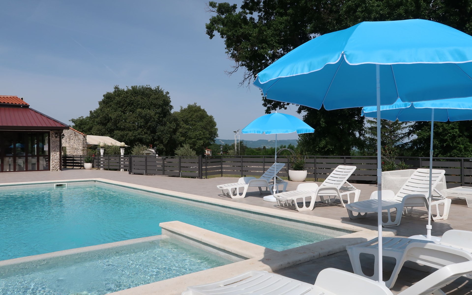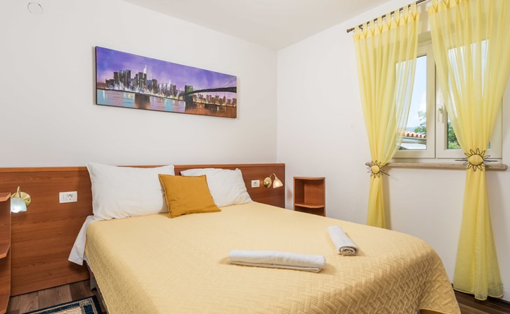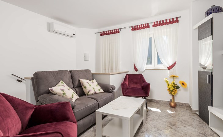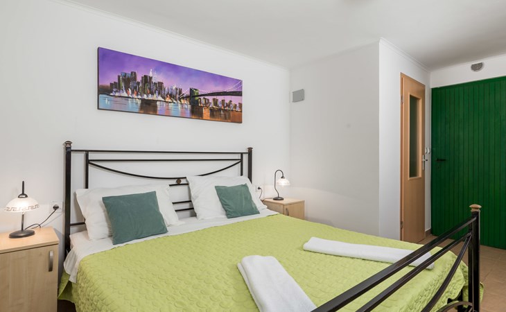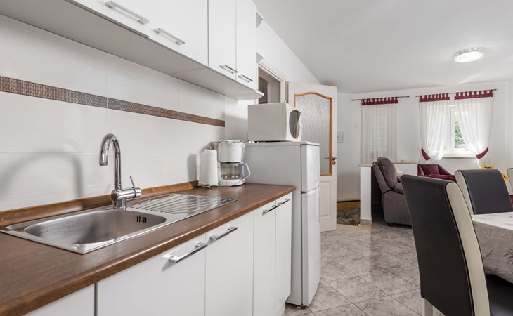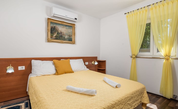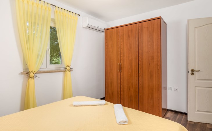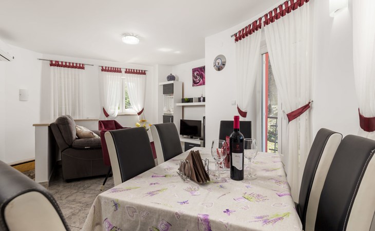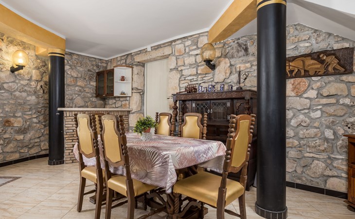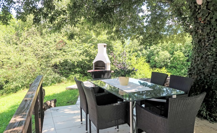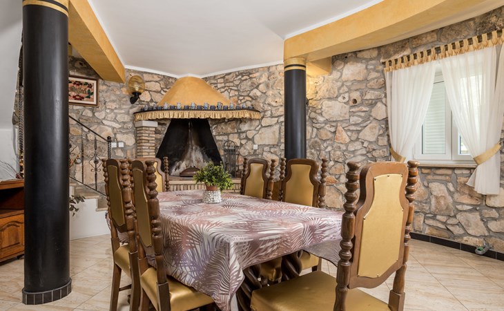 Landhuis, omgeven door bomen en weiden. 8 km van het centrum van Labin, 5 km van zee, aan een doodlopende weg. Voor medegebruik: terrein 6.000 m2 met bomen, weide, openluchtzwembad hoekig (12 x 5 m, 135 cm diepte, seizoensgebonden beschikbaarheid: 15.Mei. - 25.Sep.) met trap. Buitendouche, volleybalveld, prieel, terras, tuinmeubelen, barbecue, kinderspeelplaats (glijbaan, schommel). In het huis: internetaansluiting. Parkeerplaats op het terrein. Winkel 300 m, bushalte 2.9 km, kiezelstrand 5 km, rotsstrand 5 km. De eigenaar woont op hetzelfde terrein.
