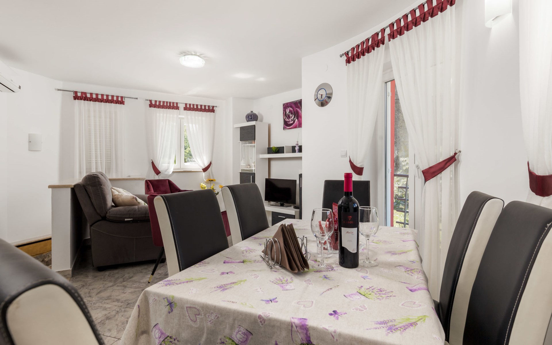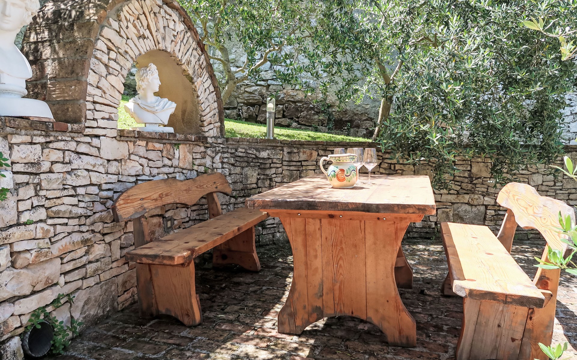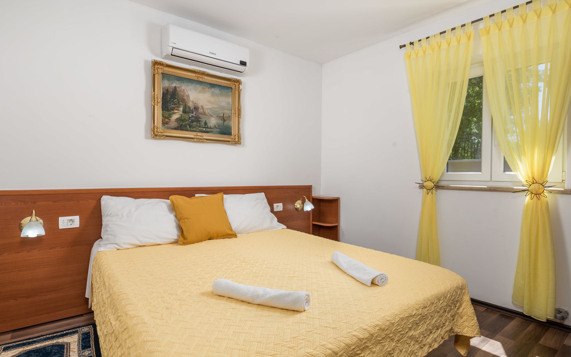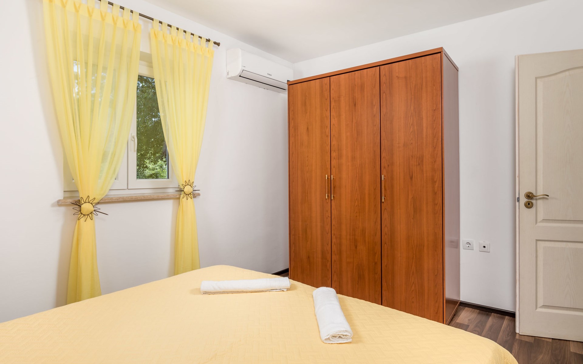 Landhuis, omgeven door bomen en weiden. 8 km van het centrum van Labin, 5 km van zee, aan een doodlopende weg. Voor medegebruik: terrein 6.000 m2 met bomen, weide, openluchtzwembad hoekig (12 x 5 m, 135 cm diepte, seizoensgebonden beschikbaarheid: 15.Mei. - 25.Sep.) met trap. Buitendouche, volleybalveld, prieel, terras, tuinmeubelen, barbecue, kinderspeelplaats (glijbaan, schommel). In het huis: internetaansluiting. Parkeerplaats op het terrein. Winkel 300 m, bushalte 2.9 km, kiezelstrand 5 km, rotsstrand 5 km. De eigenaar woont op hetzelfde terrein.