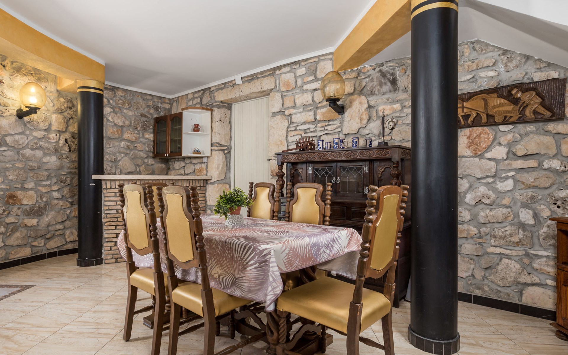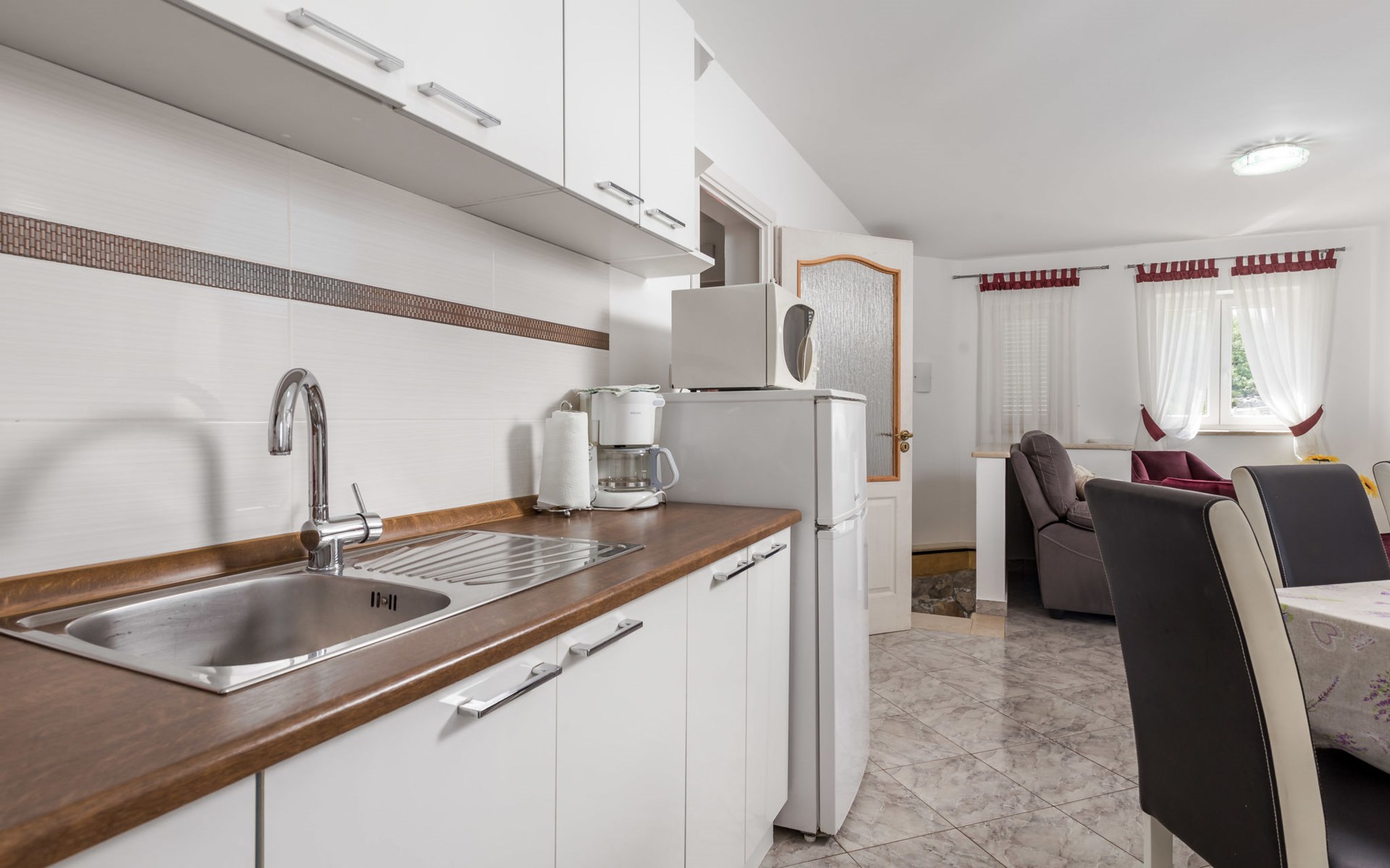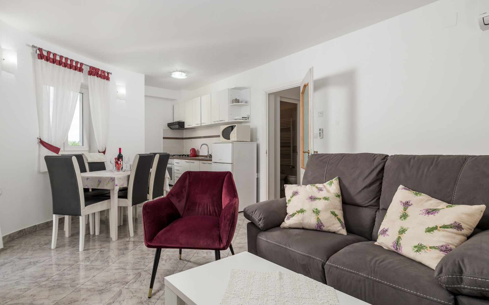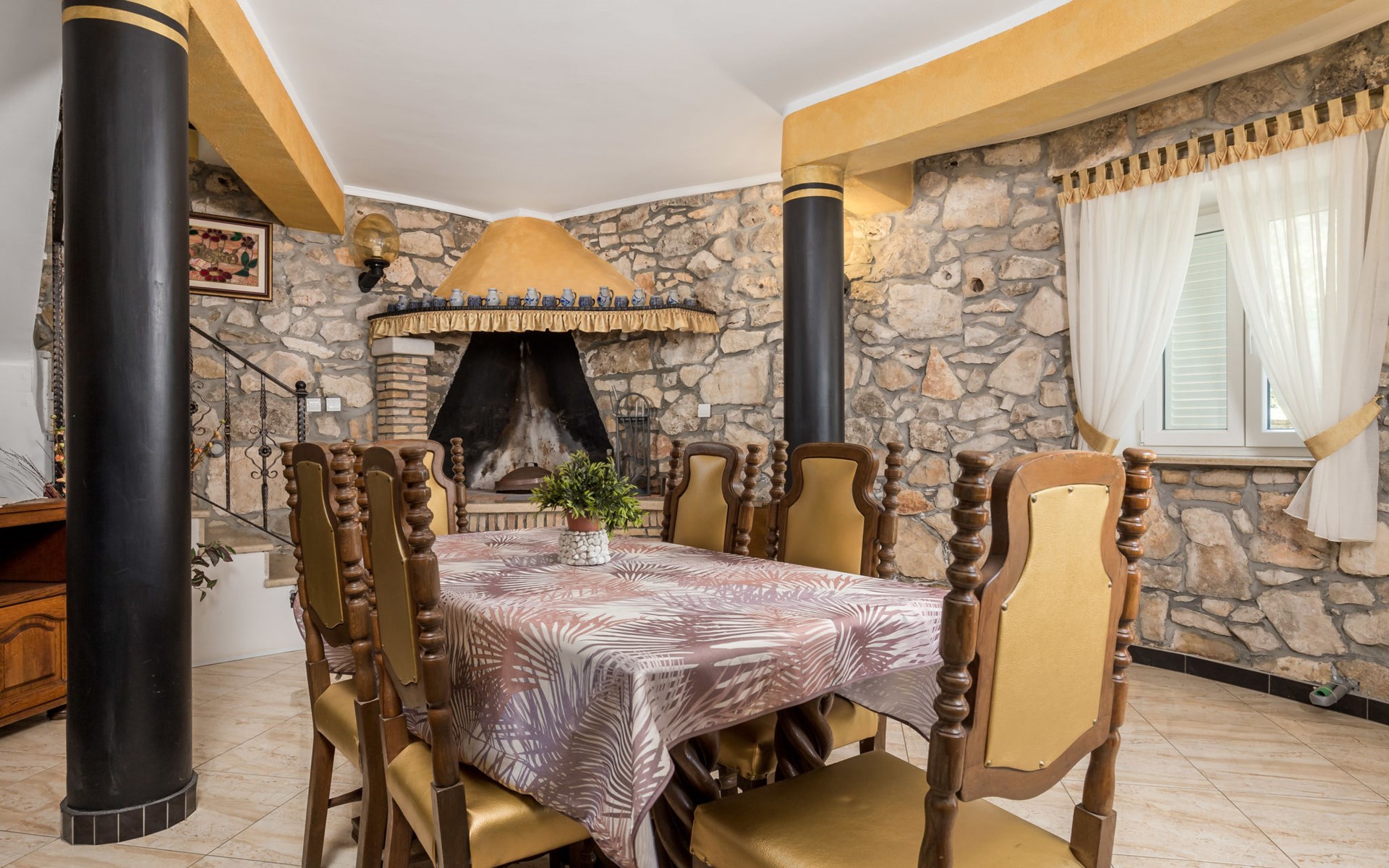 Landhuis, omgeven door bomen en weiden. 8 km van het centrum van Labin, 5 km van zee, aan een doodlopende weg. Voor medegebruik: terrein 6.000 m2 met bomen, weide, openluchtzwembad hoekig (12 x 5 m, 135 cm diepte, seizoensgebonden beschikbaarheid: 15.Mei. - 25.Sep.) met trap. Buitendouche, volleybalveld, prieel, terras, tuinmeubelen, barbecue, kinderspeelplaats (glijbaan, schommel). In het huis: internetaansluiting. Parkeerplaats op het terrein. Winkel 300 m, bushalte 2.9 km, kiezelstrand 5 km, rotsstrand 5 km. De eigenaar woont op hetzelfde terrein.