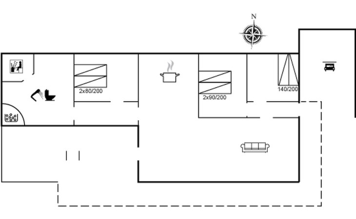 Eengezinswoning, bouwjaar 1971. 200 m van zee. Voor alleengebruik: terrein 2.500 m2. Buitendouche, terras (30 m2), barbecue, kinderspeelplaats (glijbaan, schommel). In het huis: sauna, wasmachine, droger. Parkeerplaats bij het huis. Carport. Levensmiddelenwinkel 3 km. De eigenaar accepteert geen jeugdgroepen.
