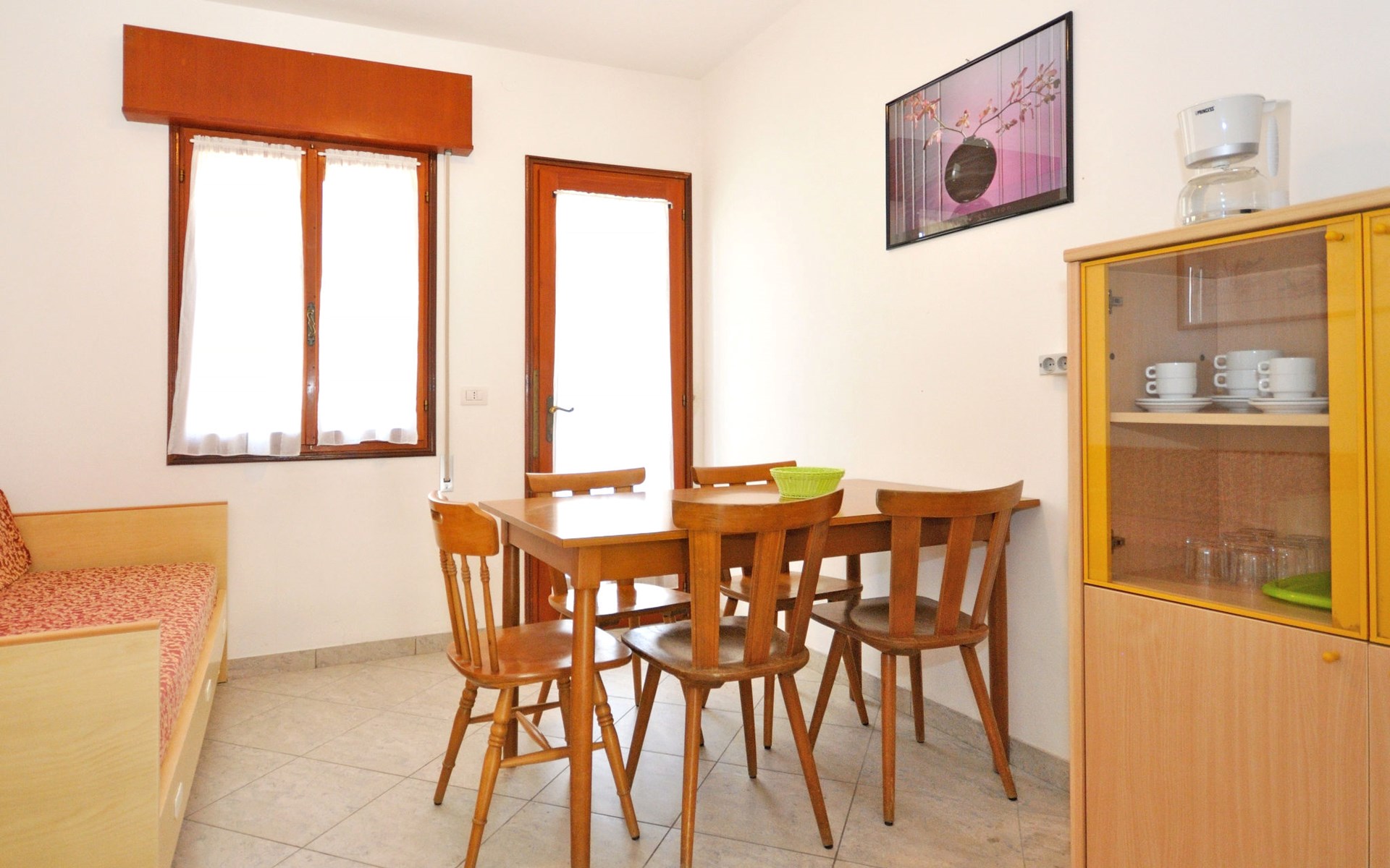 Klein vakantiecomplex "Villaggio Delfino". In de wijk Lido del Sole, 100 m van het centrum van Bibione-Lido del Sole, 13 km van het centrum van Lignano, 100 km van het centrum van Venezia, 350 m van zee. Voor medegebruik: terrein (omheind) met planten en bomen. Winkel 100 m, restaurant 250 m, bushalte 150 m, treinstation "Latisana (Milano-Venezia-Triest)" 21 km, zandstrand 350 m. Golfterrein (18 holes) 10 km. Attracties in de buurt: Oasi Naturalistica Val Grande - Bibione. De afgebeelde foto is slechts een voorbeeld.
