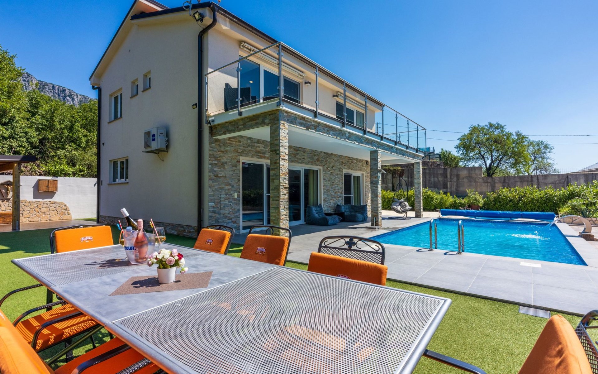 This beautiful 5* villa is situated in a quiet location in beautiful surroundings with lots of greenery in the hinterland of Crikvenica and Novi Vinodolski. Our beaches are only a few minutes away by car.Our house has great things especially for families with children. A children's playground, indoor and outdoor games and a volleyball net for the pool!The pool can be heated on request, making it ideal for all weather conditions.Ideal for switching off and yet only a few minutes by car from the beach. We can also give you the best restaurant recommendations and all the information you need about what to do.There are various beaches in the area to choose from, both sandy and pebbly. Someone will be at the house to hand over the keys, take you on a tour and explain everything to you.Short descriptionOther : Non smoking houseBrief description 1Number of kitchens : 1Other rooms : StoreroomBedroom 1Other bedroom furnishings : The single beds are suitable for children and can be folded up, if you need a cot we also have a foldable one.SurroundingsRental facilities : Boat hireSports facilities in the area: fishing, basketball, mountaineering, golf course, canoeing, climbing, mountain biking, paragliding, cycling, rowing, sailing, sports centre, diving, tennis, water skiingSurroundings 1Excursion possibilities : KrkCresRijeka-TrsatLocation description : Bribir is a beautiful place behind Crikvenica and Novi Vinodolski, close to the beach and yet quietly situated with lots of greenery and a beautiful landscape with a mix of sea and mountain air.Other sports and leisure facilities: Children's playground in the garden, volleyball net for the pool with rubber ball, card games in the house.Garden and outdoor facilitiesLeisure facilities at the property : Outdoor pool for private use, Playground, Swimming poolGarden equipment : Garden furniture available, Barbecue, Playground equipmentServices providedServices (fees may apply) : Housekeeping staffServices 1Miscellaneous : -Heated pool on request-Boat hire for an extra charge and if you have a boat licence-Outdoor Jacuzzi-Grill area covered with outdoor kitchenOutside: Balcony; Garden available; Garden furniture; Barbecue; Parking available; Private pool; Private car park; Playground; Terrace; JacuzziGeneral: alarm system; Bathrooms: 4; Floor: 1; Plot size: 1200 m²; Year of renovation: 2017; Bedrooms;Living: CD; King-size bed; Radio; Stereo; TV;Bath/WC: shower; hairdryer; toilet;Cooking: Oven; electric cooker; espresso machine; freezer compartment; hob; coffee machine; fridge; microwave; dishwasher; freezer; toaster; kettle;Other: Angler friendly; Mountain view; Mountainous surroundings; Heating; Internet; Cot/baby bed; Air conditioning; Non-smoking property; Games console; Vacuum cleaner; Tumble dryer;Brief descriptionMiscellaneous : Non-smoking houseSurroundingsSports facilities in the neighbourhood : fishing, golf course, tennisGarden and outdoor facilitiesLeisure facilities at the property : Playground, Swimming poolGarden facilities : Garden furniture available, BarbecueServices availableServices (may be subject to a charge) : Housekeeping staff