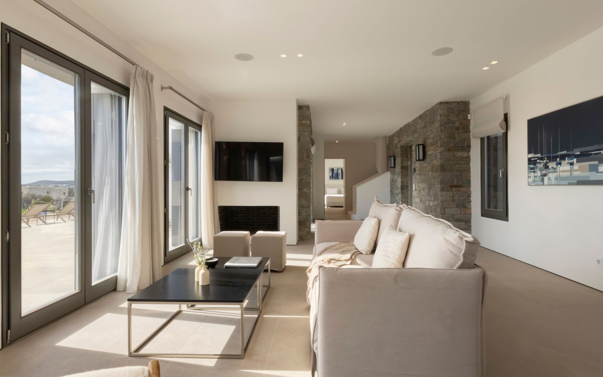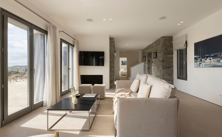 Welcome to the Blue Serenity Villa I, your gateway to unparalleled luxury on the dreamy island of Paros, nestled in the Cyclades, Greece. This exceptional villa, part of a complex of two luxury villas, is ideally situated just 100 meters from the pristine white sands and enchanting green-blue waters of Santa Maria beach. Here, guests are invited to rest, recharge, and immerse themselves in the breathtaking beauty that surrounds them, experiencing the perfect blend of luxury and natural beauty.Inside, the villa boasts 5 luxury double bedrooms, with 3 featuring en-suite bathrooms, while the remaining 2 share a sumptuous bathroom, comfortably accommodating up to 10 guests. For larger gatherings, both Blue Serenity Villa I and II offer a combined capacity for up to 20 guests, with 10 guestrooms between them, presenting a unique option for larger parties seeking an interconnected yet private experience. The interior is divided into three distinct areas, including an inviting ground floor that connects seamlessly with the outdoor through large windows, a cozy first-floor en-suite double bedroom via a private staircase, and a basement equipped with a comfort play room, a service room with an en-suite bathroom, and a laundry room.The villa’s exterior is just as remarkable. A stunning infinity pool commands attention, merging with the horizon to create an endless view. The private veranda, accessible through the expansive windows on the ground floor, offers a tranquil space with captivating views, perfect for relaxation or social gatherings. Additionally, every villa in the complex, including Blue Serenity Villa I, features its own private infinity pool, allowing for intimate late-night dips under the stars.The surrounding area of Santa Maria beach enhances the villa's allure. Guests need only take a short stroll to immerse themselves in the soft, white sands and crystal-clear waters. The frequent cleaning service and towel changes ensure a comfortable and hassle-free stay, allowing guests to fully focus on exploring the natural wonders and luxuries the villa and its surroundings offer.At Blue Serenity Villa I, every moment is an opportunity for bliss. Whether it’s through a late-night swim in your private infinity pool, enjoying exotic fruit champagne mimosas on the balcony, or delighting in the serene ambiance of the nearby beach, your stay promises an unmatched experience. Discover the joy of seamless luxury merged with the beauty of Paros at Blue Serenity Villa I. 00003187369