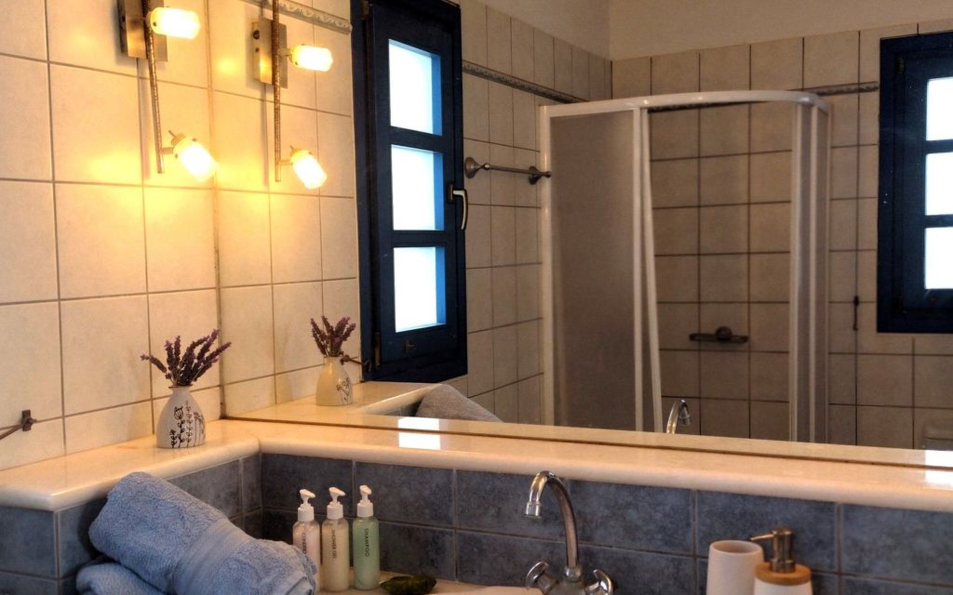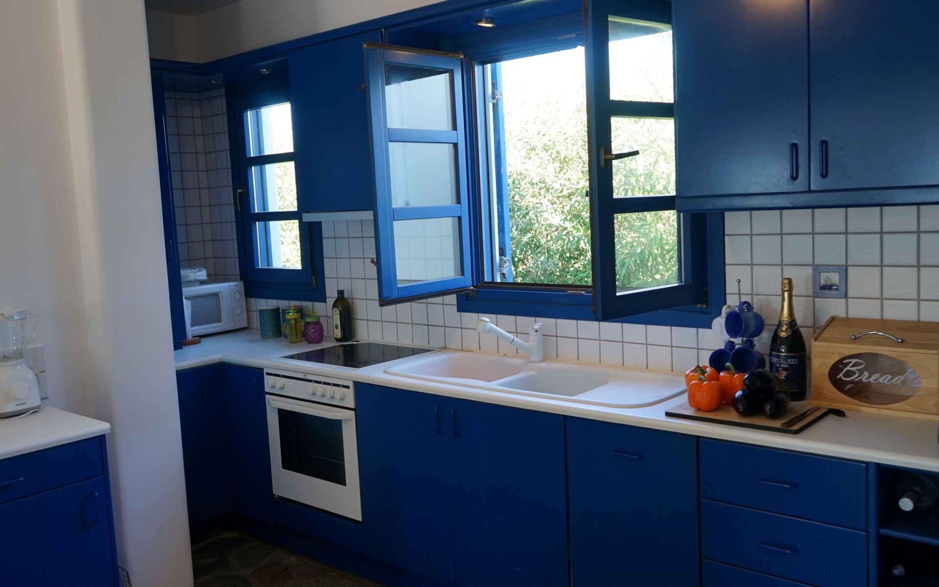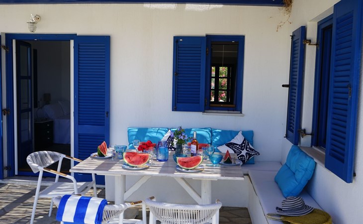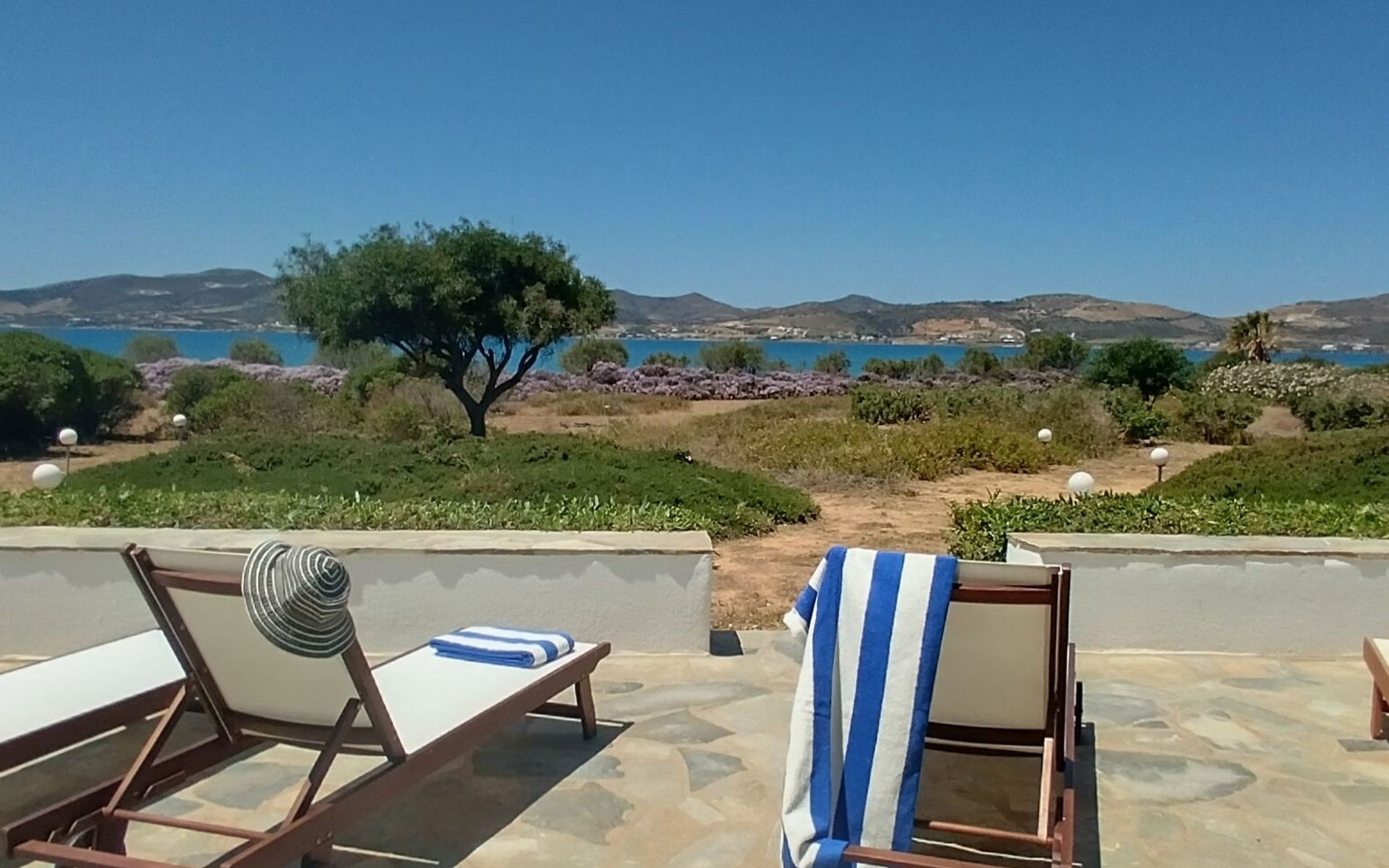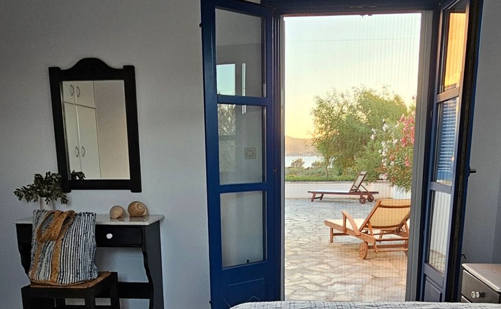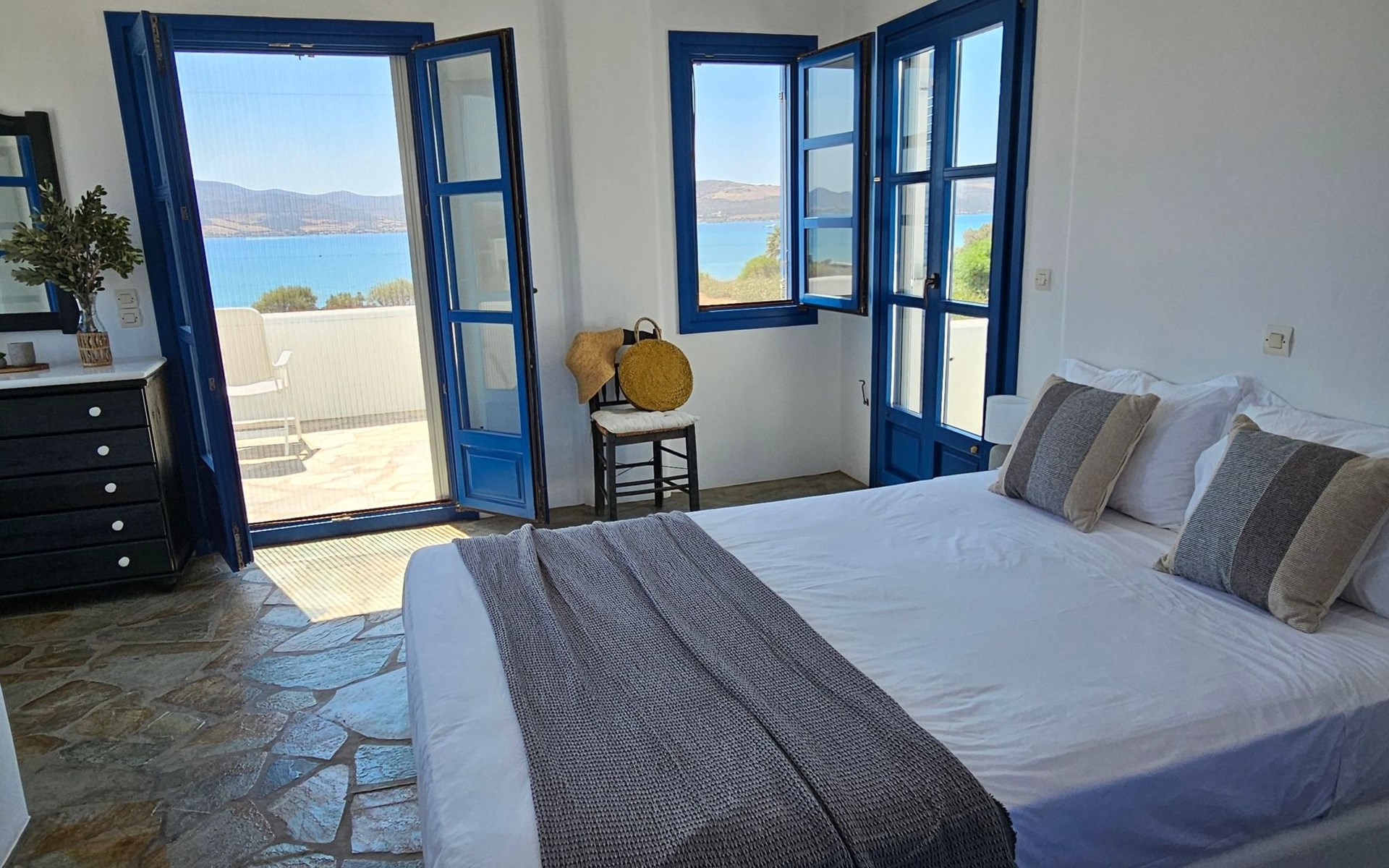 Kampos is een klein dorp op het zuidwesten van Paros, het huis is gelegen aan de kust deel van het dorp, dat is een woonwijk gekenmerkt door grote Cycladische huizen met tuinen en olijfbomen rond. Een klein lokaal strand ligt op slechts 180 m van de villa met enkele tamarisken voor schaduw en kristalhelder water. Het is er nooit te woelig omdat dit het kanaal is tussen Paros en Antiparos waar het water ondiep en kalm is. De kleine kapel van Agios Nikolaos aan de kust ligt op nog eens 7-8 minuten lopen en een kleine baai met vissersboten ligt op 800 m van het huis en kan worden gebruikt om een boot aan te leggen als je er een wilt huren. Het dorp Kambos wordt gekenmerkt door kleine traditionele huizen die met elkaar verbonden zijn door kronkelende straatjes, tuinen en graanvelden rondom. Er is een dorpswinkel, een soort "verkoopt alles" ("pantopolio" in het Grieks) op slechts 1300 m van het huis, dit is het centrum van het dorp. Alyki is een populair dorp met uitstekende tavernes, geweldige stranden, supermarkten, een uitstekende bakker en enkele andere winkels op slechts 5 minuten rijden of een korte fietstocht. Parikia, de hoofdstad van Paros met zijn oude agora, het archeologisch museum en nog veel meer, bereik je in ongeveer 15 minuten met de auto of je kunt de bus nemen, die er ongeveer een half uur over doet. Naoussa, de feesthoofdstad van het eiland, en zijn chique boetiekjes zijn ook gemakkelijk te bereiken, de rit duurt slechts een half uur.