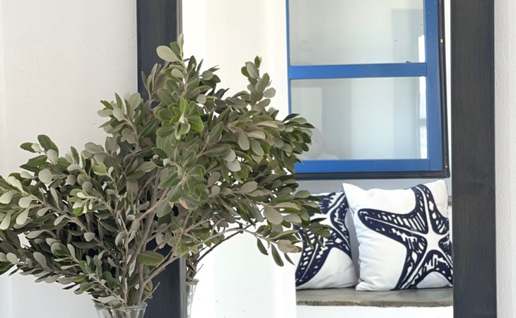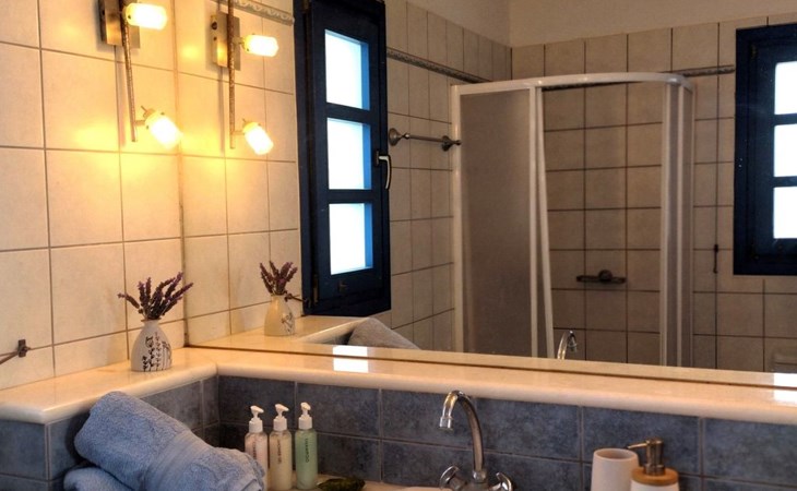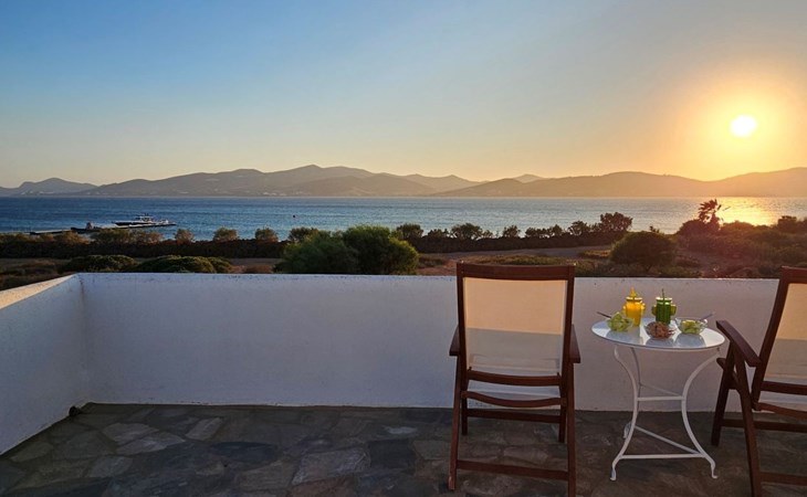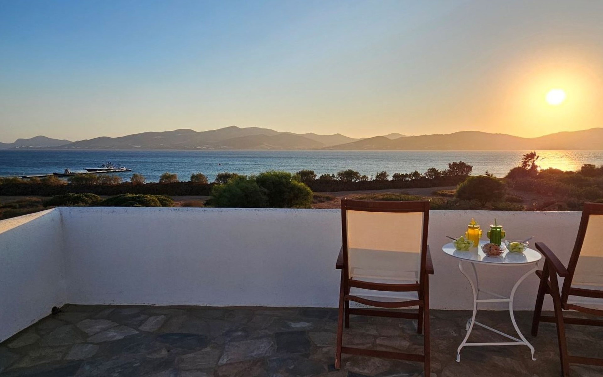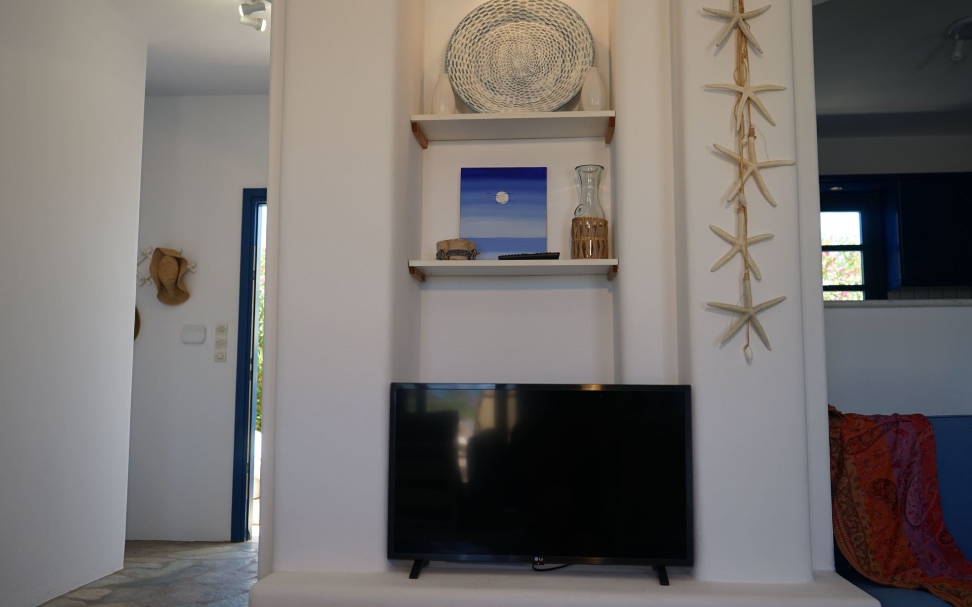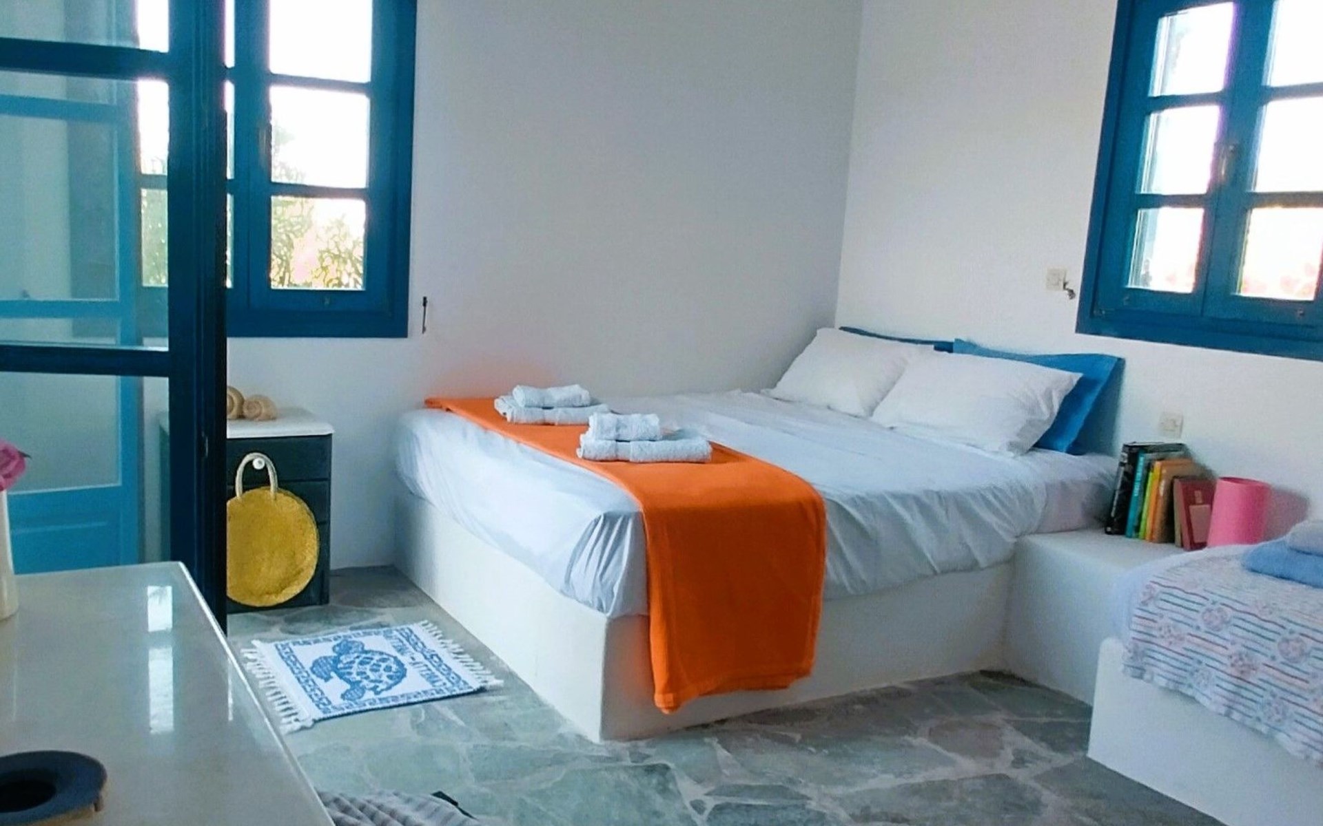 Kampos is een klein dorp op het zuidwesten van Paros, het huis is gelegen aan de kust deel van het dorp, dat is een woonwijk gekenmerkt door grote Cycladische huizen met tuinen en olijfbomen rond. Een klein lokaal strand ligt op slechts 180 m van de villa met enkele tamarisken voor schaduw en kristalhelder water. Het is er nooit te woelig omdat dit het kanaal is tussen Paros en Antiparos waar het water ondiep en kalm is. De kleine kapel van Agios Nikolaos aan de kust ligt op nog eens 7-8 minuten lopen en een kleine baai met vissersboten ligt op 800 m van het huis en kan worden gebruikt om een boot aan te leggen als je er een wilt huren. Het dorp Kambos wordt gekenmerkt door kleine traditionele huizen die met elkaar verbonden zijn door kronkelende straatjes, tuinen en graanvelden rondom. Er is een dorpswinkel, een soort "verkoopt alles" ("pantopolio" in het Grieks) op slechts 1300 m van het huis, dit is het centrum van het dorp. Alyki is een populair dorp met uitstekende tavernes, geweldige stranden, supermarkten, een uitstekende bakker en enkele andere winkels op slechts 5 minuten rijden of een korte fietstocht. Parikia, de hoofdstad van Paros met zijn oude agora, het archeologisch museum en nog veel meer, bereik je in ongeveer 15 minuten met de auto of je kunt de bus nemen, die er ongeveer een half uur over doet. Naoussa, de feesthoofdstad van het eiland, en zijn chique boetiekjes zijn ook gemakkelijk te bereiken, de rit duurt slechts een half uur.