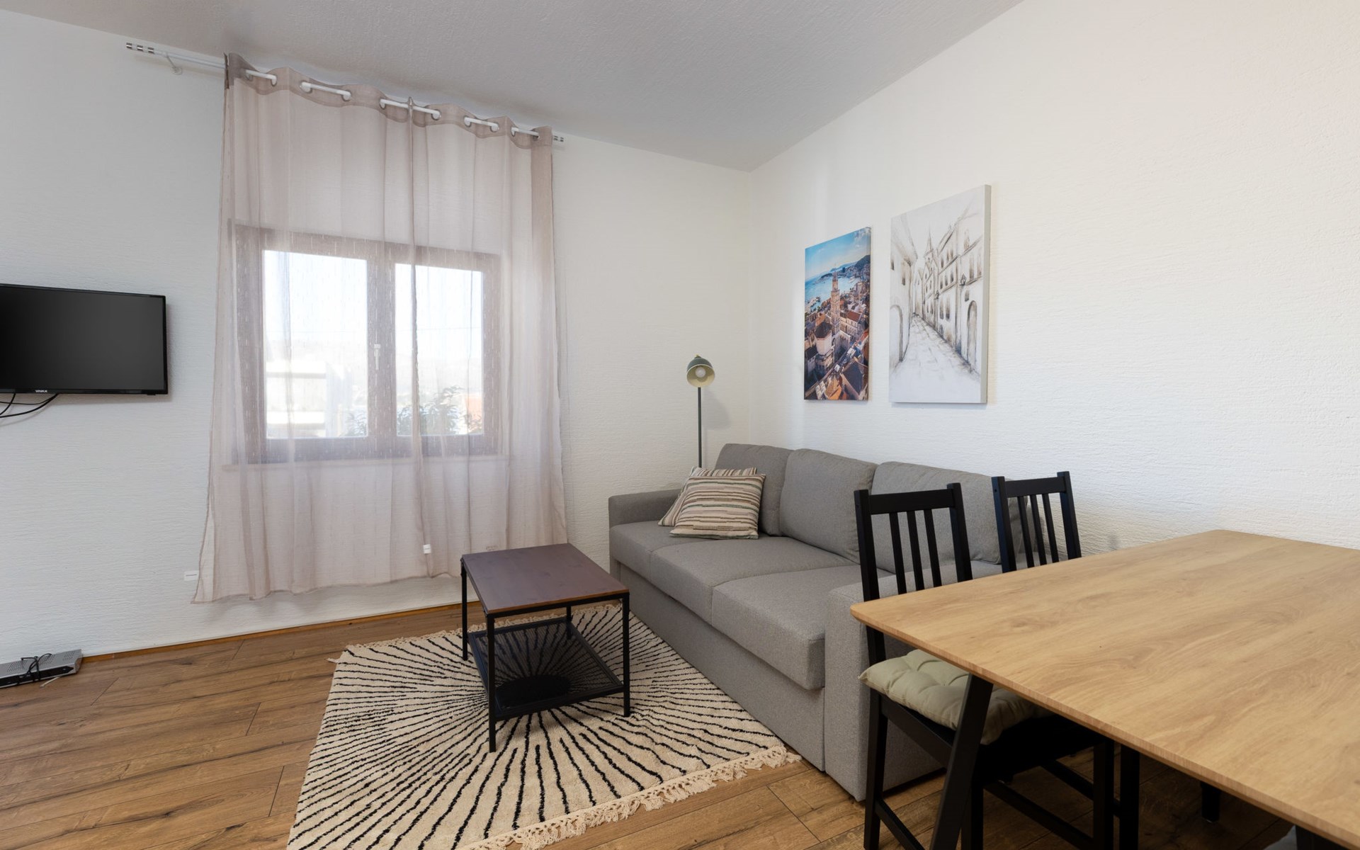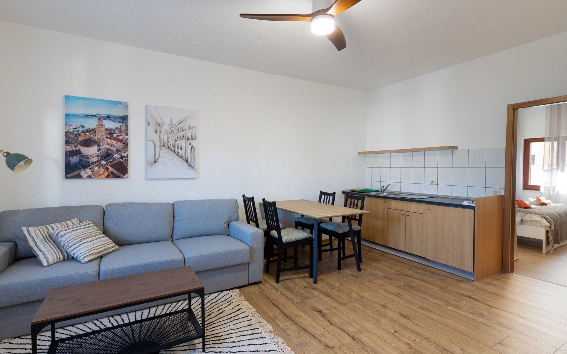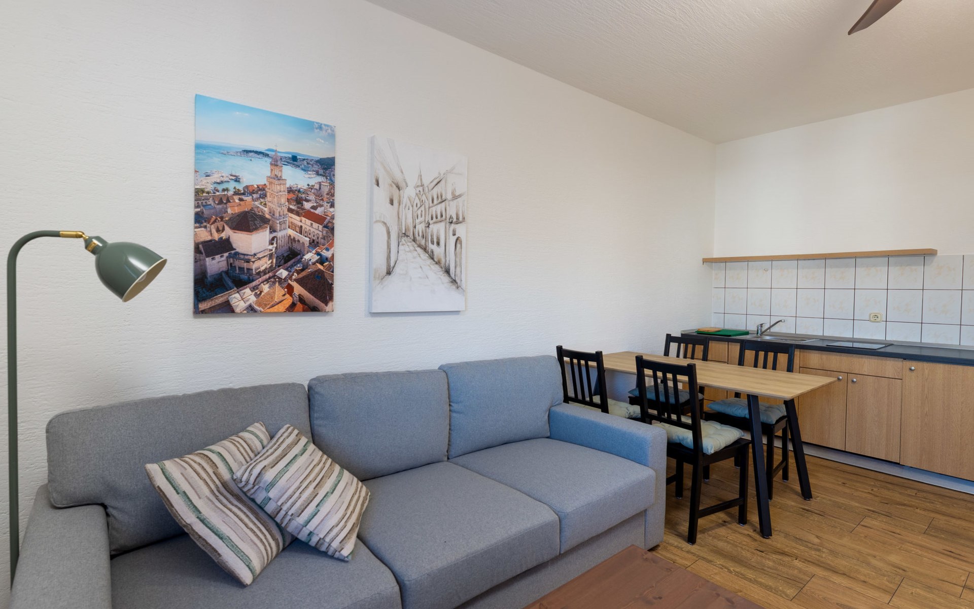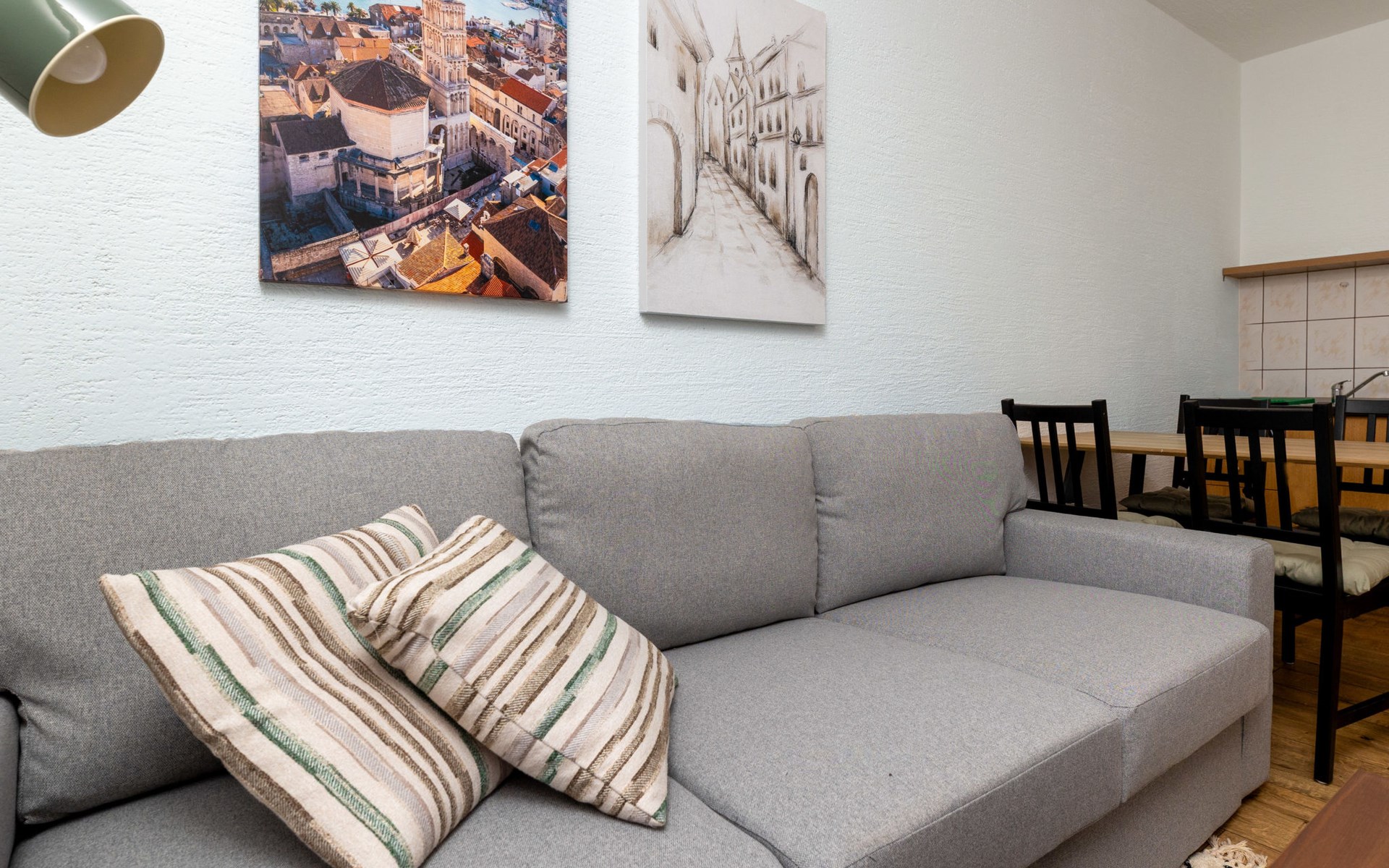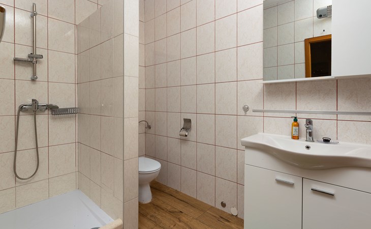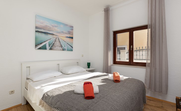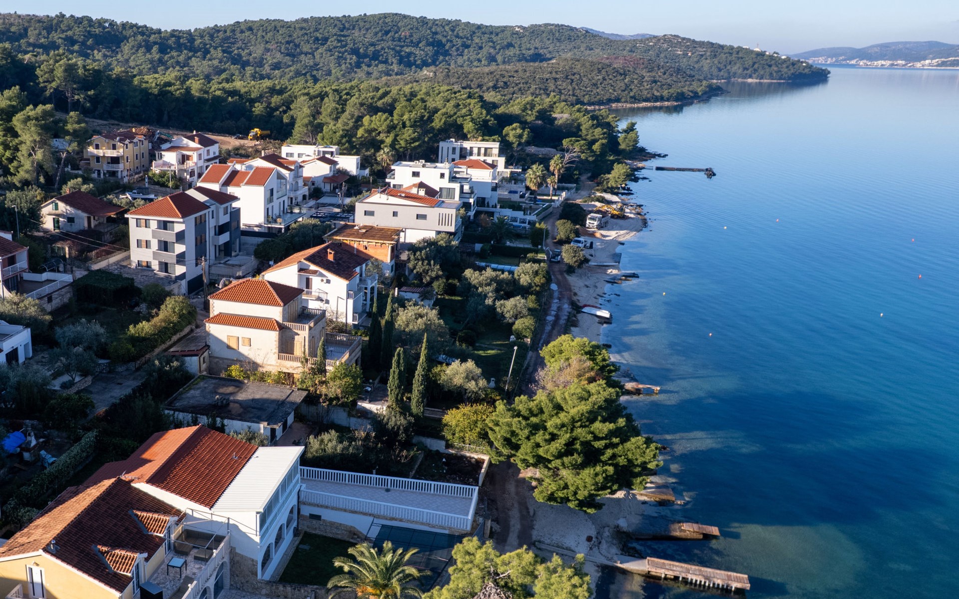 Okrug Gornji (Čiovo) 6 km van Trogir: Appartementencomplex van 3 verdiepingen. 1.5 km van het centrum van Okrug Gornji, rustige, zonnige ligging, 80 m van zee, 80 m van het strand. Voor medegebruik: terrein 450 m2. Terras (20 m2), barbecue. In het huis: internetaansluiting. Parkeerplaats (voor 5 auto's) bij het huis op het terrein. Winkel 1.5 km, restaurant 1.5 km, bushalte 1 km.