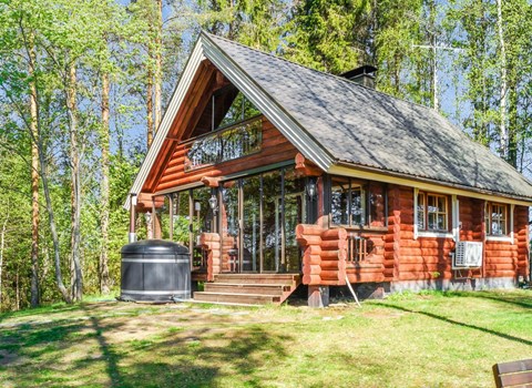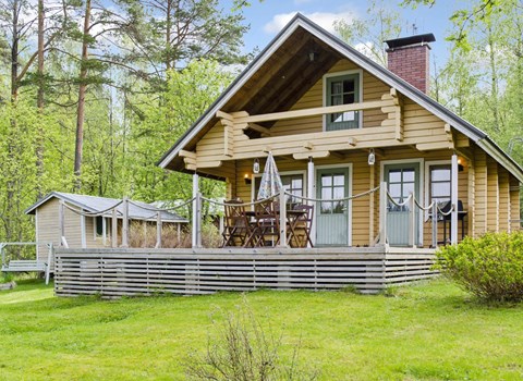 Wooden cabin 1990, renovated 2021, living room/kitchen with convertible sofa, bedroom with 2 beds, sauna, dressing room, open veranda.