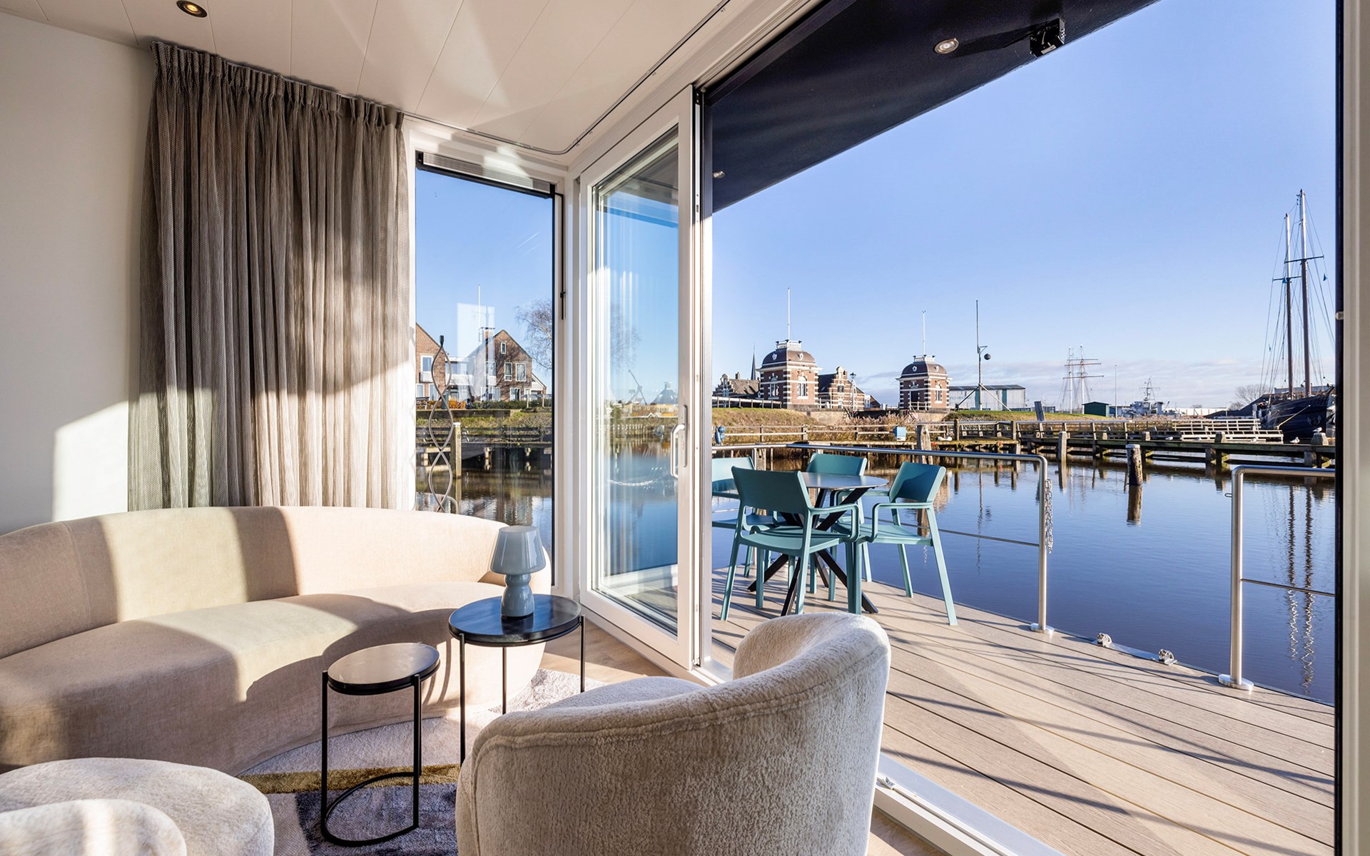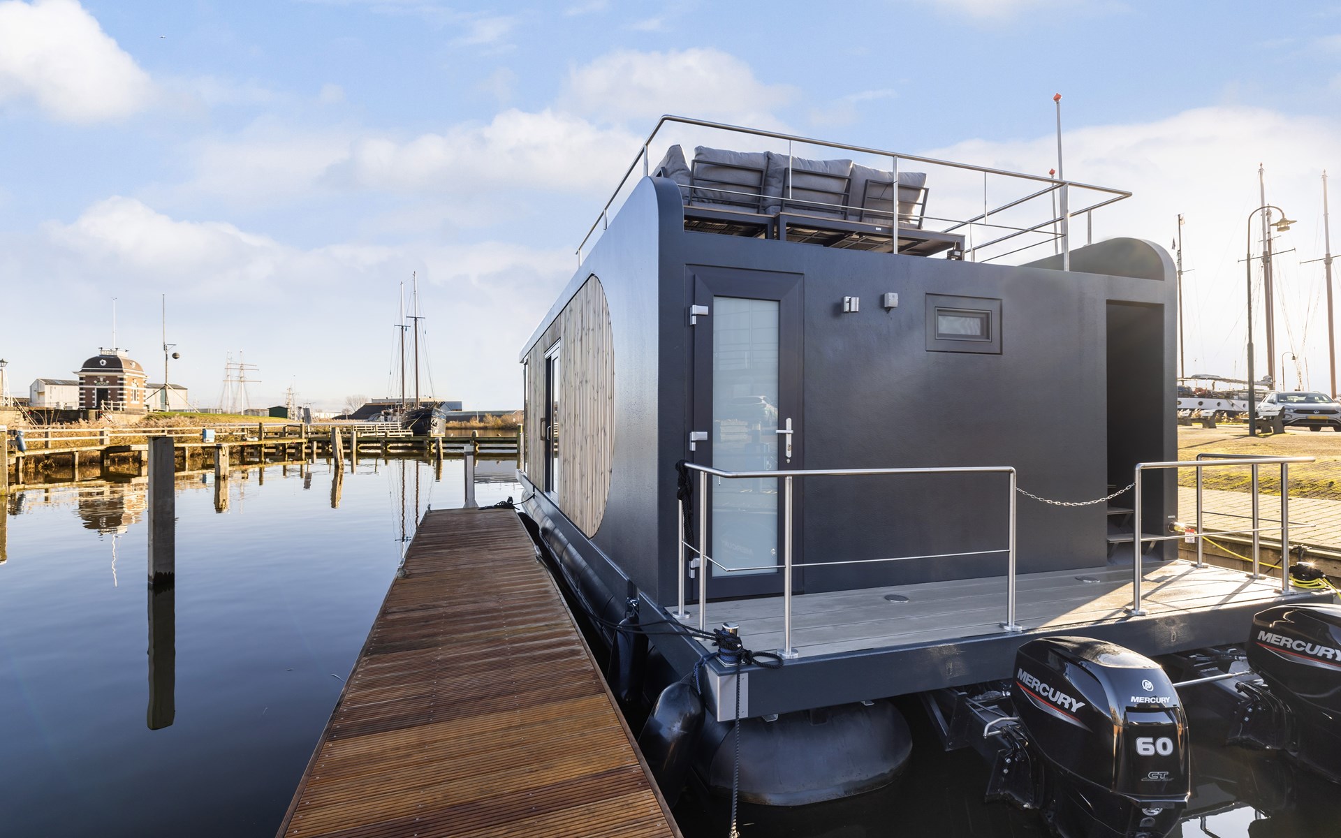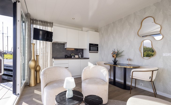 Welkom bij onze luxe houseboats in Lemmer. Hier geniet je van een unieke vakantie óp het water, met het comfort van een modern vakantiehuis. De houseboats liggen rustig in de haven van Lemmer en bieden een prachtig uitzicht over het water. Dankzij de lichte inrichting en het ruime terras ervaar je rust, ruimte en het echte watersportgevoel van Friesland.