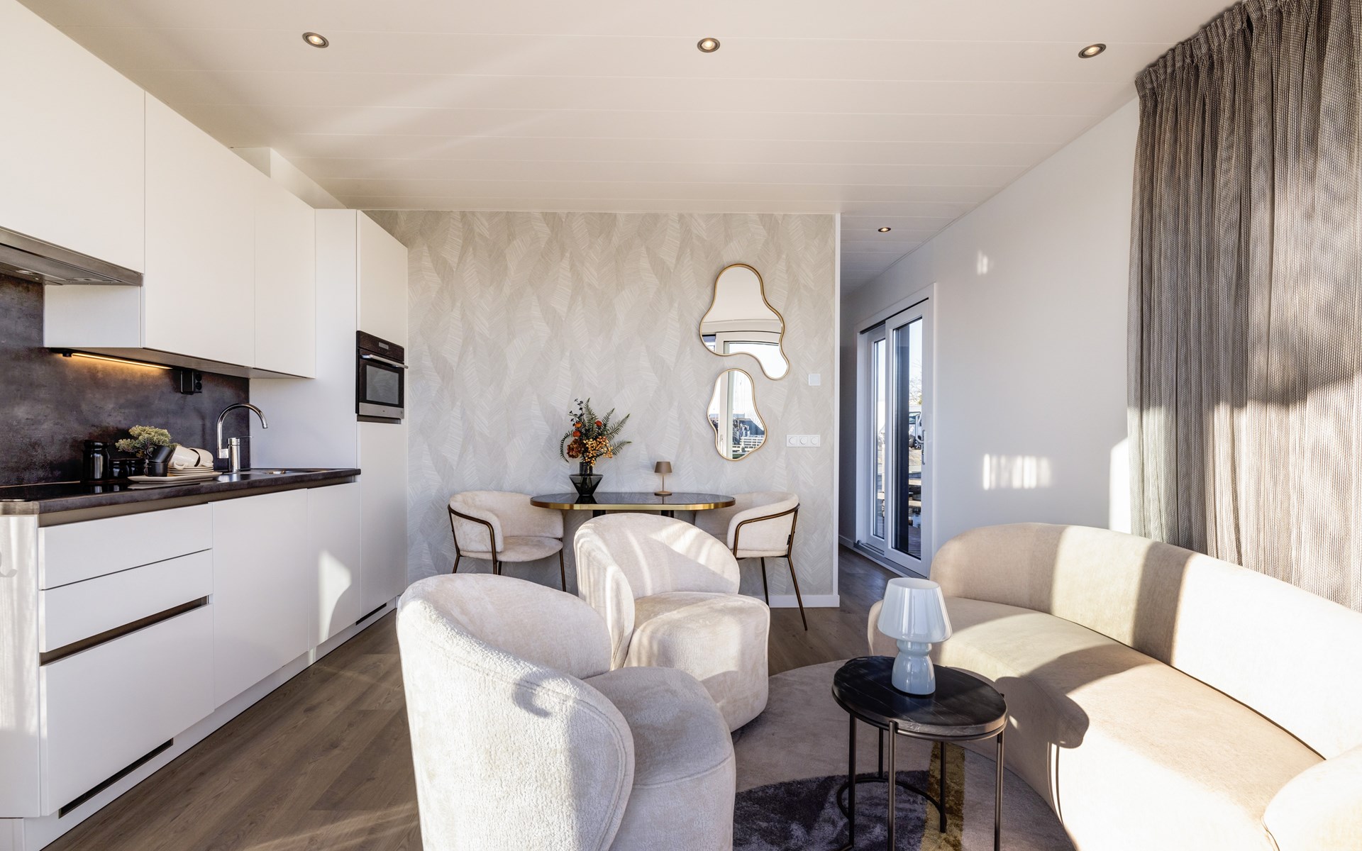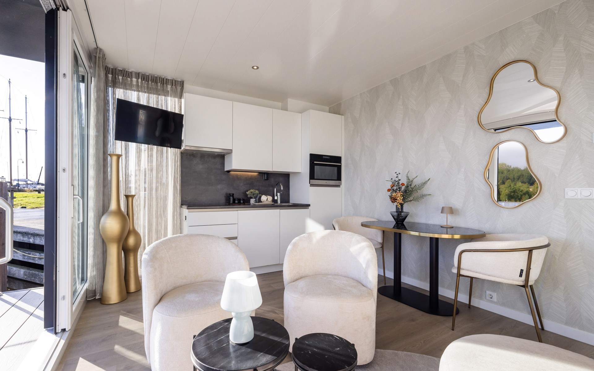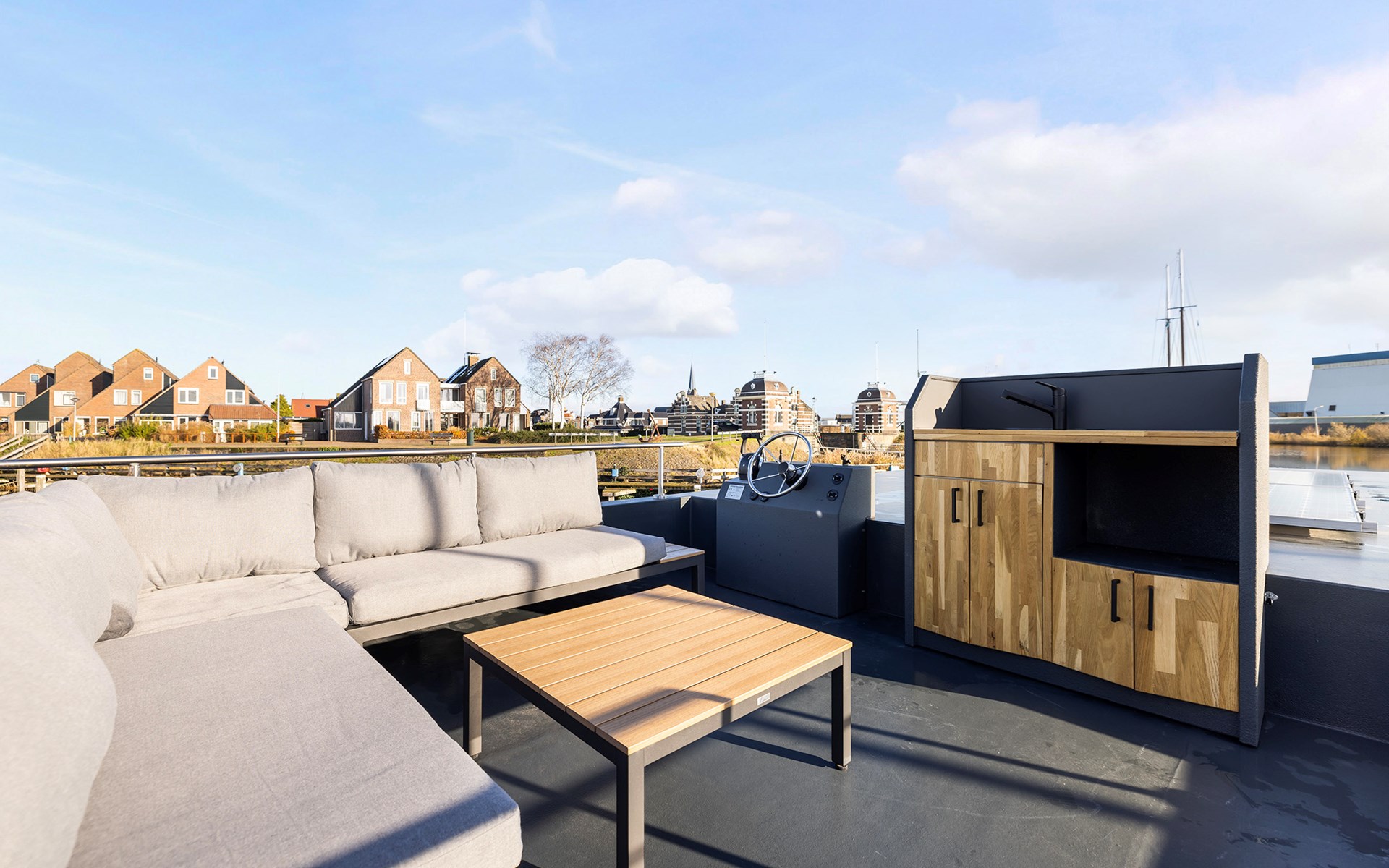 Welkom bij onze luxe houseboats in Lemmer. Hier geniet je van een unieke vakantie óp het water, met het comfort van een modern vakantiehuis. De houseboats liggen rustig in de haven van Lemmer en bieden een prachtig uitzicht over het water. Dankzij de lichte inrichting en het ruime terras ervaar je rust, ruimte en het echte watersportgevoel van Friesland.