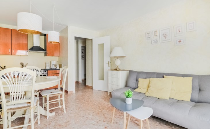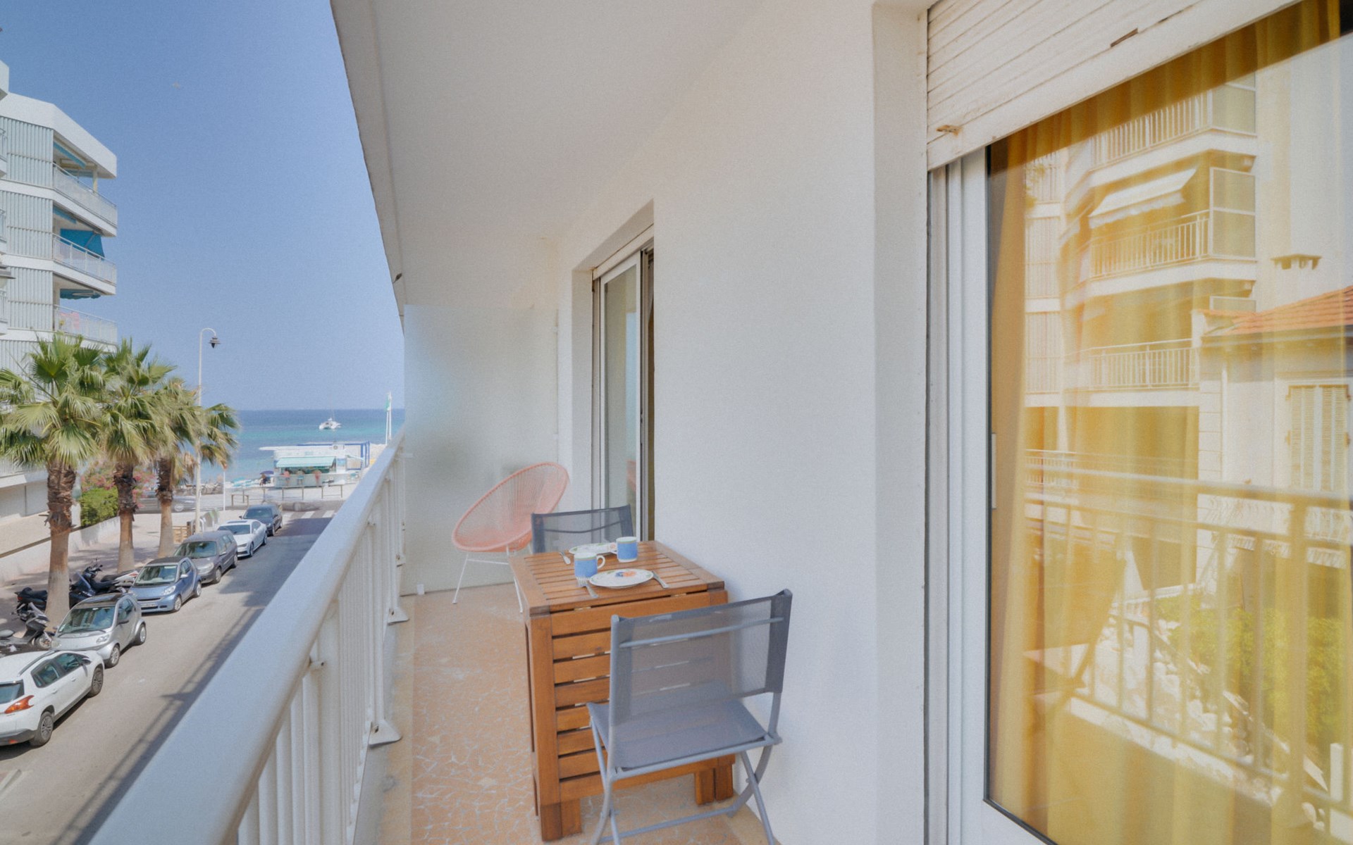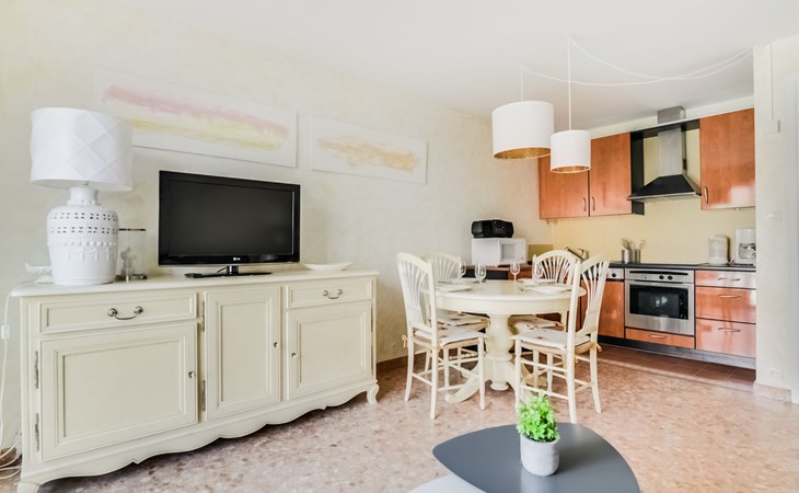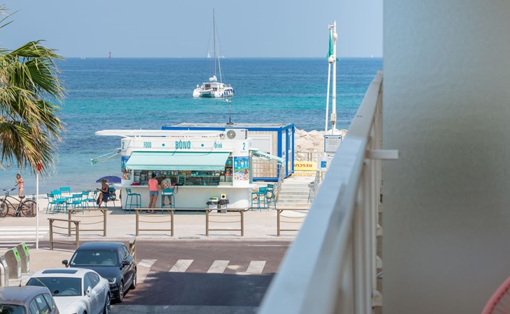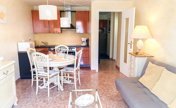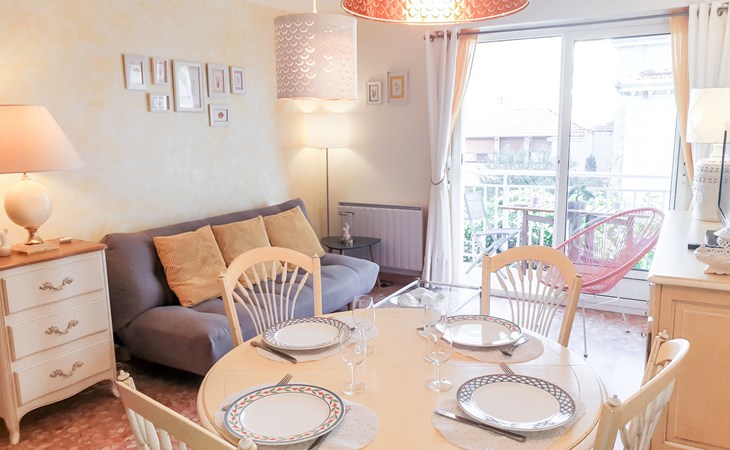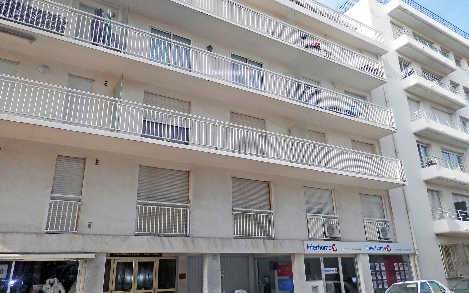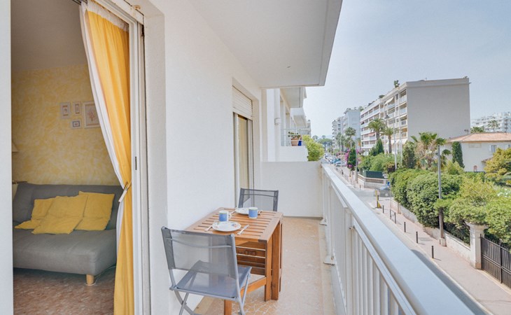 Flatgebouw "Reine Astrid", van 5 verdiepingen. In de wijk Palm Beach, rustige ligging, 50 m van zee, 50 m van het strand. In het complex: lift. Openbare parkeerplaatsen in de straat. Levensmiddelenwinkel, restaurant, bakkerij 10 m, bushalte "Place de l'étang" 50 m, zandstrand 50 m. Zeilschool 200 m. Attracties in de buurt: Palais des Festivals 2.5 km, Marineland 13 km.