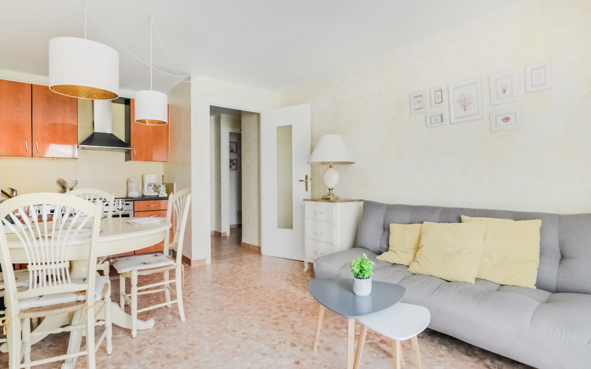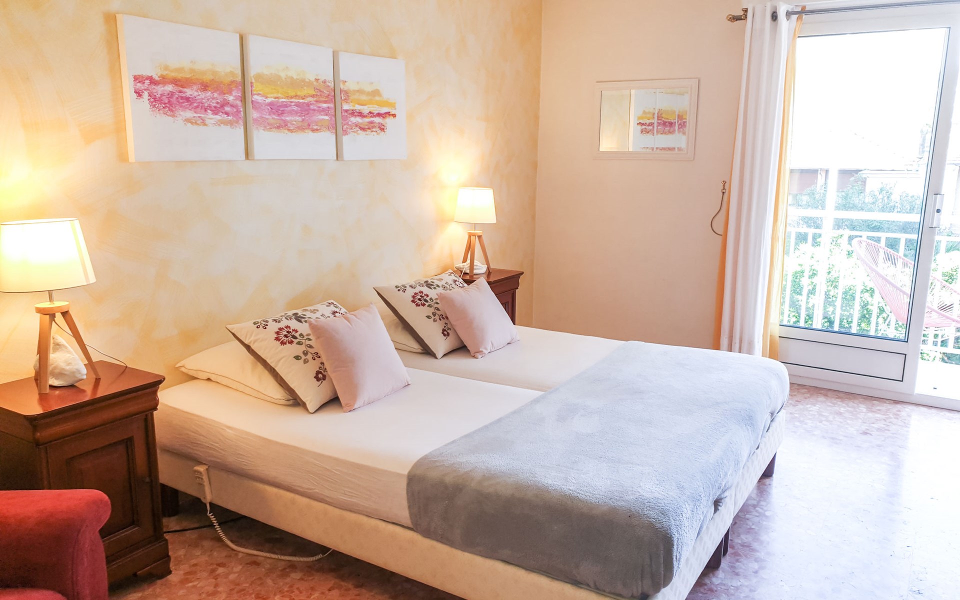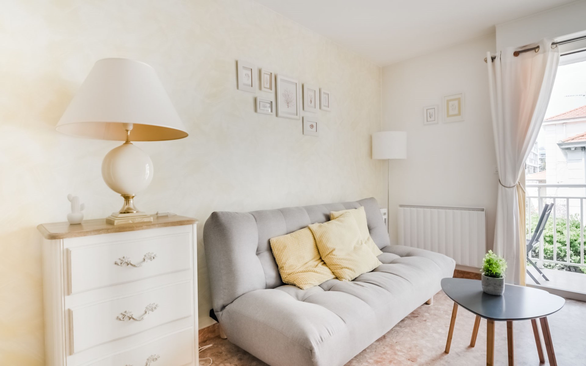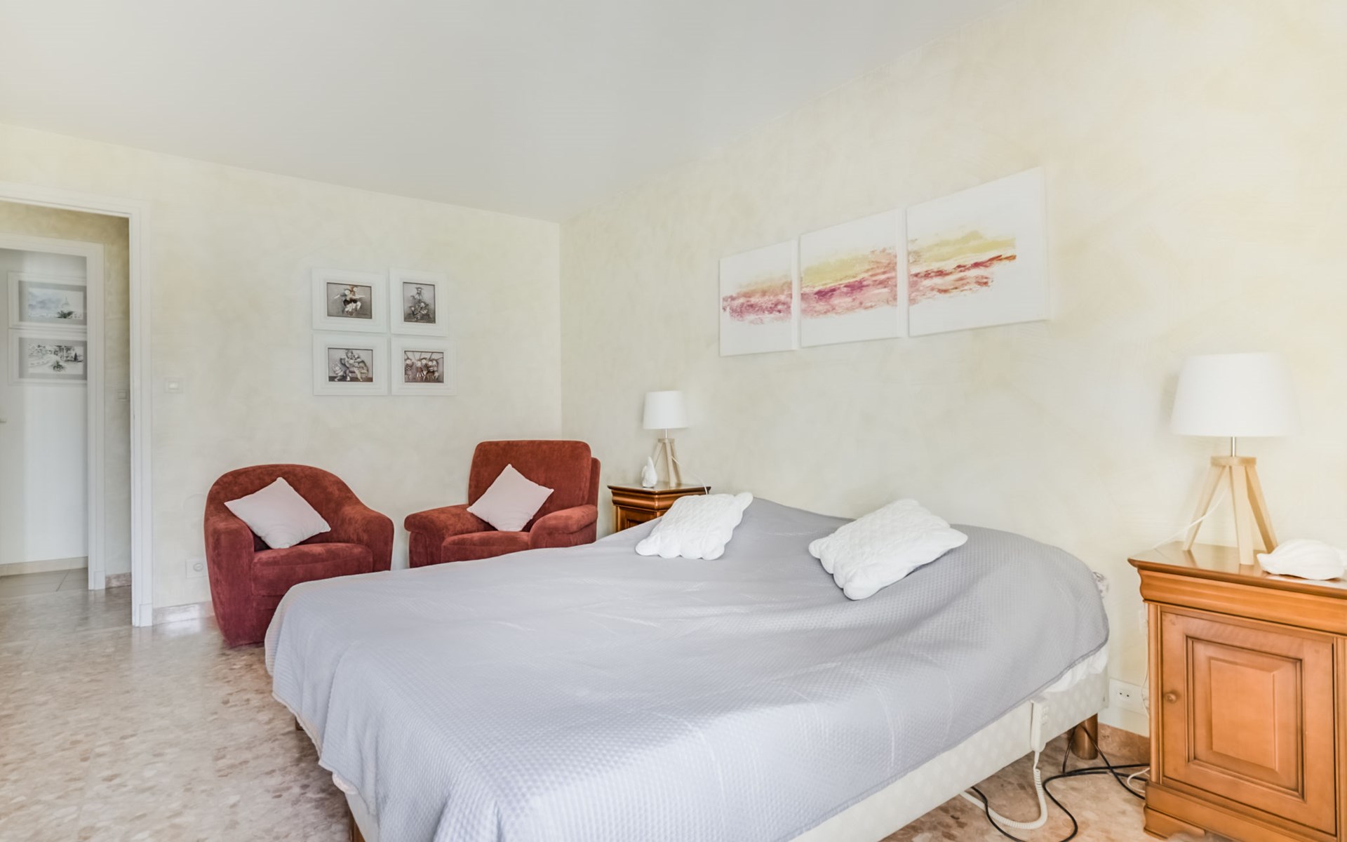 Flatgebouw "Reine Astrid", van 5 verdiepingen. In de wijk Palm Beach, rustige ligging, 50 m van zee, 50 m van het strand. In het complex: lift. Openbare parkeerplaatsen in de straat. Levensmiddelenwinkel, restaurant, bakkerij 10 m, bushalte "Place de l'étang" 50 m, zandstrand 50 m. Zeilschool 200 m. Attracties in de buurt: Palais des Festivals 2.5 km, Marineland 13 km.