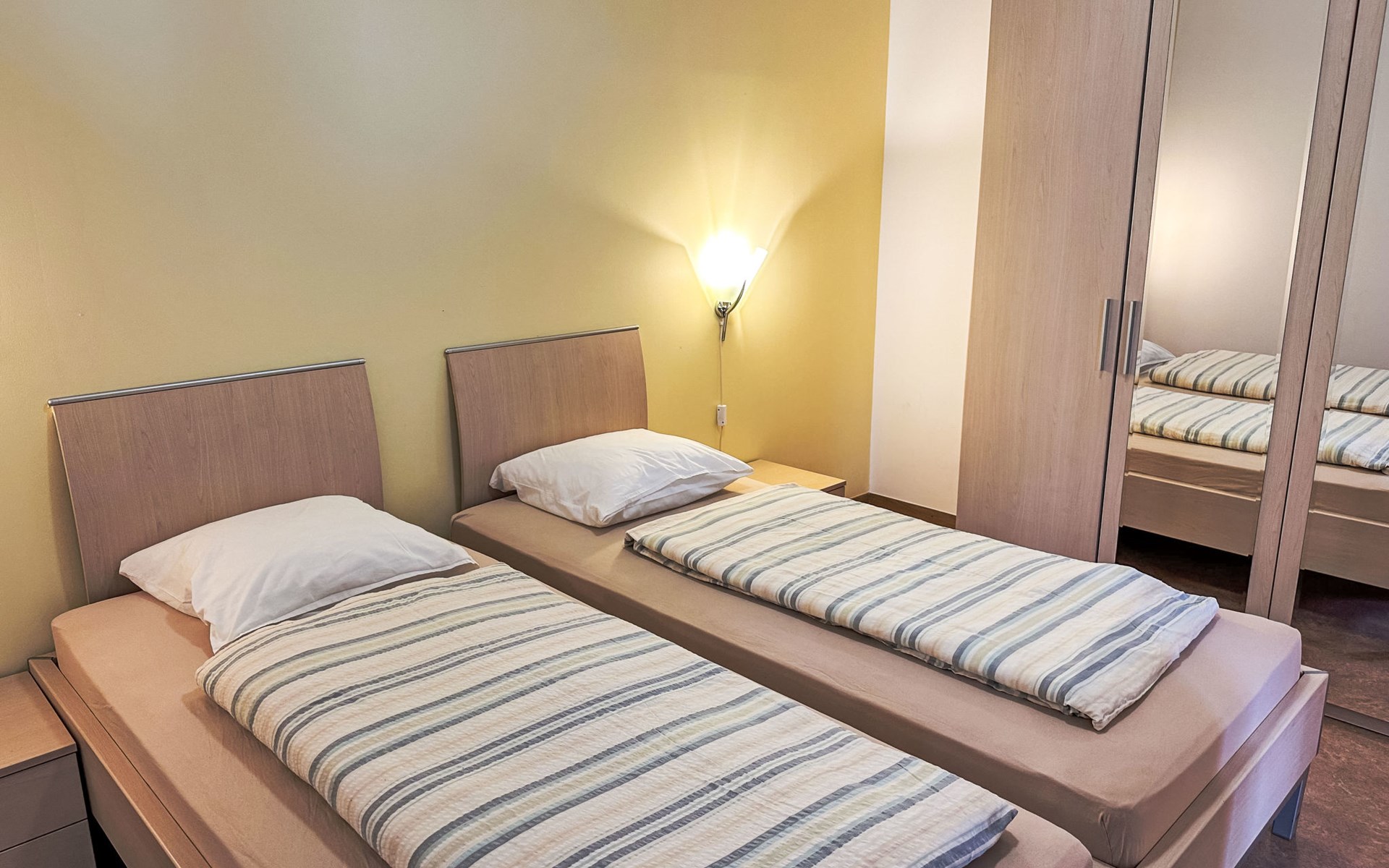 Flatgebouw van 2 verdiepingen. 4 appartementen in de woning. Aan de rand van de plaats, 50 m van de rivier. Voor medegebruik: openluchtzwembad (8 x 50 m, seizoensgebonden beschikbaarheid: 15.Mei. - 15.Sep., extra € 7 per dag). WC bij het zwembad, kinderzwembad, glijbaan. In het complex: restaurant, centrale verwarming, wasmachine, droger. Openbare parkeerplaatsen 20 m extra. Winkel 50 m, fietsverhuur 500 m, bushalte "Grevenmacher, Gare routière" 350 m, openluchtzwembad 20 m. Kinderspeelplaats 50 m. Attracties in de buurt: Kundel 500 m, Schmetterlingsgarten 450 m, Weinkellerei 800 m, Trier 20 km, Mosel Beach Bar 100 m. Wandelgebied Jakobsweg 400 m, Mosel Wanderweg 50 m.