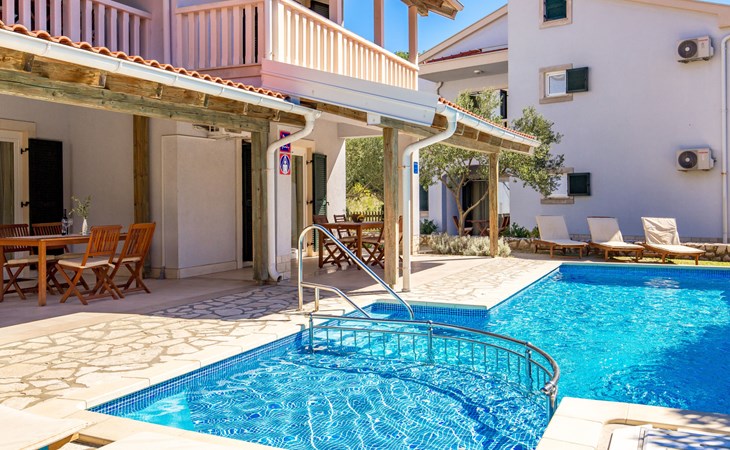 Mooi flatgebouw. In de wijk Palit, 2 km van het centrum van Rab, buiten de plaats, zonnige, verhoogde ligging, 100 m van zee, 250 m van het strand. Voor medegebruik: terrein (omheind), verzorgde tuin met gazon, openluchtzwembad hoekig verwarmd (9 x 4 m, 120 - 160 cm diepte, seizoensgebonden beschikbaarheid: 25.Apr. - 03.Okt.) met trap. Kinderzwembad, buitendouche, tuinmeubelen, barbecue. In het huis: internetaansluiting. Overdekte parkeerplaats bij het huis. Winkel 900 m, restaurant 1 km, bushalte 1.9 km, zandstrand, kiezelstrand 250 m, strandbad 900 m. Tennis 2.5 km. De afgebeelde foto is slechts een voorbeeld. Vergelijkbare accommodaties kunnen worden geboekt. Object referentie: HR3700.301, 310 is gelegen op hetzelfde terrein. Het appartementsgebouw "Pavica" bevindt zich, samen met de appartementsgebouwen "Ivan" en "Mihaela" op een terrein van 1600 m2, met een gemeenschappelijk zwembad met tegenstroom-installatie. Een deel van het zwembad is kinderzwembad, 30-60 cm diep. Ter beschikking: ligstoelen. Het oude centrum van Rab is via een kustpromenade bereikbaar (wandeling van 20 minuten).