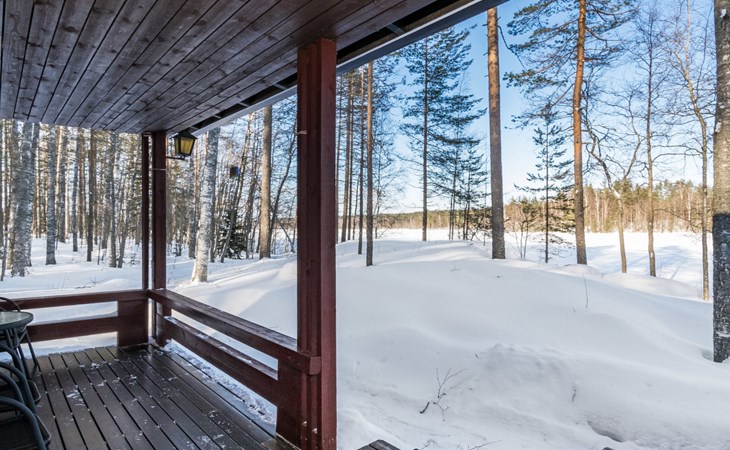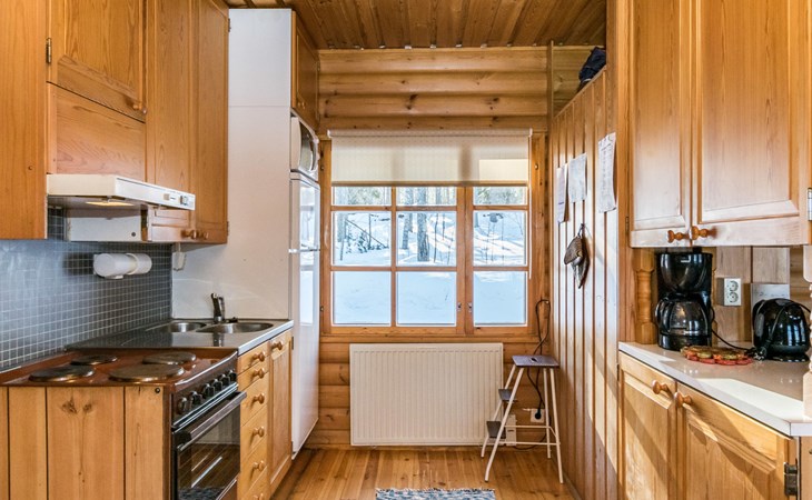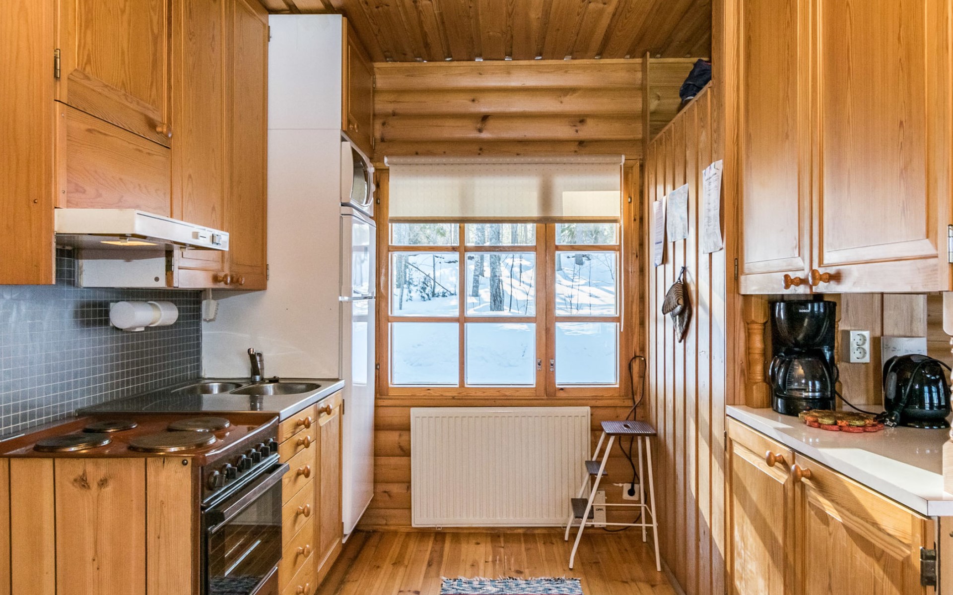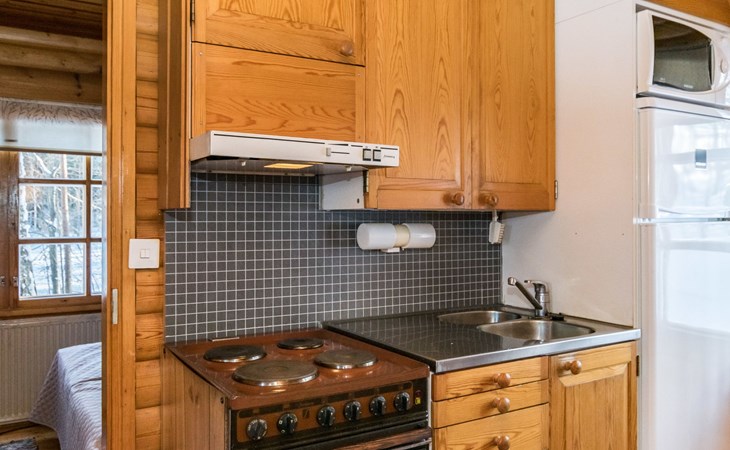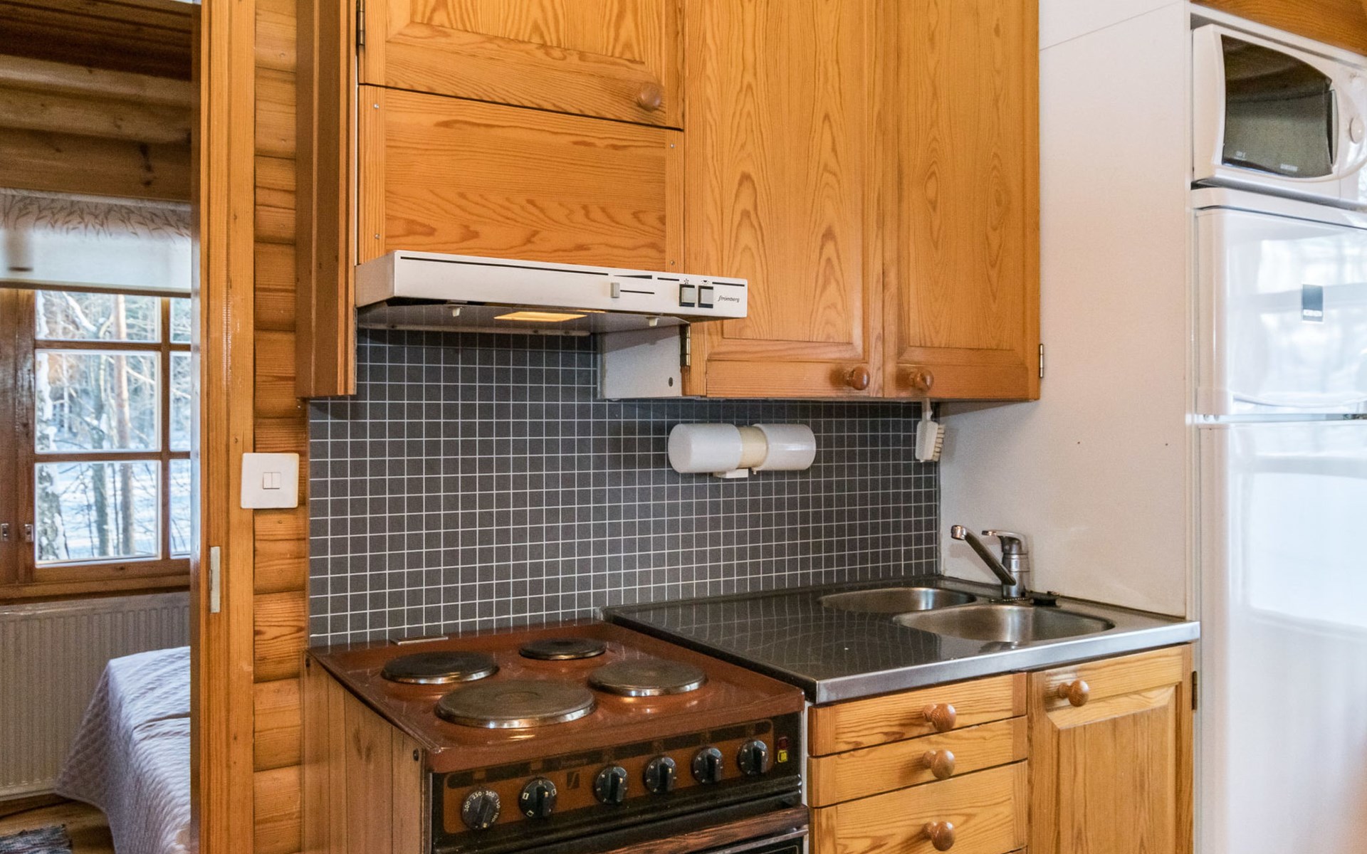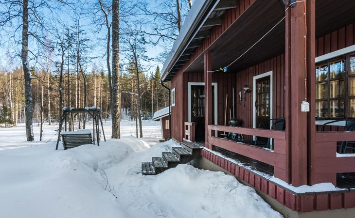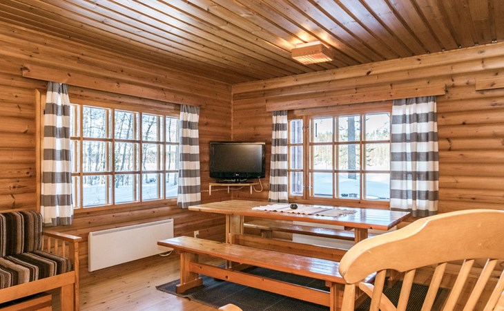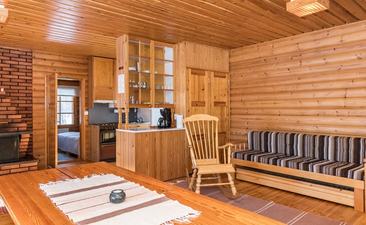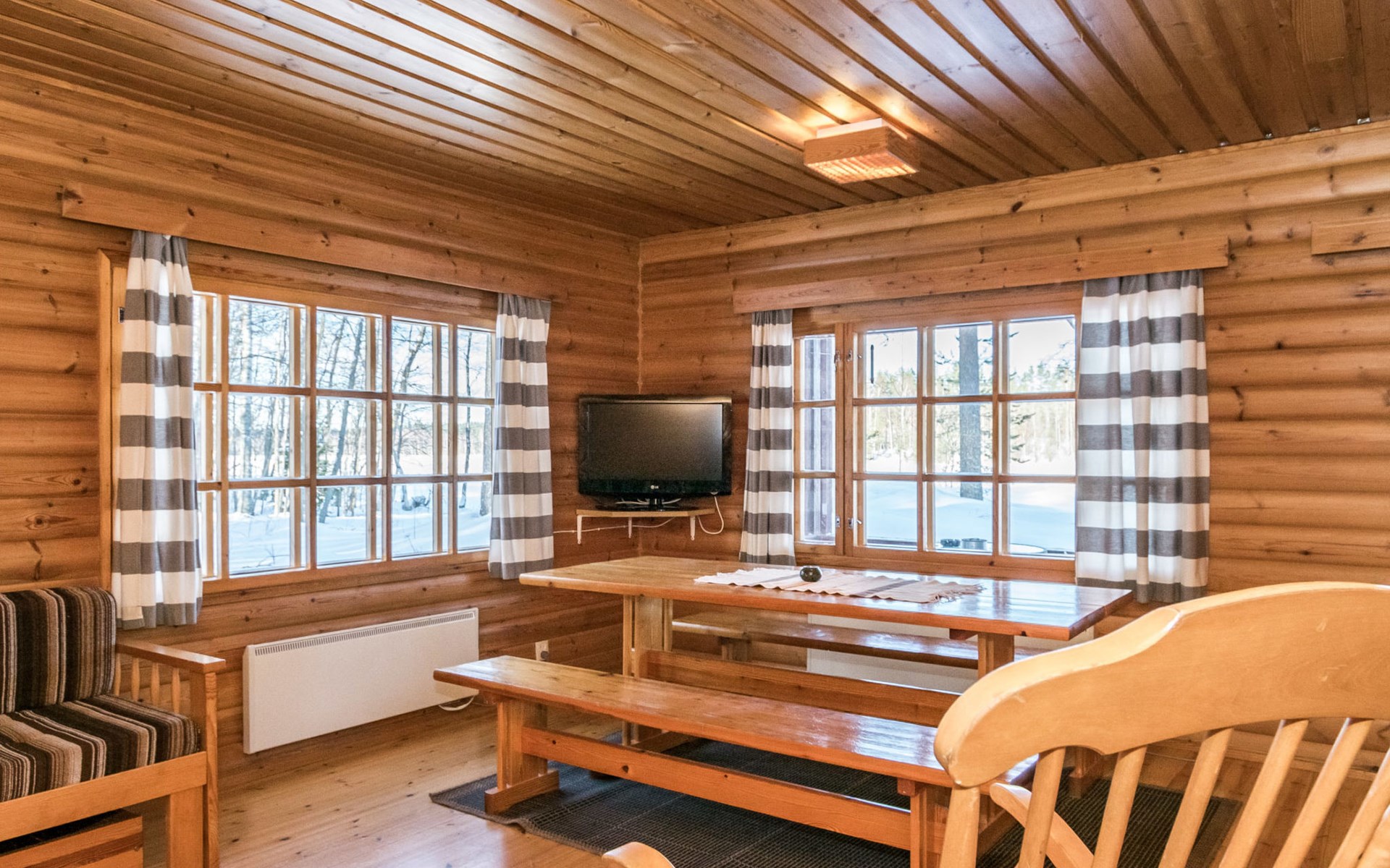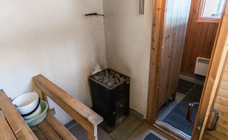Wooden cabin, renovated 1992, kitchen, bedroom with 2 beds , living room with 2 extra beds (couch), sauna (electric sauna stove), dressing room, open veranda. Drinking water will be feched from owner, distance 400 m.