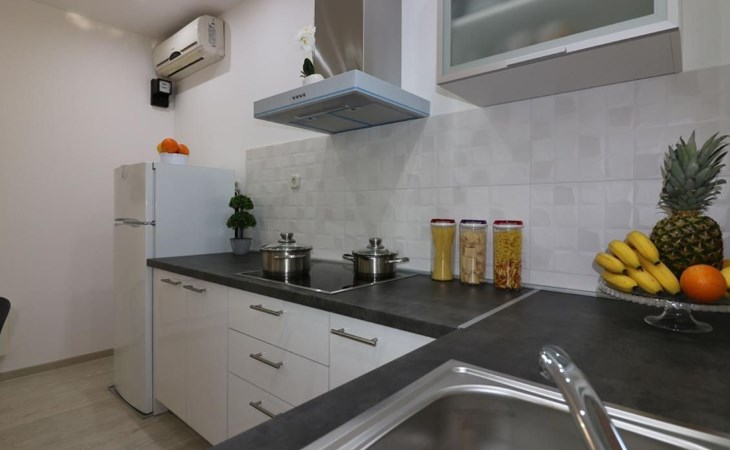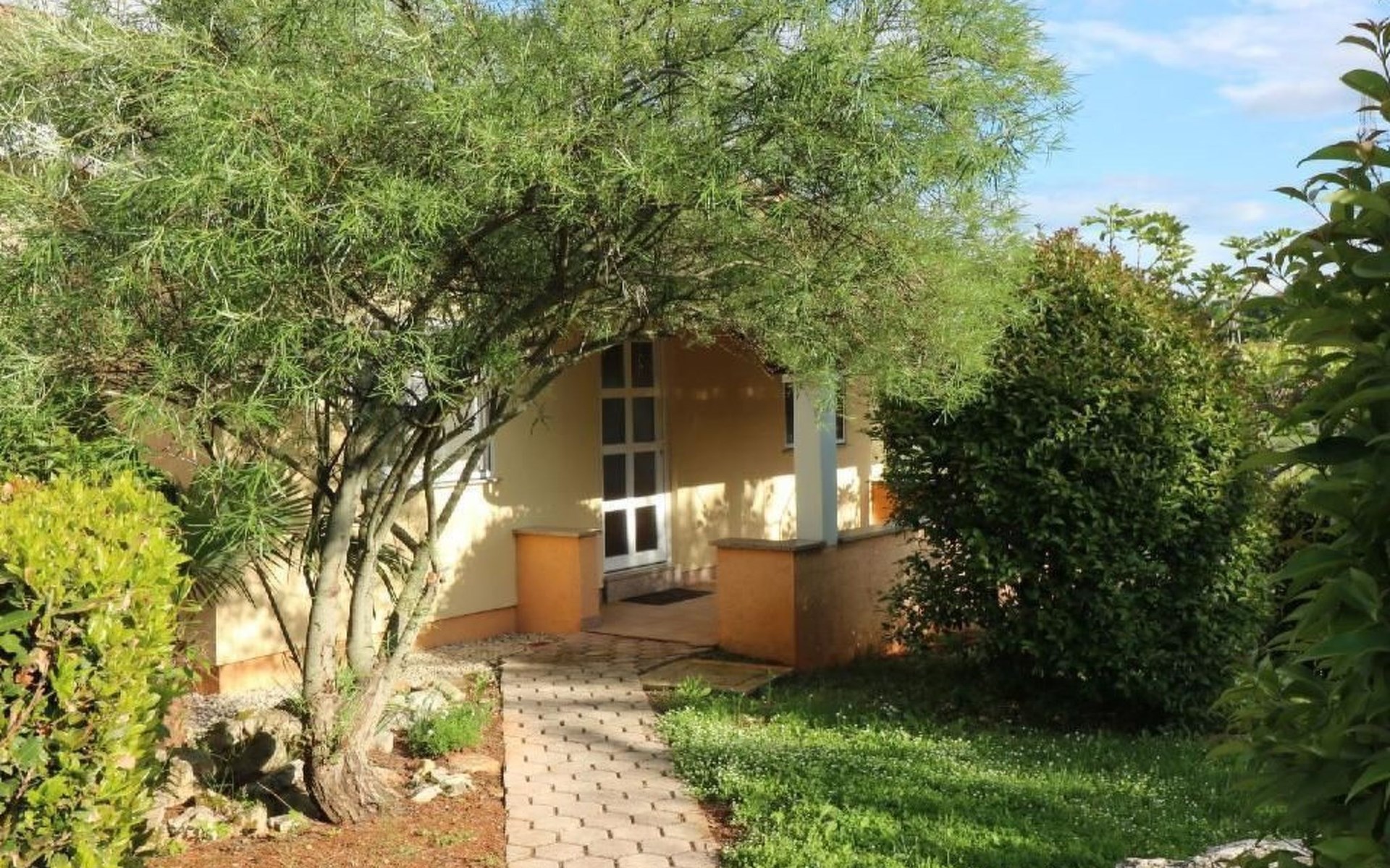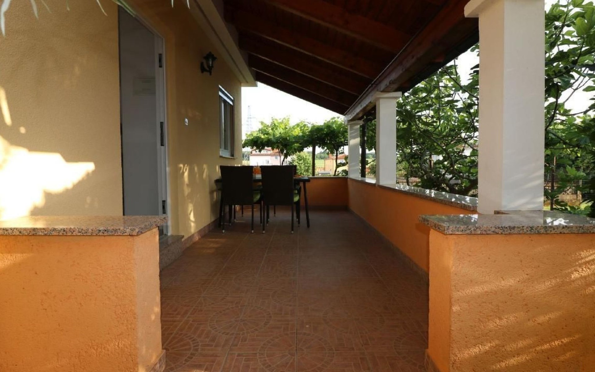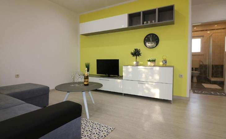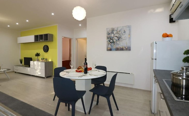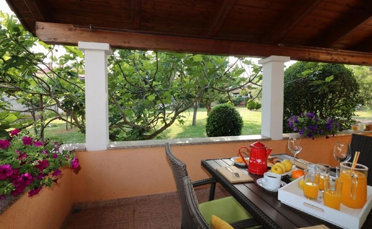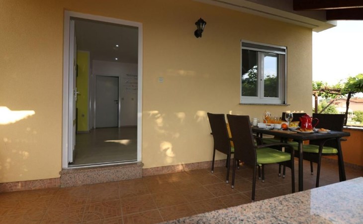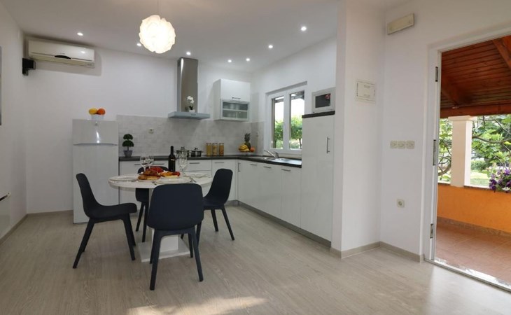 Immerse yourself in the tranquil charm of Residence Lorena, a picturesque bungalow in the holiday apartment complex of Portun, located in the captivating surroundings of Poreč, Istria. For those looking to escape the hustle and bustle of everyday life, this oasis of calm with its sunny, green location, just 2.5 km from the vibrant centre, offers the perfect retreat.Inside, guests will find a modern and attractively designed 62 m² 3-room flat on the ground floor. Equipped with a cosy living/dining room with satellite TV, air conditioning and direct access to the garden and terrace, this unit offers everything for an unforgettable stay. Two bedrooms, one with a double bed and the other with two single beds, guarantee a comfortable night's sleep. The kitchen is fully equipped with everything the modern kitchen heart desires, including a microwave, filter coffee machine, toaster, kettle and dishwasher. Guests also have access to a shower with separate WC and a covered terrace with furniture.The outdoor area sets the standard for relaxation and community with a shared garden, which is fenced and has a lawn, an orchard and a sunbathing area. The highlight is the saltwater pool (9 x 4 m), which is available for refreshment from April to mid-October. The offer is completed by garden furniture, a communal barbecue and private parking spaces, which emphasise the comfort.The area surrounding the Lorena residence promises both adventure and relaxation. There are shops and restaurants just a few steps away, and an attractive lido is only 2.5 km away. Poreč itself, known for its exceptional appeal, invites you to explore its lush vegetation, beautiful beaches and an old town full of ancient monuments and the famous Eufrasiana Basilica. In addition to the countless leisure activities, such as hiking, cycling and tennis, there are fascinating excursions to Venice, the Lim Fjord, Plitvice National Park and other places worth seeing.Discover the irresistible charm of Residence Lorena and treat yourself to an unforgettable holiday in the peaceful, green expanses of Istria. Here, where modern comfort meets idyllic natural landscapes, you are sure to find the perfect balance between relaxation and adventurous exploration. 2163-11-02/2-17-3