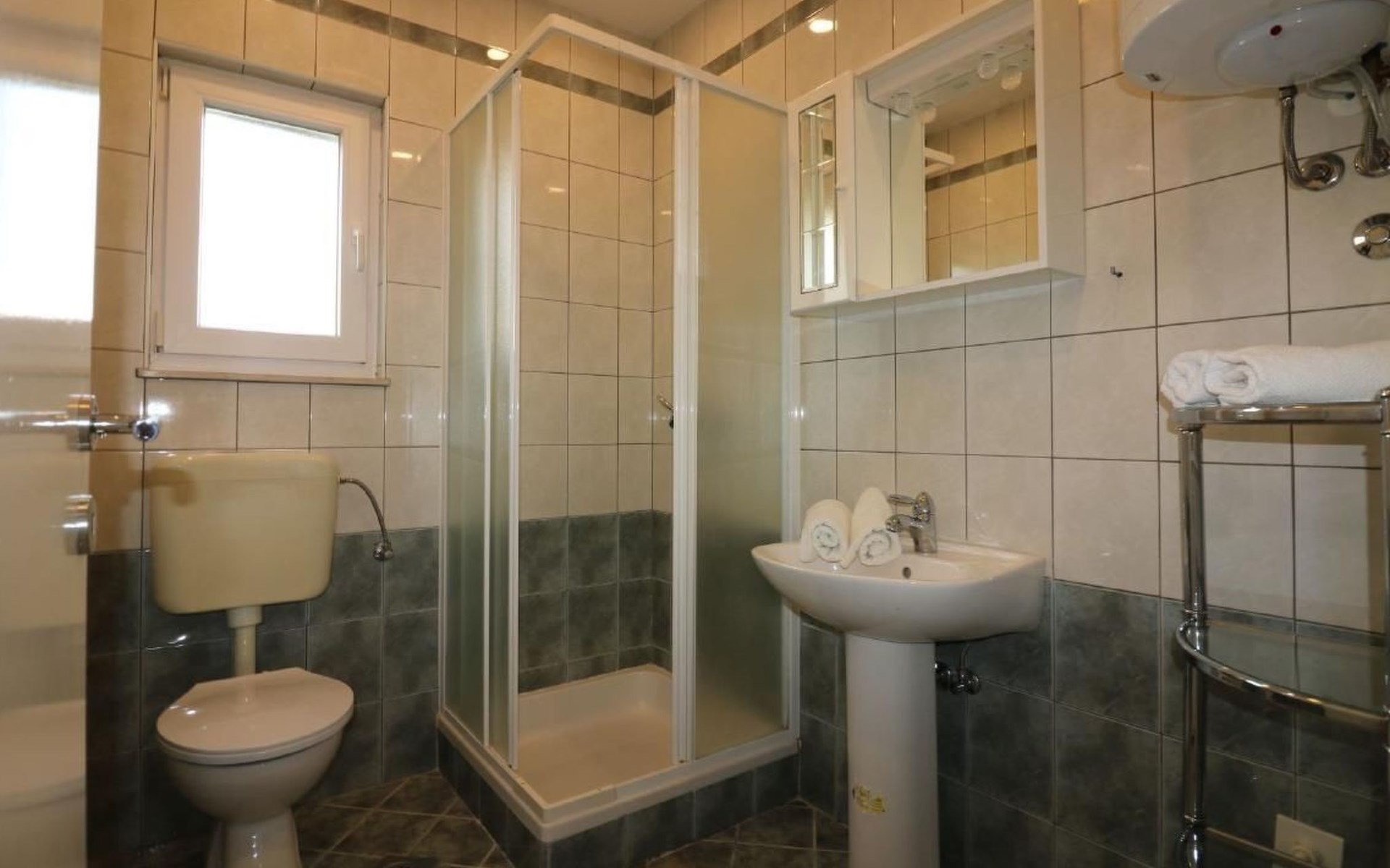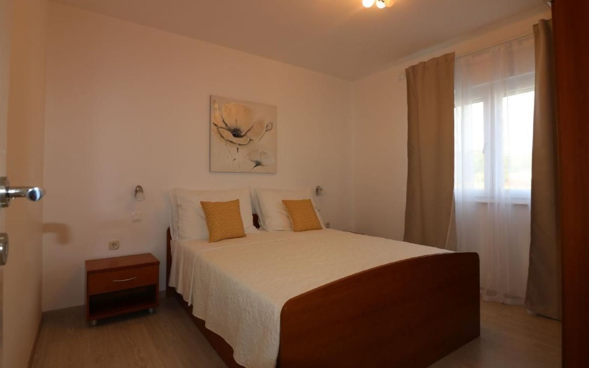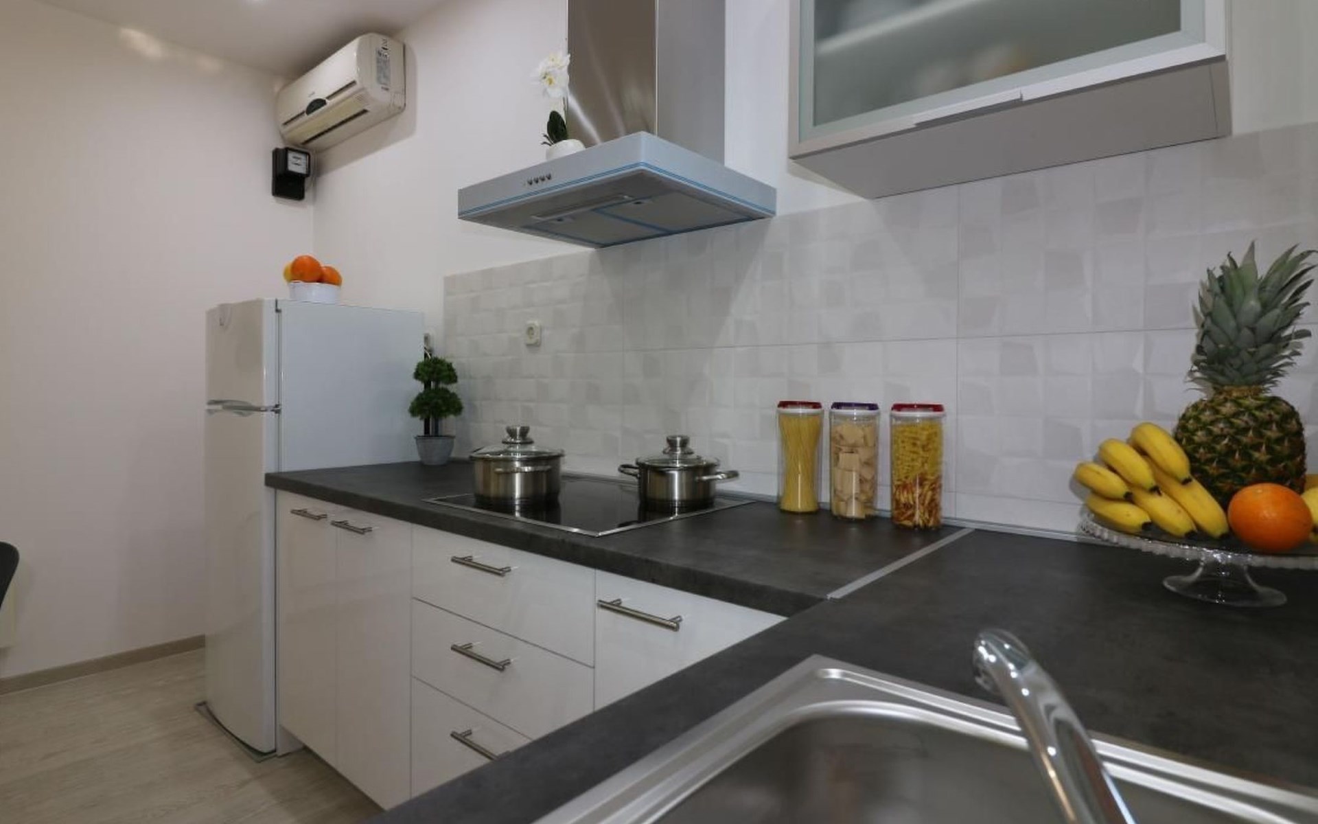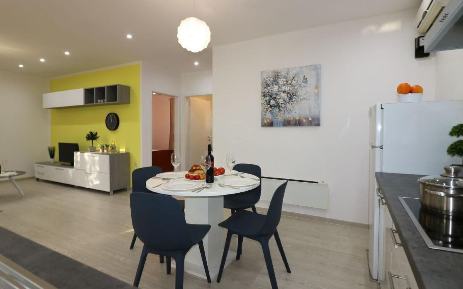 Immerse yourself in the tranquil charm of Residence Lorena, a picturesque bungalow in the holiday apartment complex of Portun, located in the captivating surroundings of Poreč, Istria. For those looking to escape the hustle and bustle of everyday life, this oasis of calm with its sunny, green location, just 2.5 km from the vibrant centre, offers the perfect retreat.Inside, guests will find a modern and attractively designed 62 m² 3-room flat on the ground floor. Equipped with a cosy living/dining room with satellite TV, air conditioning and direct access to the garden and terrace, this unit offers everything for an unforgettable stay. Two bedrooms, one with a double bed and the other with two single beds, guarantee a comfortable night's sleep. The kitchen is fully equipped with everything the modern kitchen heart desires, including a microwave, filter coffee machine, toaster, kettle and dishwasher. Guests also have access to a shower with separate WC and a covered terrace with furniture.The outdoor area sets the standard for relaxation and community with a shared garden, which is fenced and has a lawn, an orchard and a sunbathing area. The highlight is the saltwater pool (9 x 4 m), which is available for refreshment from April to mid-October. The offer is completed by garden furniture, a communal barbecue and private parking spaces, which emphasise the comfort.The area surrounding the Lorena residence promises both adventure and relaxation. There are shops and restaurants just a few steps away, and an attractive lido is only 2.5 km away. Poreč itself, known for its exceptional appeal, invites you to explore its lush vegetation, beautiful beaches and an old town full of ancient monuments and the famous Eufrasiana Basilica. In addition to the countless leisure activities, such as hiking, cycling and tennis, there are fascinating excursions to Venice, the Lim Fjord, Plitvice National Park and other places worth seeing.Discover the irresistible charm of Residence Lorena and treat yourself to an unforgettable holiday in the peaceful, green expanses of Istria. Here, where modern comfort meets idyllic natural landscapes, you are sure to find the perfect balance between relaxation and adventurous exploration. 2163-11-02/2-17-3