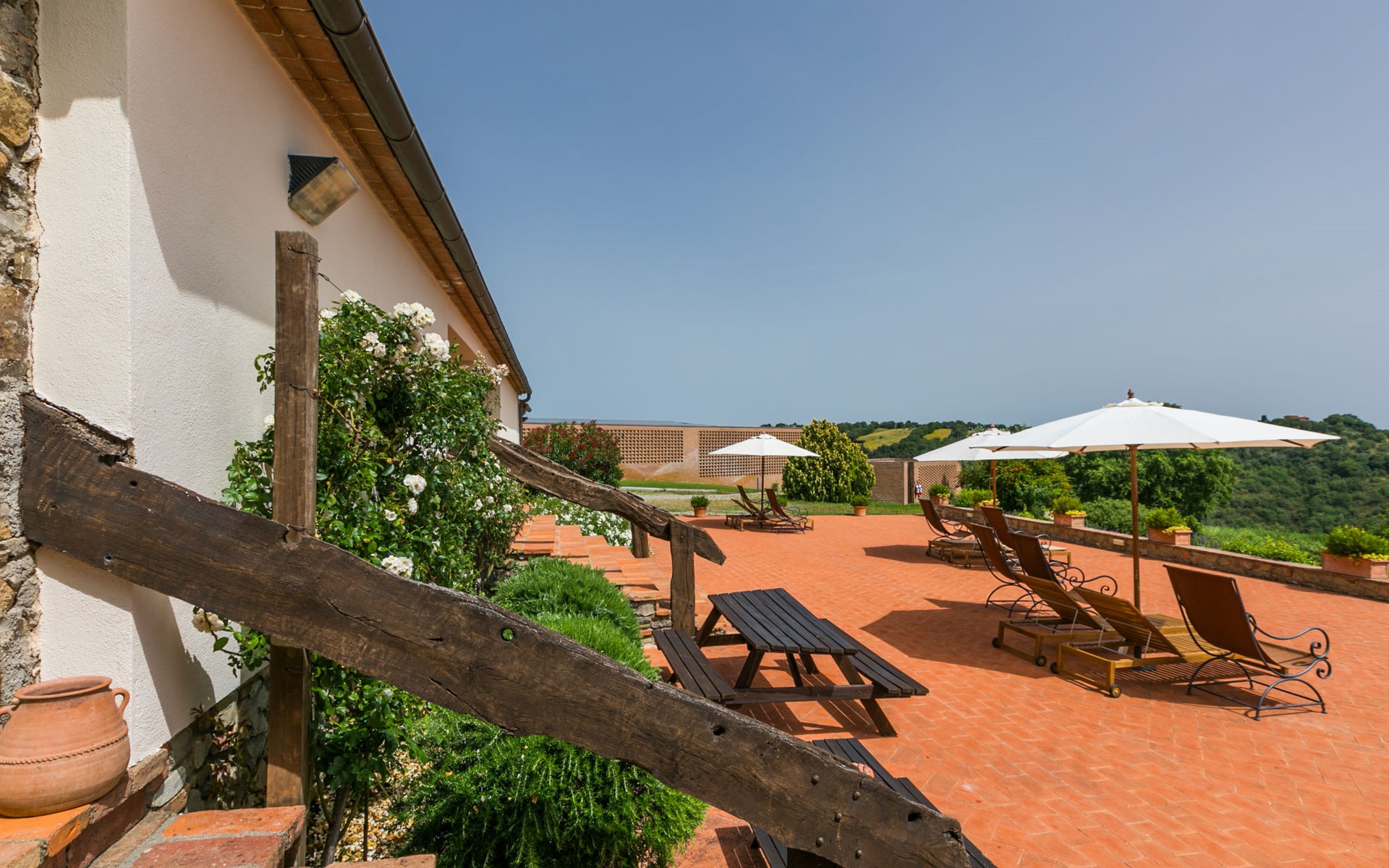 Mooi boerderij "Salustri", omgeven door velden. 5 huizen in de plaats. 10 km van het centrum van Cinigiano, rustige, verhoogde ligging, 51 km van zee, te midden van groen. Voor medegebruik: mooie tuin ter ontspanning, overdekt zwembad verwarmd (6 x 10 m, 150 cm diepte, seizoensgebonden beschikbaarheid: 01.Mei. - 01.Nov.). WC bij het zwembad, douche/WC bij het zwembad, terras, tuinmeubelen. In het complex: receptie, zonneterras, wasmachine (voor medegebruik, extra). Parkeerplaats op het terrein. Supermarkt 10 km, restaurant 3 km, zandstrand 50 km. Manege 11 km. Attracties in de buurt: Montalcino 35 km, Val d´Orcia, Monte Amiata, Parco dell'Uccellina 50 km, Castiglione della Pescaia 50 km. Auto noodzakelijk. Lokale verkoop van streekproducten.