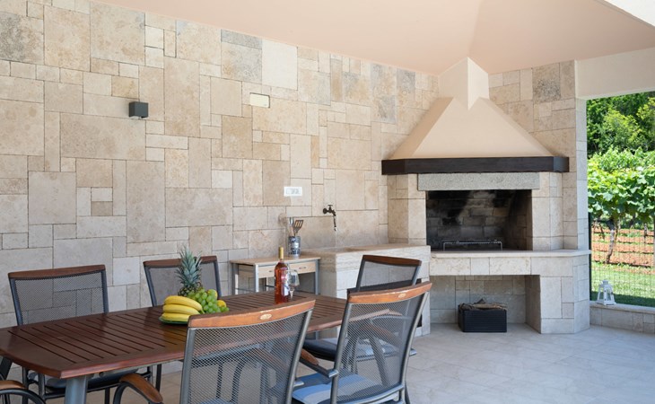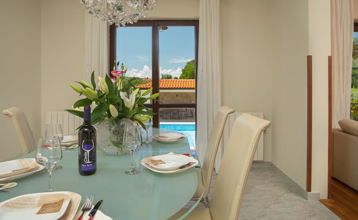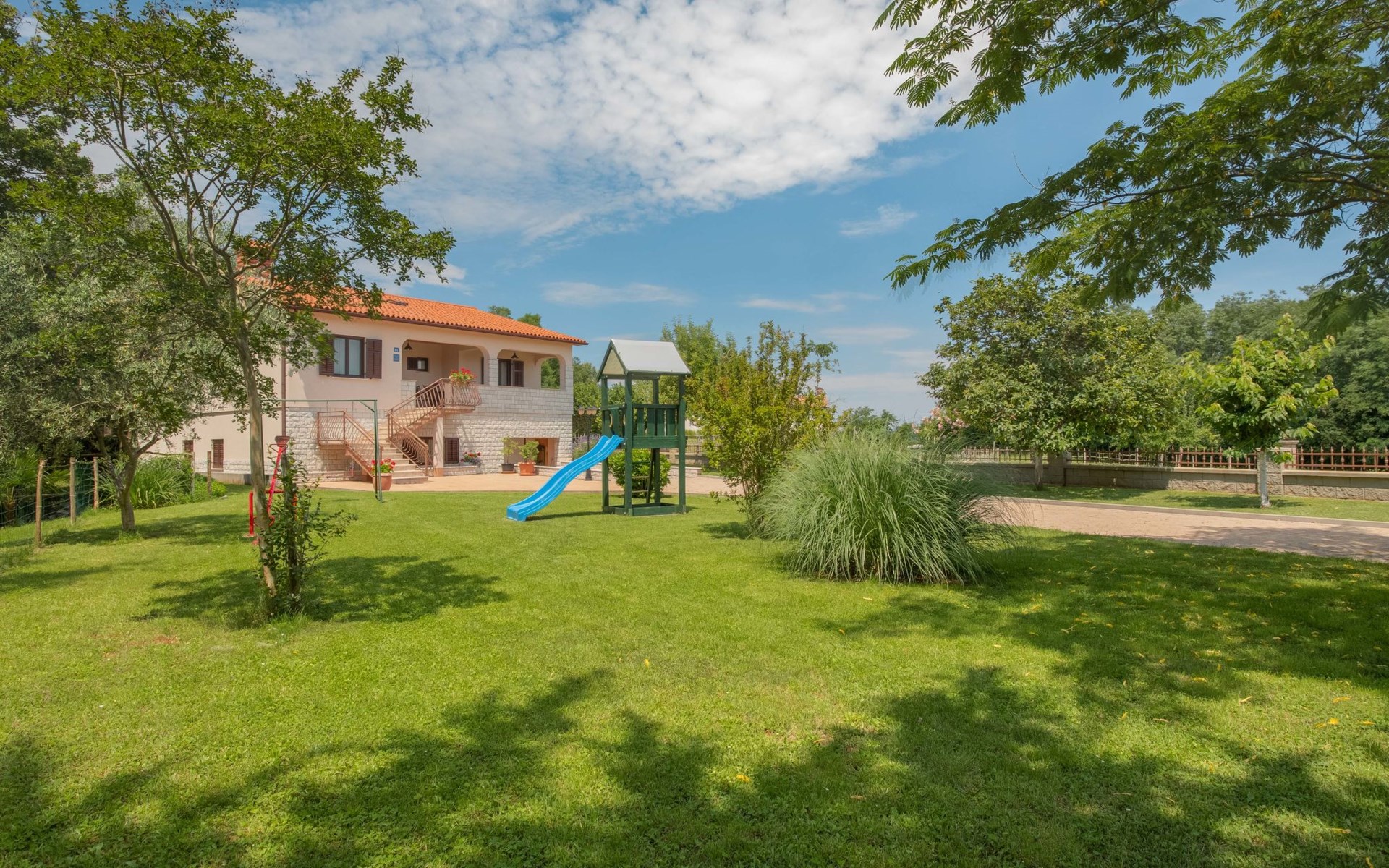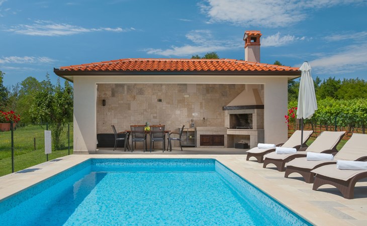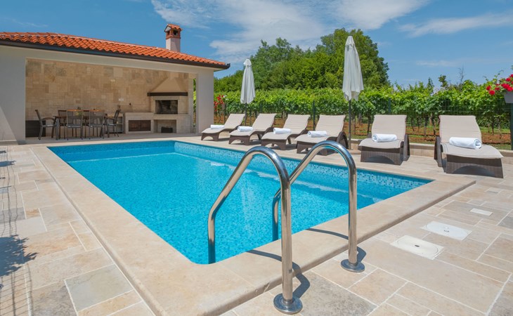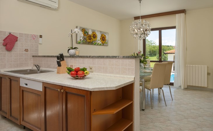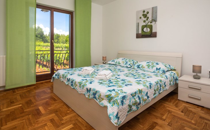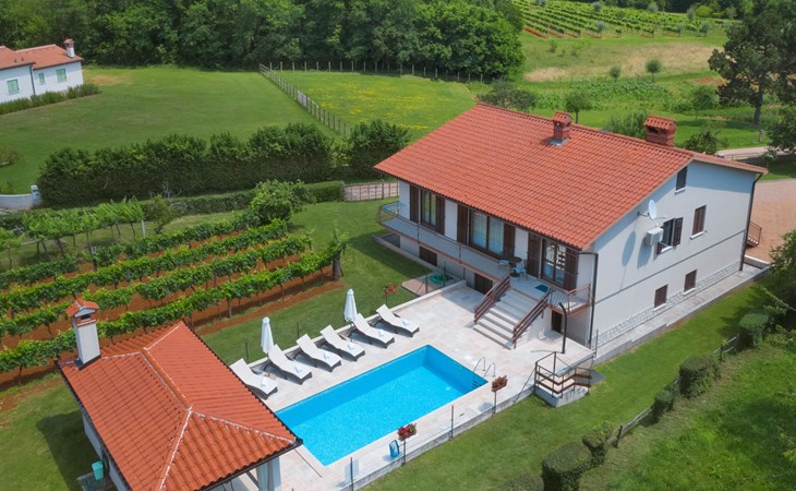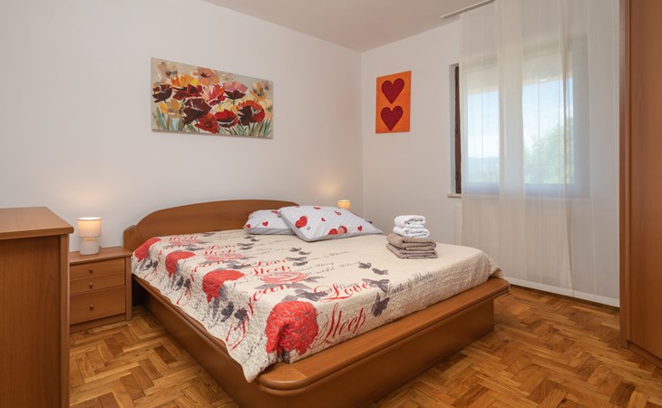 Eengezinswoning "Ana", van 2 verdiepingen. In het gehucht Ružići, 9 km van het centrum van Labin, rustige, zonnige ligging, 14 km van zee, te midden van groen. Voor alleengebruik: terrein 3.000 m2, tuin planten en bomen, openluchtzwembad hoekig (7 x 3 m, 24 m2, 130 cm diepte, seizoensgebonden beschikbaarheid: 22.Mei. - 11.Sep.). Buitendouche, terras, tuinmeubelen, barbecue, kinderspeelplaats (glijbaan, schommel). In het huis: internetaansluiting, wasmachine. Parkeerplaats (voor 2 auto's) bij het huis op het terrein. Winkel 2 km, supermarkt 9 km, restaurant 2 km, café 9 km, bushalte 7.2 km, kiezelstrand 14 km. Geschikt voor families. Een deel van het huis is afgesloten en niet bezet. Dieren in de buurt. Groepen jongeren zijn niet toegestaan.