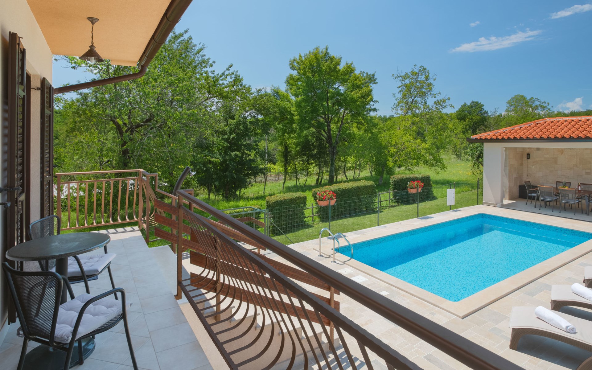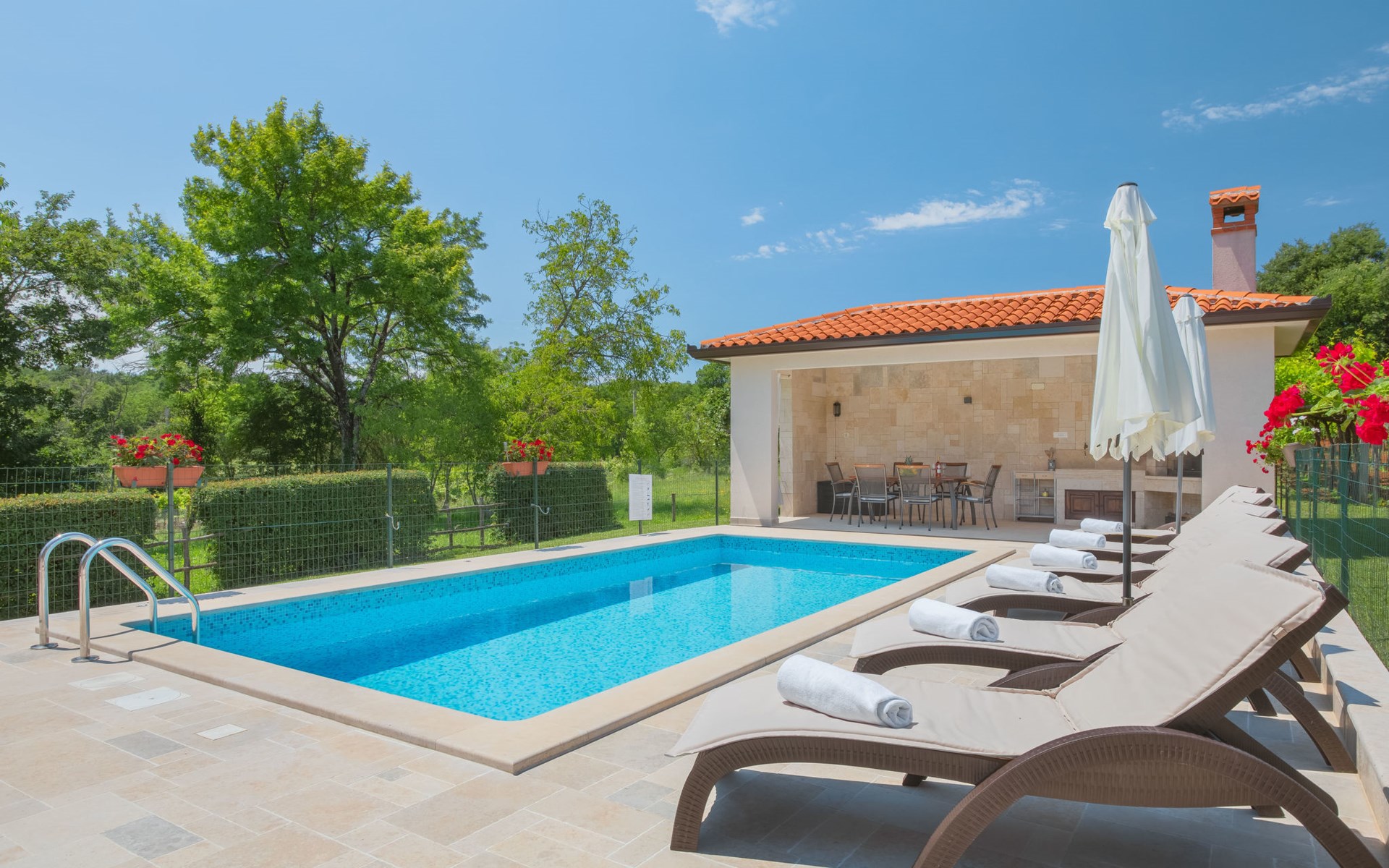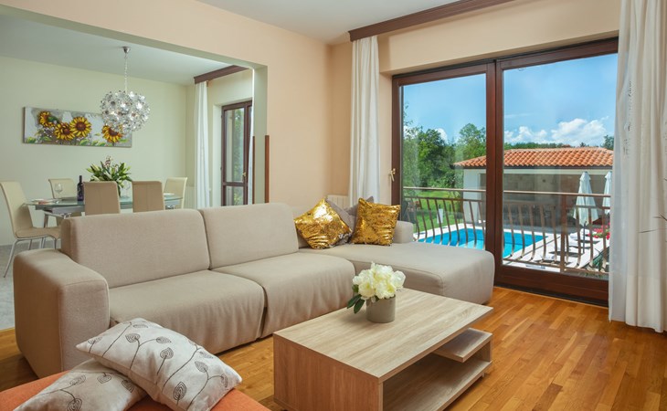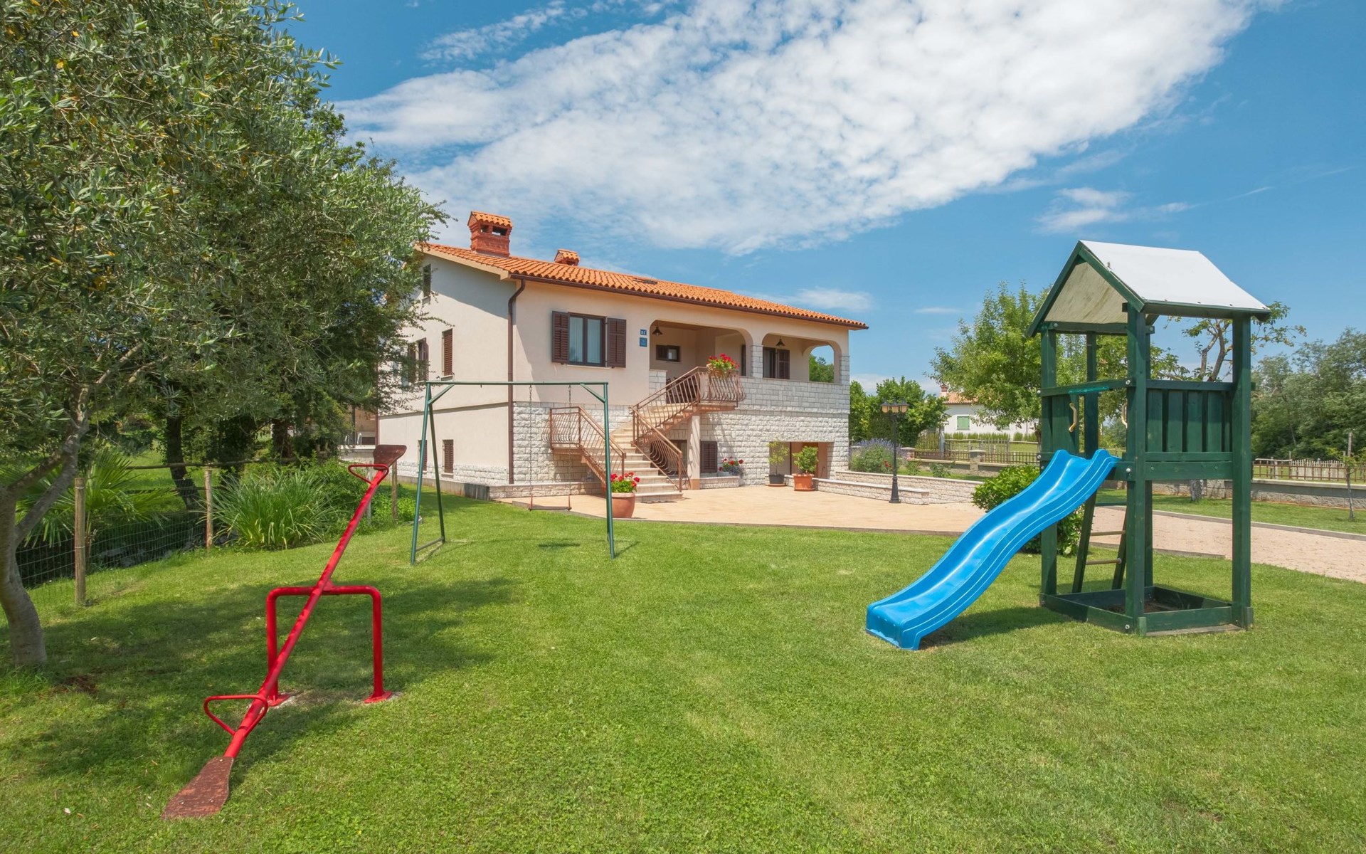 Eengezinswoning "Ana", van 2 verdiepingen. In het gehucht Ružići, 9 km van het centrum van Labin, rustige, zonnige ligging, 14 km van zee, te midden van groen. Voor alleengebruik: terrein 3.000 m2, tuin planten en bomen, openluchtzwembad hoekig (7 x 3 m, 24 m2, 130 cm diepte, seizoensgebonden beschikbaarheid: 22.Mei. - 11.Sep.). Buitendouche, terras, tuinmeubelen, barbecue, kinderspeelplaats (glijbaan, schommel). In het huis: internetaansluiting, wasmachine. Parkeerplaats (voor 2 auto's) bij het huis op het terrein. Winkel 2 km, supermarkt 9 km, restaurant 2 km, café 9 km, bushalte 7.2 km, kiezelstrand 14 km. Geschikt voor families. Een deel van het huis is afgesloten en niet bezet. Dieren in de buurt. Groepen jongeren zijn niet toegestaan.