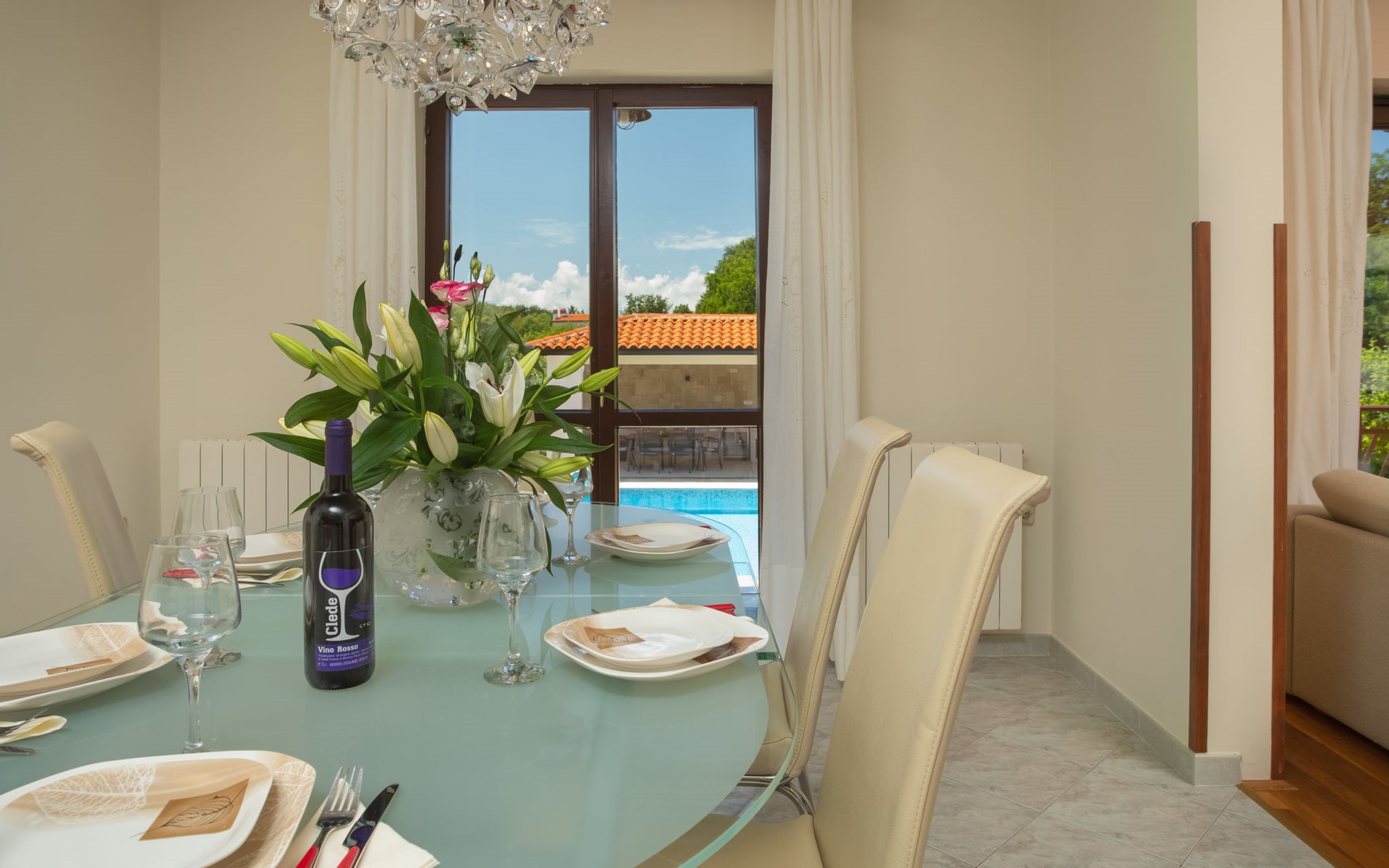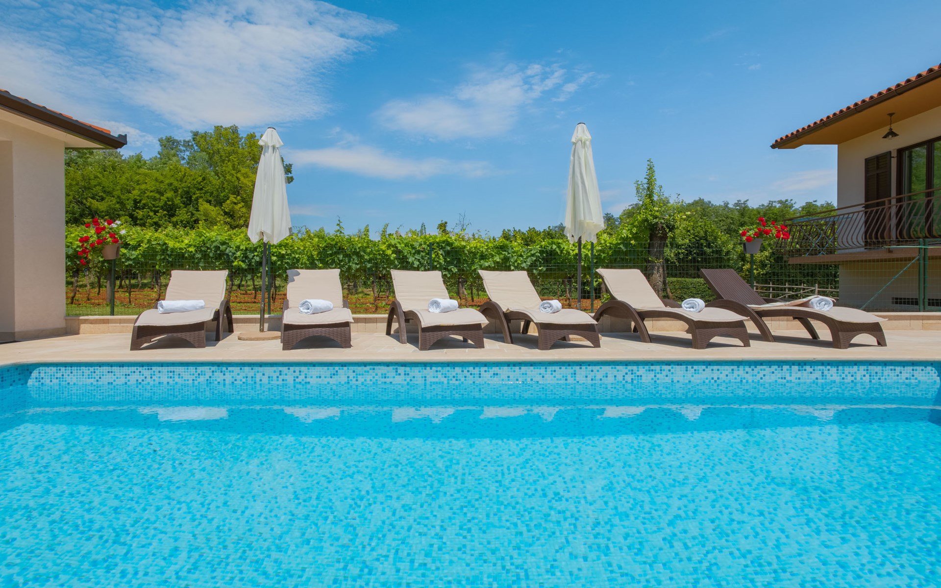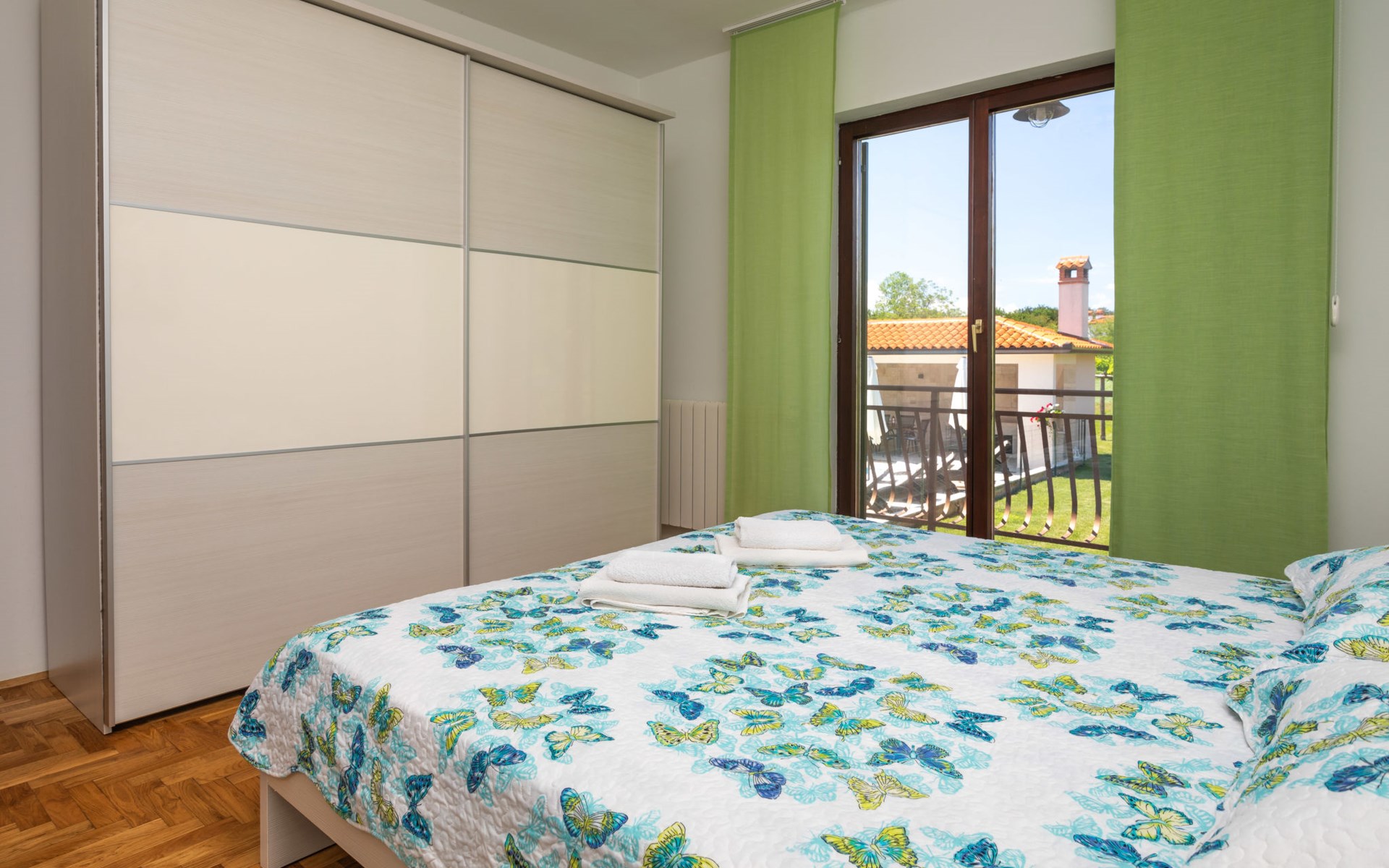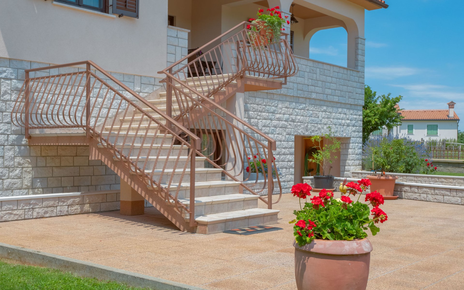 Eengezinswoning "Ana", van 2 verdiepingen. In het gehucht Ružići, 9 km van het centrum van Labin, rustige, zonnige ligging, 14 km van zee, te midden van groen. Voor alleengebruik: terrein 3.000 m2, tuin planten en bomen, openluchtzwembad hoekig (7 x 3 m, 24 m2, 130 cm diepte, seizoensgebonden beschikbaarheid: 22.Mei. - 11.Sep.). Buitendouche, terras, tuinmeubelen, barbecue, kinderspeelplaats (glijbaan, schommel). In het huis: internetaansluiting, wasmachine. Parkeerplaats (voor 2 auto's) bij het huis op het terrein. Winkel 2 km, supermarkt 9 km, restaurant 2 km, café 9 km, bushalte 7.2 km, kiezelstrand 14 km. Geschikt voor families. Een deel van het huis is afgesloten en niet bezet. Dieren in de buurt. Groepen jongeren zijn niet toegestaan.